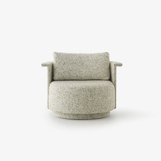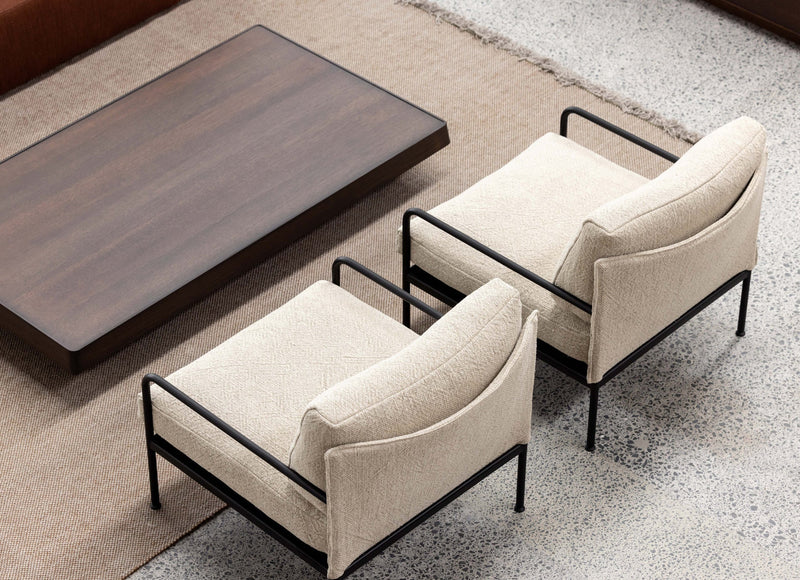 A study in balance. The Portrait Lounge Chair draws from Brutalist architecture, with squared arms and an arched back that cantilever over a timber base. Its proportions are generous but measured, offering presence without excess. Designed for both residential and commercial spaces, it holds its own.