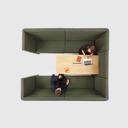 Sur is modular, but not modular as usual. Its curved forms rest on a shared plinth that appears to hover just above the floor. The system is generous in scale, with multi-density foam and feather fill for comfort. Configurations are flexible, but the design language remains consistent. Grounded, refined and quietly expressive.