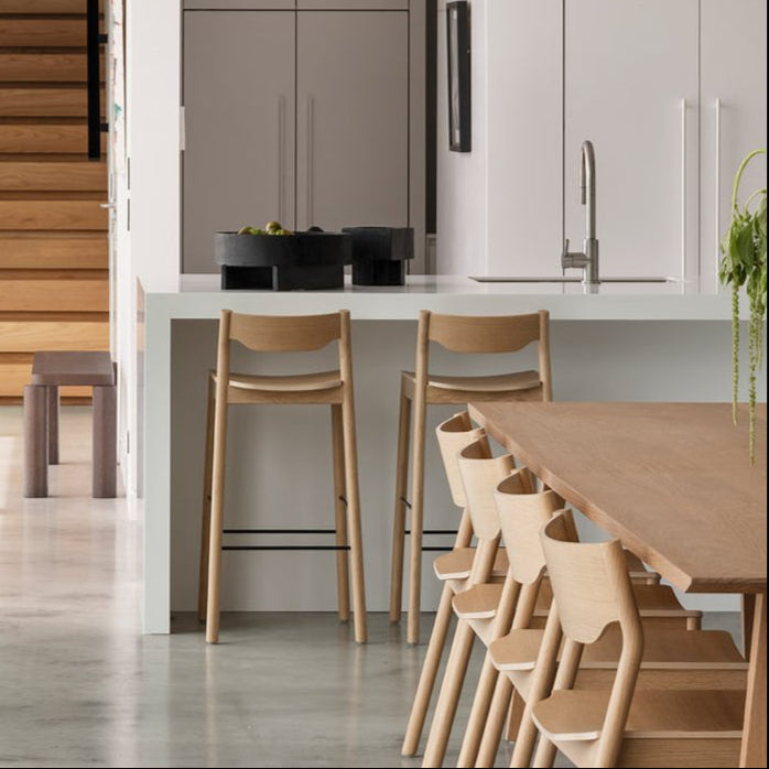 Simon James returns with a collection that speaks in quiet confidence. Four new pieces, the Portrait Lounge Chair, Sur Sofa, Block Chair and Block Stool continue his exploration of form, proportion and material clarity.
