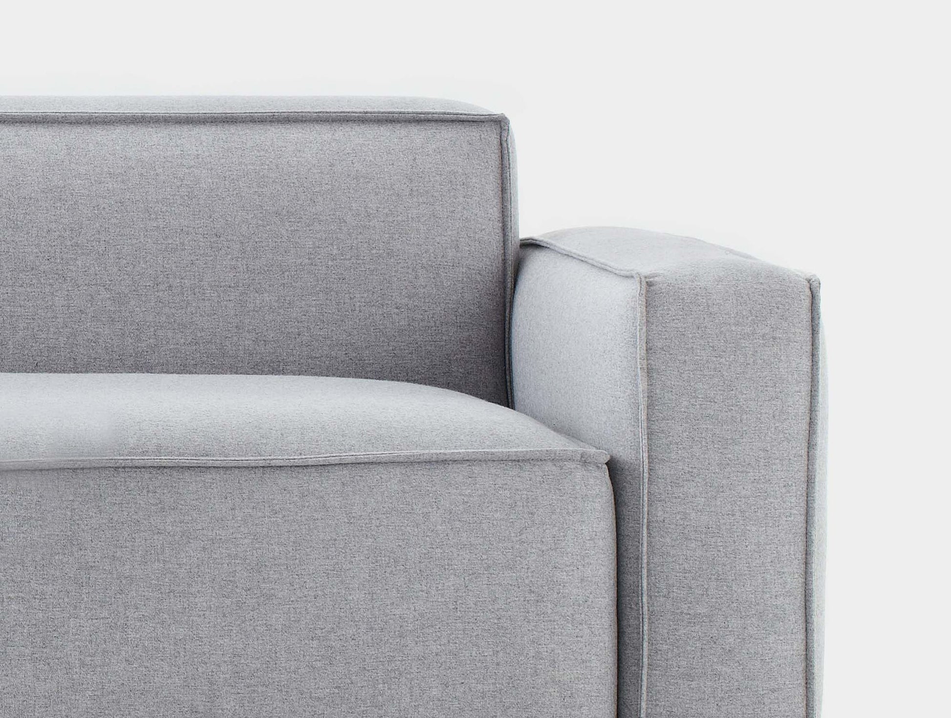 The Play sofa showcases a French seam along its edges with large fixed panelled upholstery, creating a playful piece suitable for both residential and commercial applications.