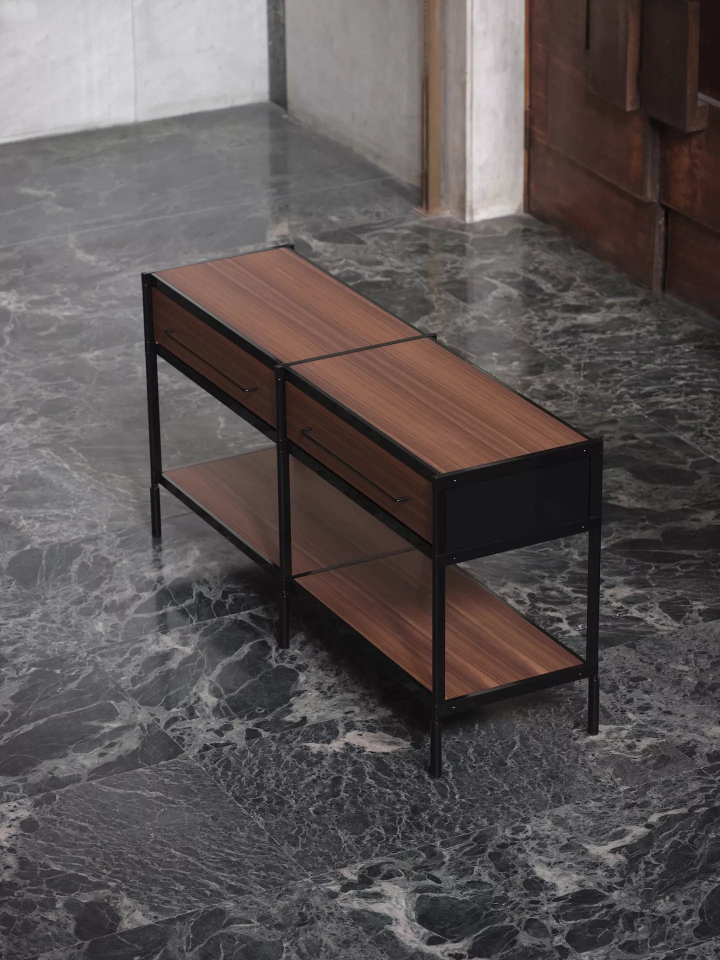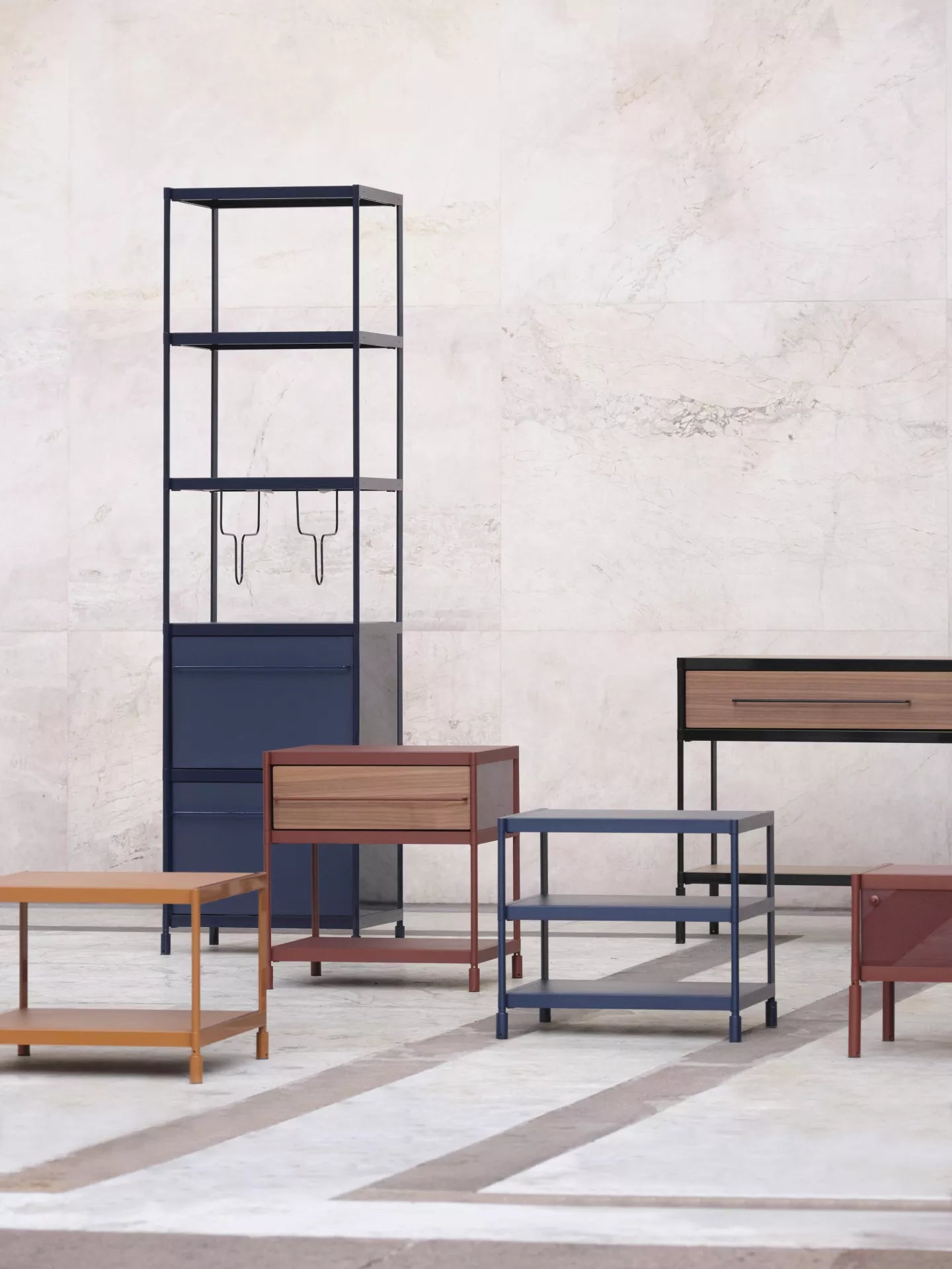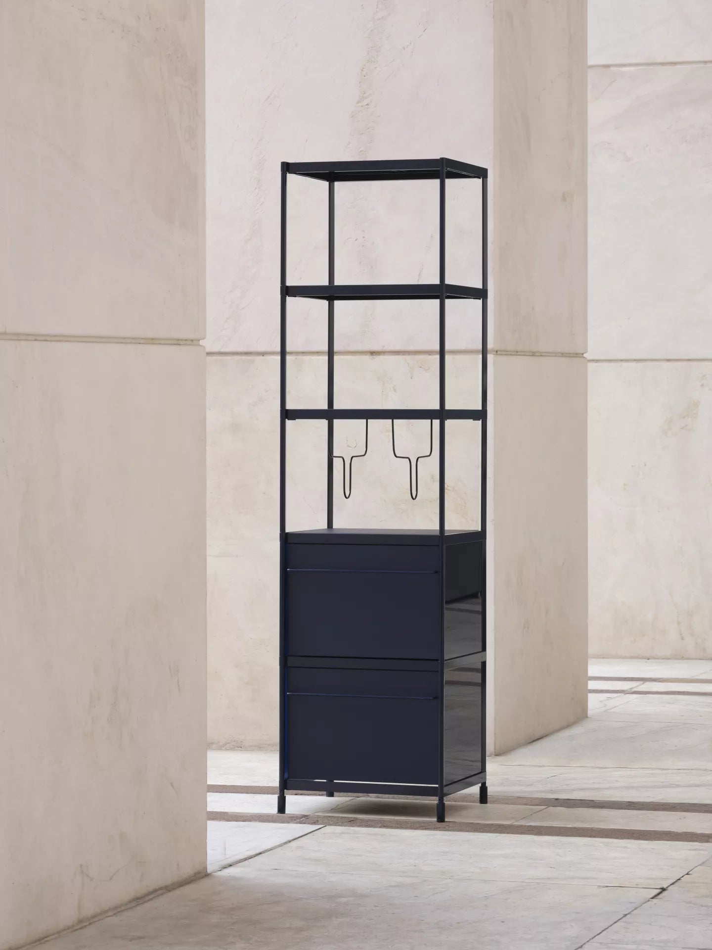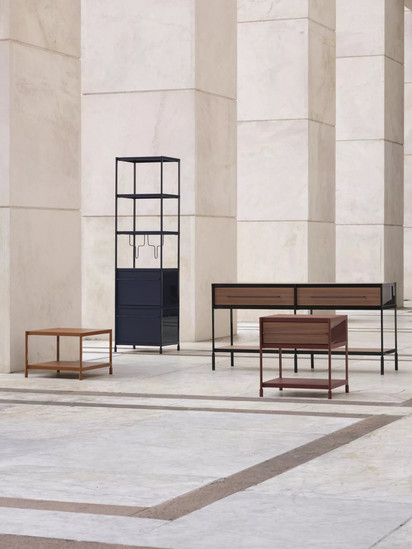 Alfredo Häberli: First of all, SEC is a self-supporting aluminium structure. This is its load-bearing element. Alongside this is a second, more sensory and tangible dimension: the materials that can be touched — drawers, shelves, panels. It is precisely this dual nature that has led to the redesign of SEC: a new vision that reinterprets the system from a different perspective, creating a dialogue between structure and material.