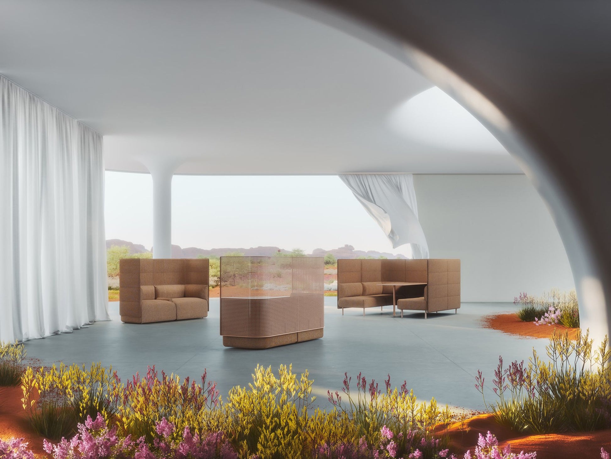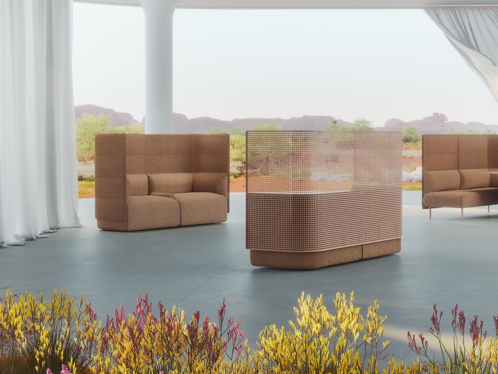 Seat - All seating surfaces are constructed from elastomer webbing and utilise premium engineered high density pholstery foam. In line with the Habitat ethos, low VOC adhesives are specified, and componentry has been designed for disassembly and ongoing maintenance.