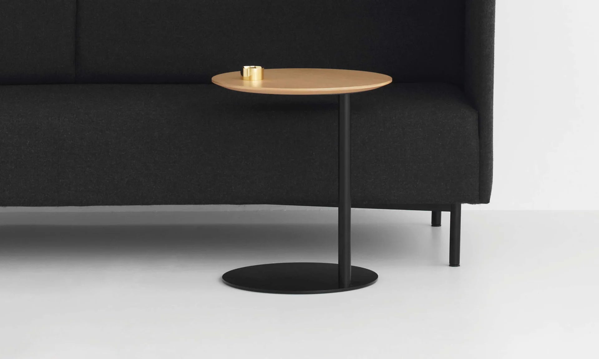 The base of this design is constructed with solid steel in a black matte powdercoated finish, with top options ranging from either white HPL, natural oak or black stained oak veneer. This side table is ideal for both commercial and residential environments.