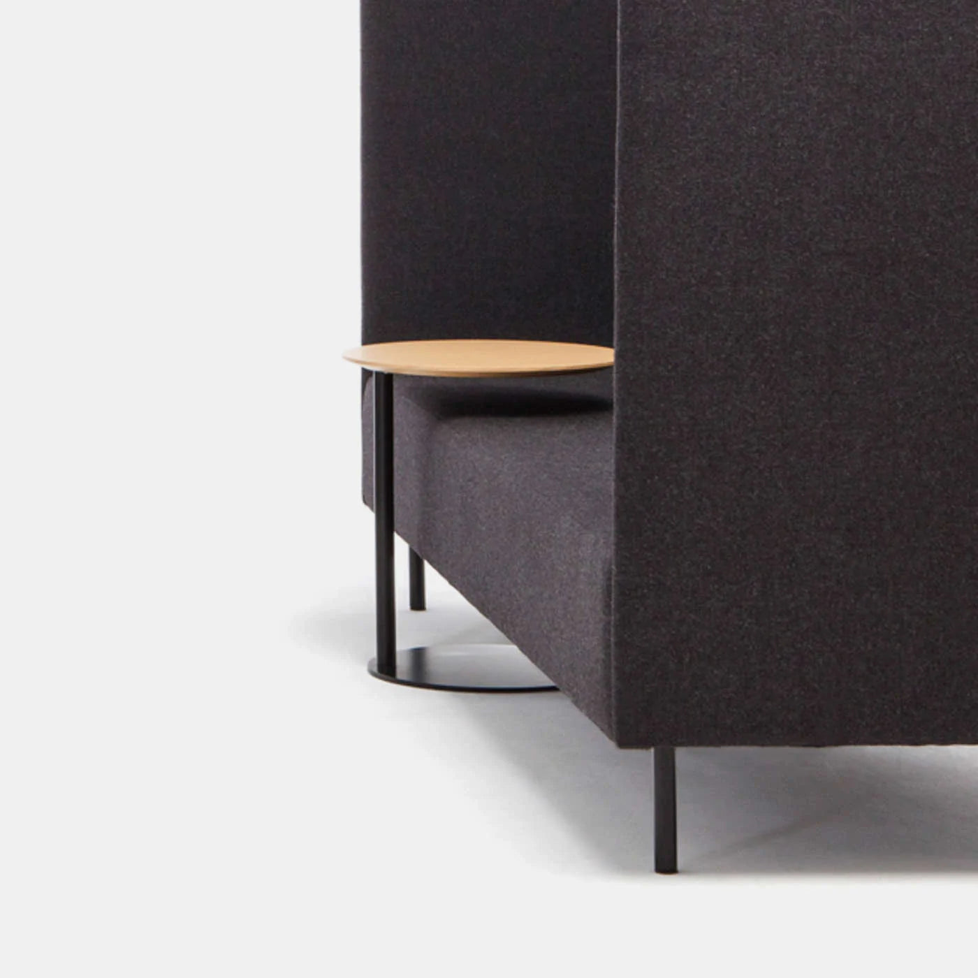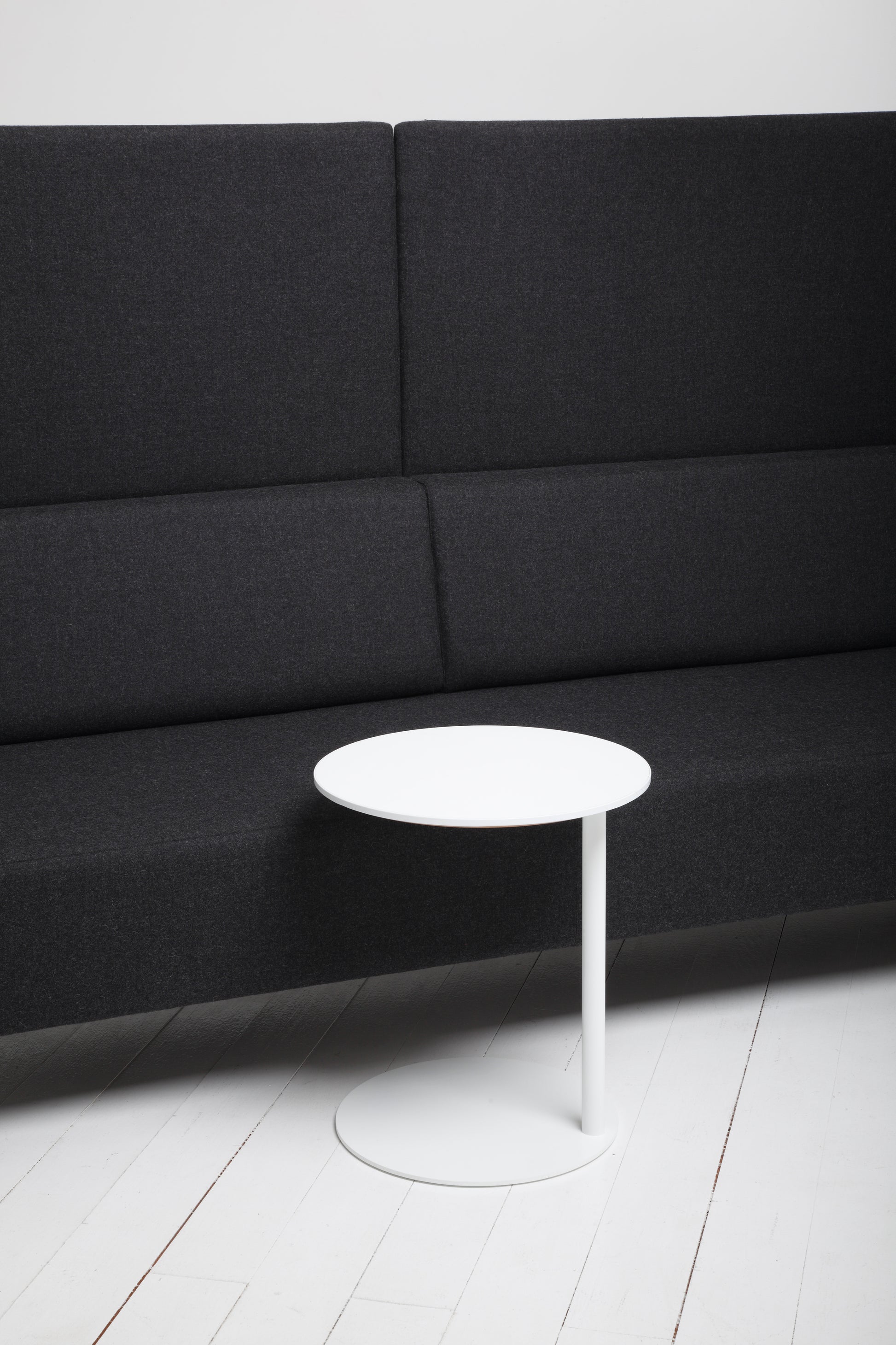 The Hangover Side Table is designed by Simon James to tuck under and hover over sofa or chair configurations.