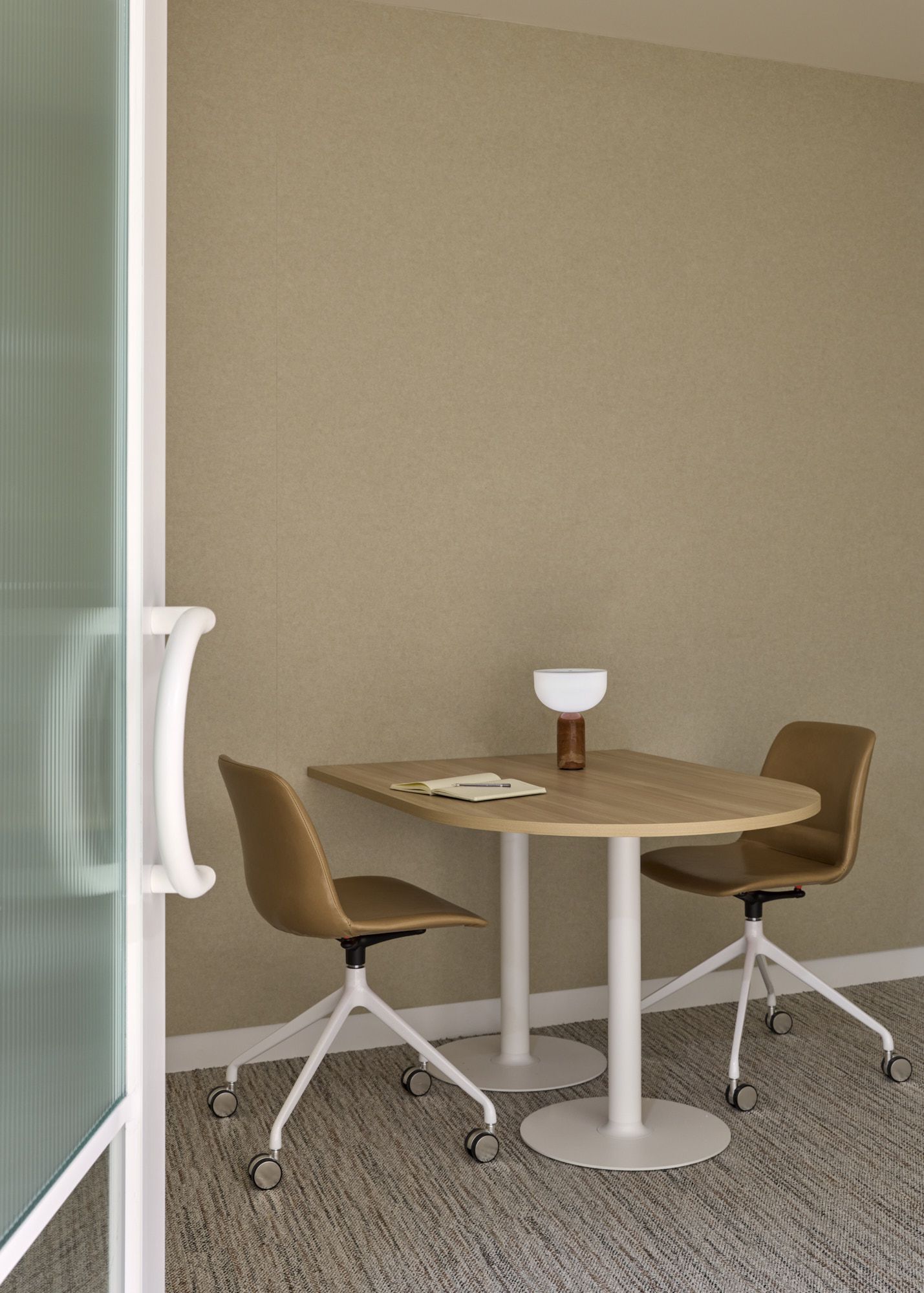 The powdercoated metal base comes in texture white, warm grey or black, with custom colours available."