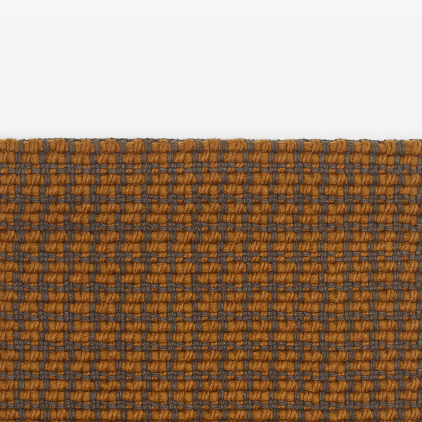 It is hand woven using thick, woollen yarn bound together with a thin contrasting cotton. The sophisticated, architectural constructution has a warmth to it, which is enhanced by a crisp, earthy colour palette. Natural irregularities that arise from the manual weaving process add soft, human dimension to an otherwise graphic design, as well as making each rug entirely unique.