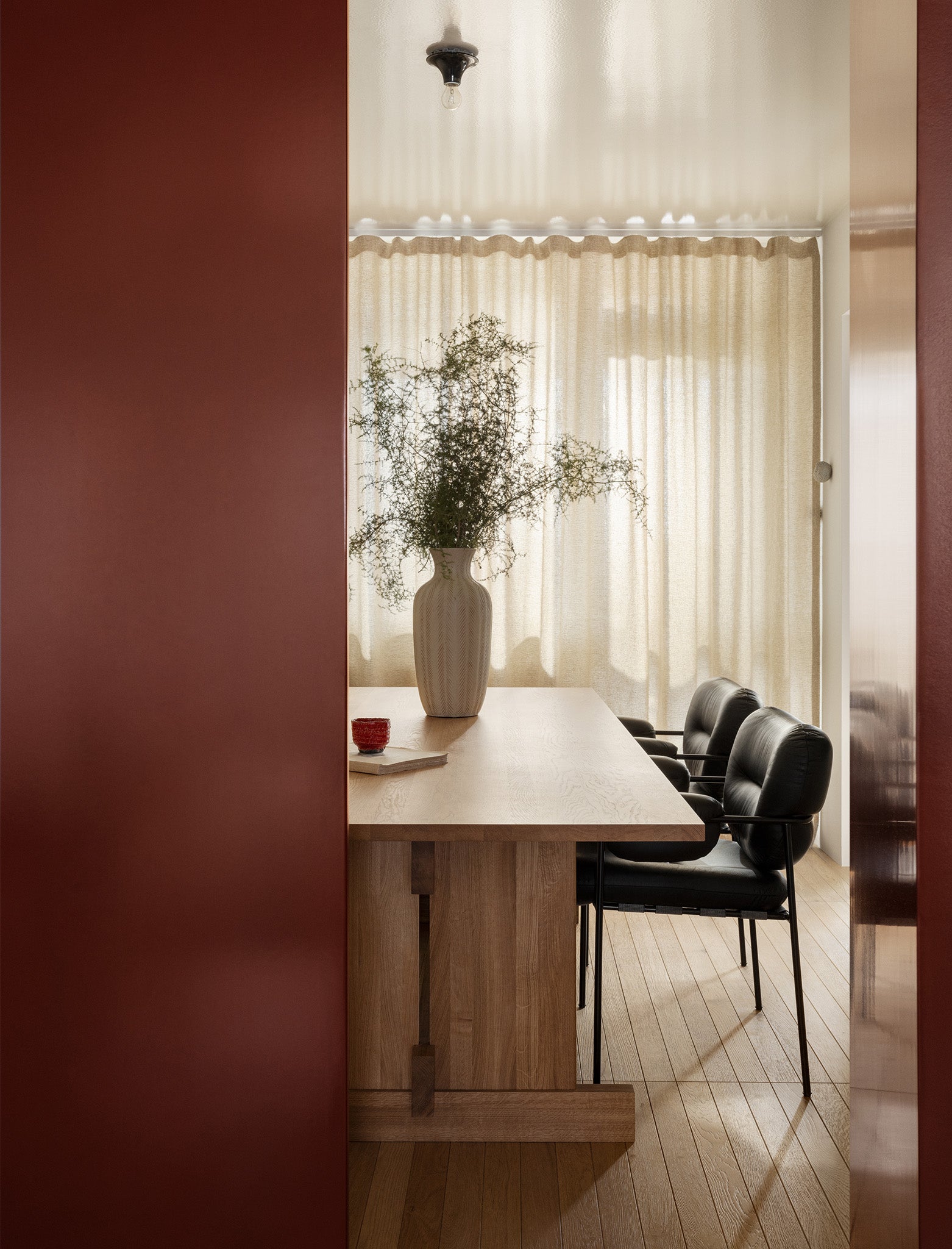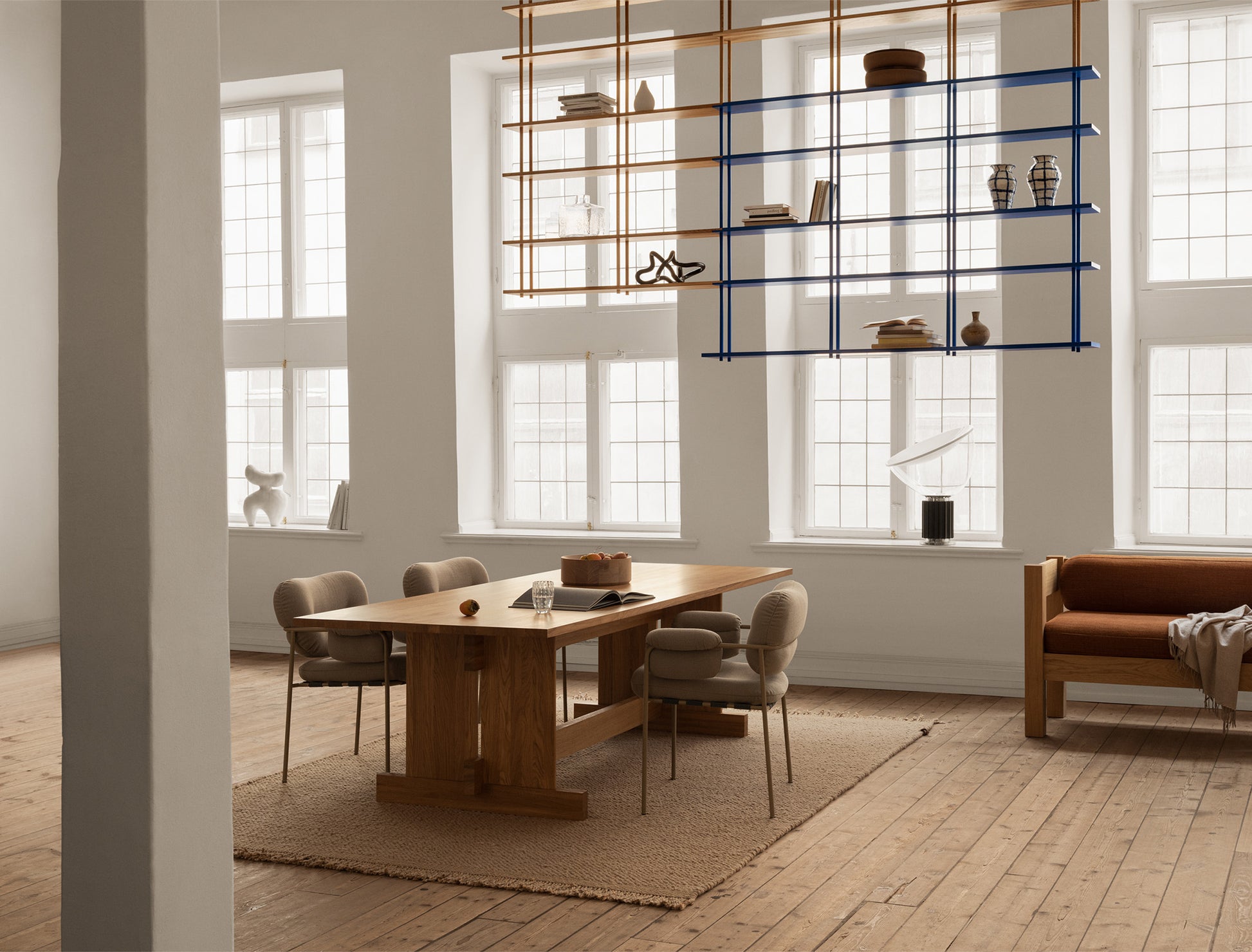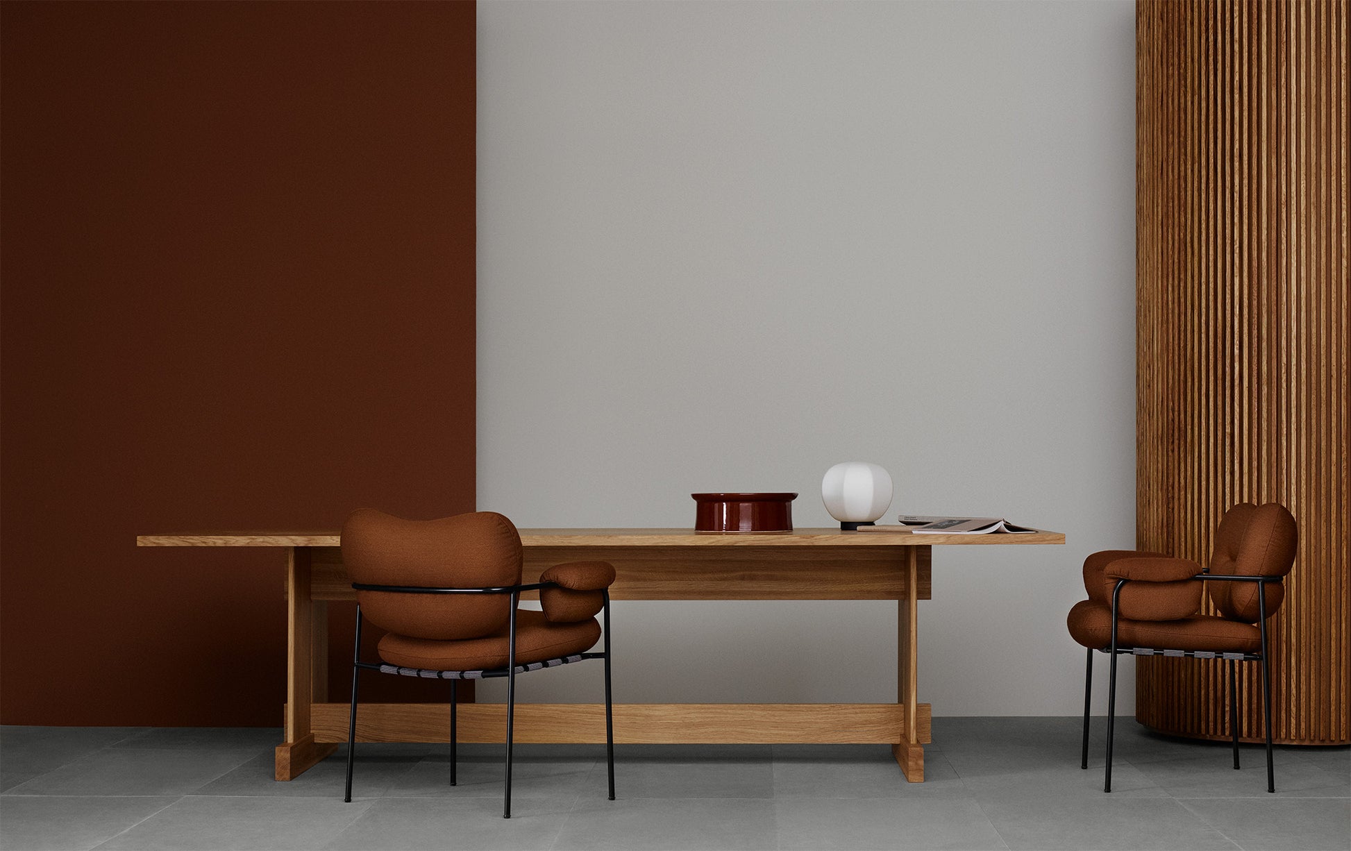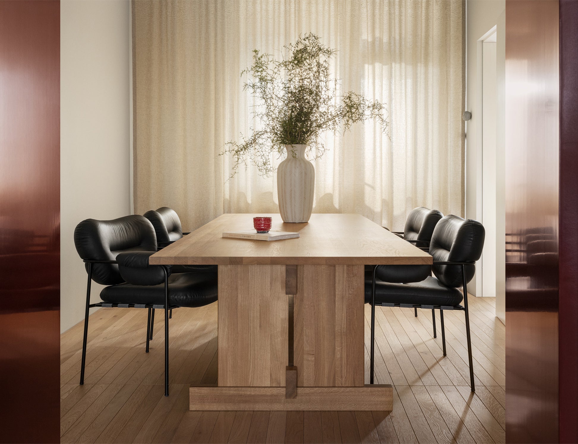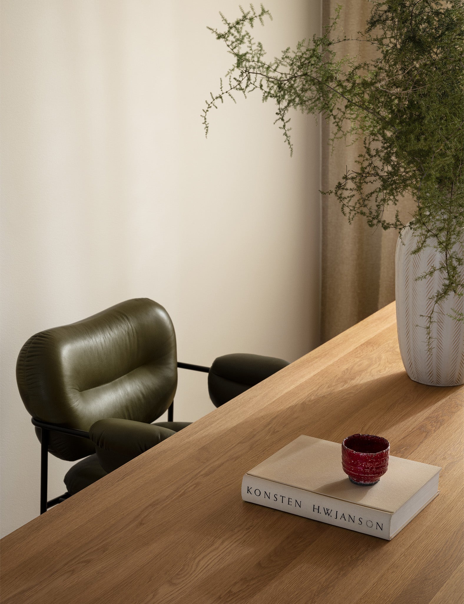 Designed for deep comfort and narrow enough to fit around the table, the Bollo Chair is for those occasions when you want to talk into the night.