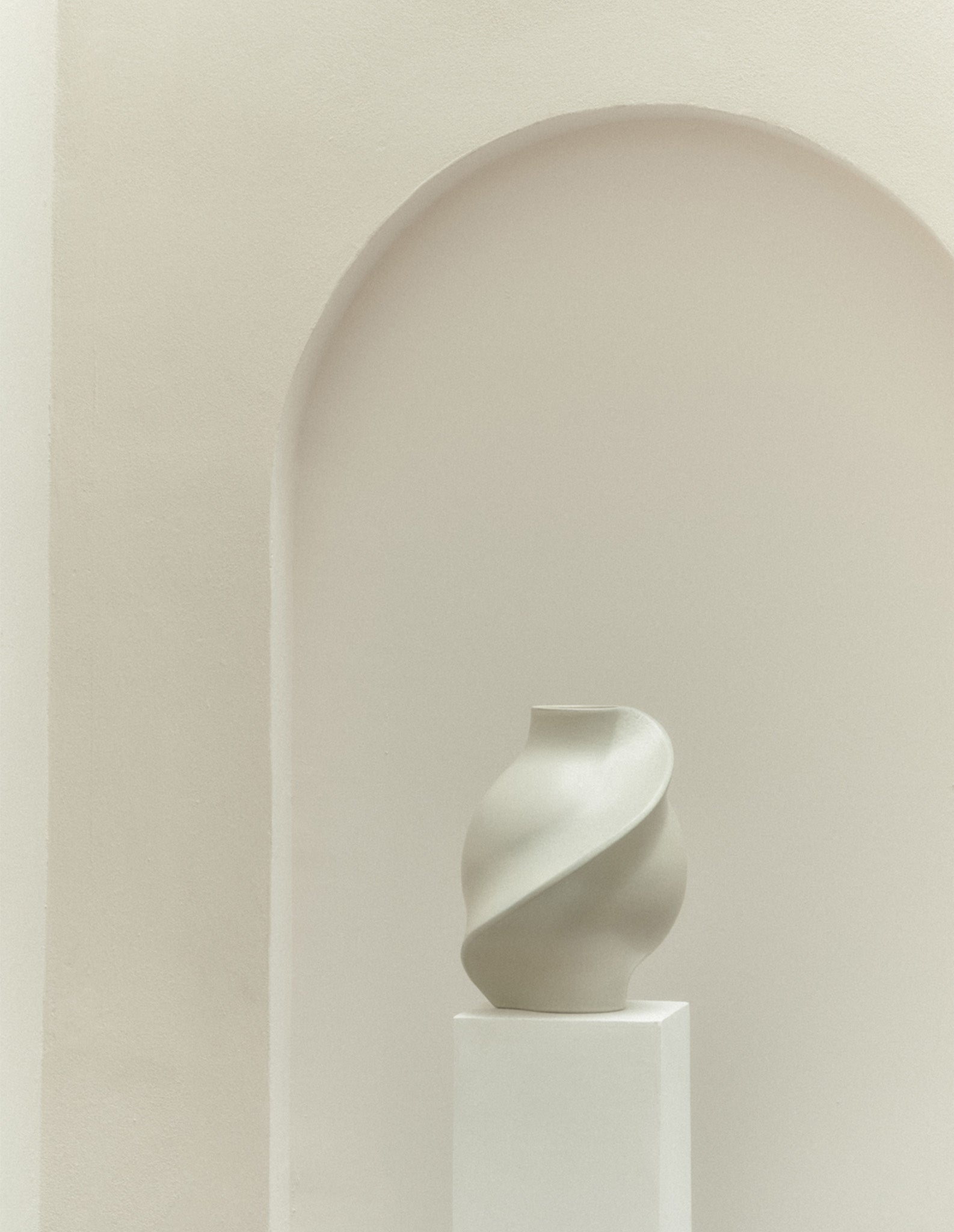 Clean the object only by hand. The series is prone to condensation and we thus urge you to position a placemat underneath the vase, to protect surfaces.