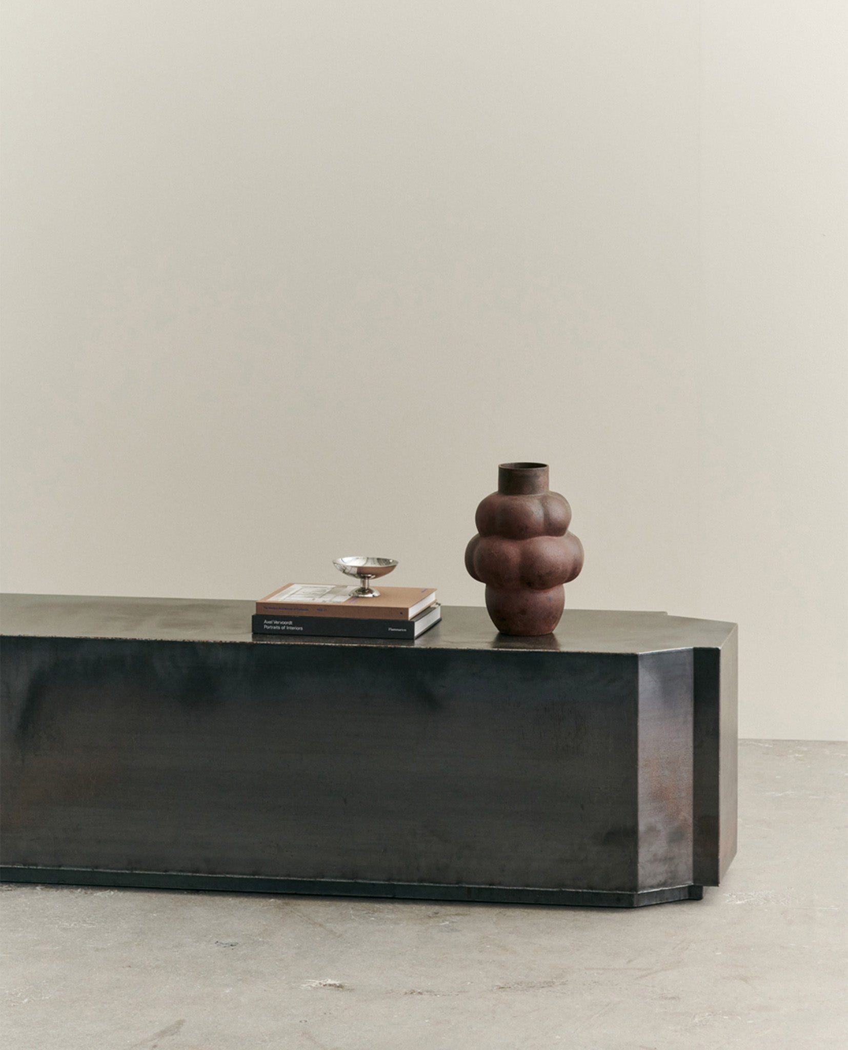 Whether a bedside, coffee or dining table, the objects are characteristically also monumental sculptures. Hand-welded by skilled craftspeople, the series functions both indoor and outdoor.