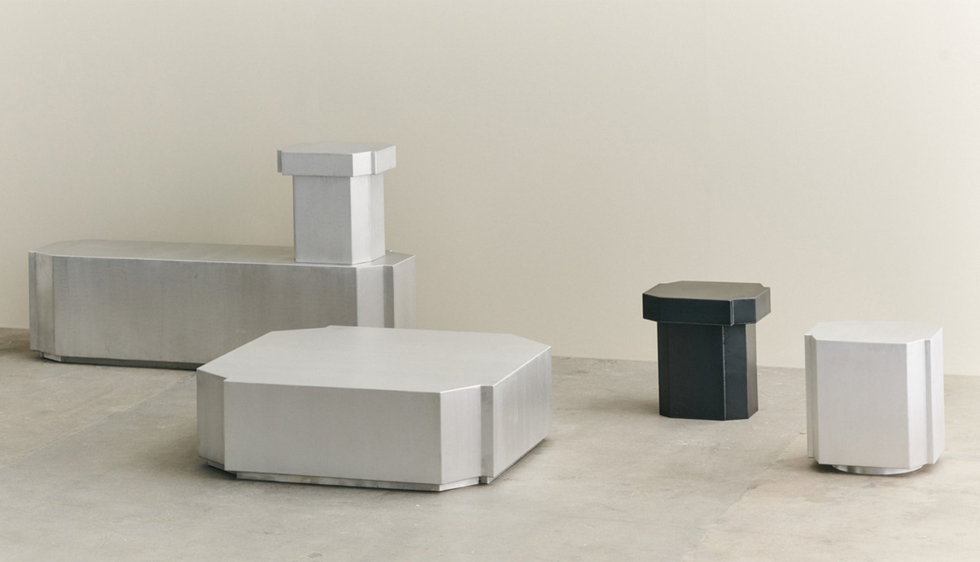 LOUISE ROE introduces a new series in the FUNKI collection: FUNKI Furniture. The multipurpose array consists of a bench, a rectangular and square lounge table, as well as two varying stools. Purchasable in two impressions: Raw Iron and Aluminium.
