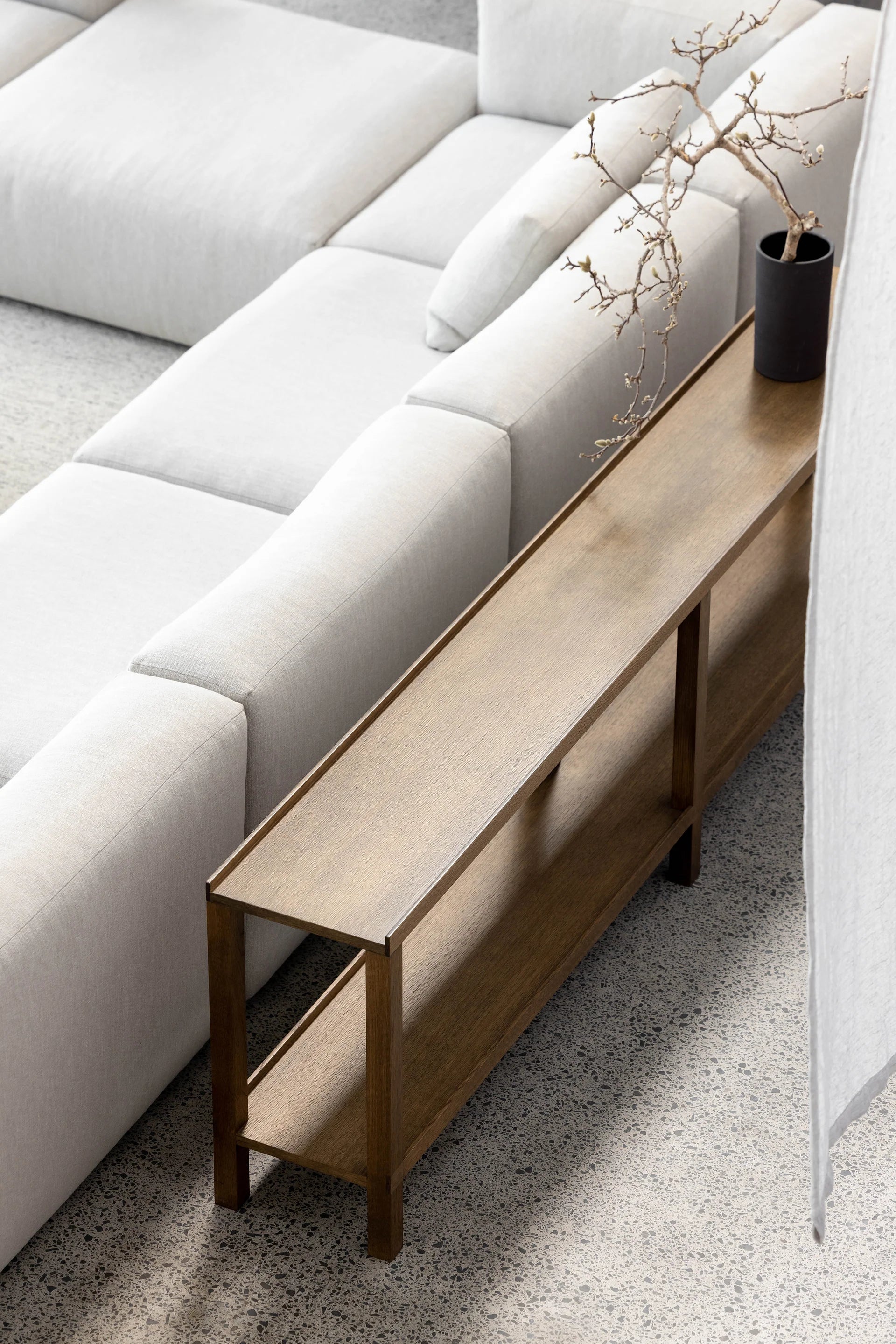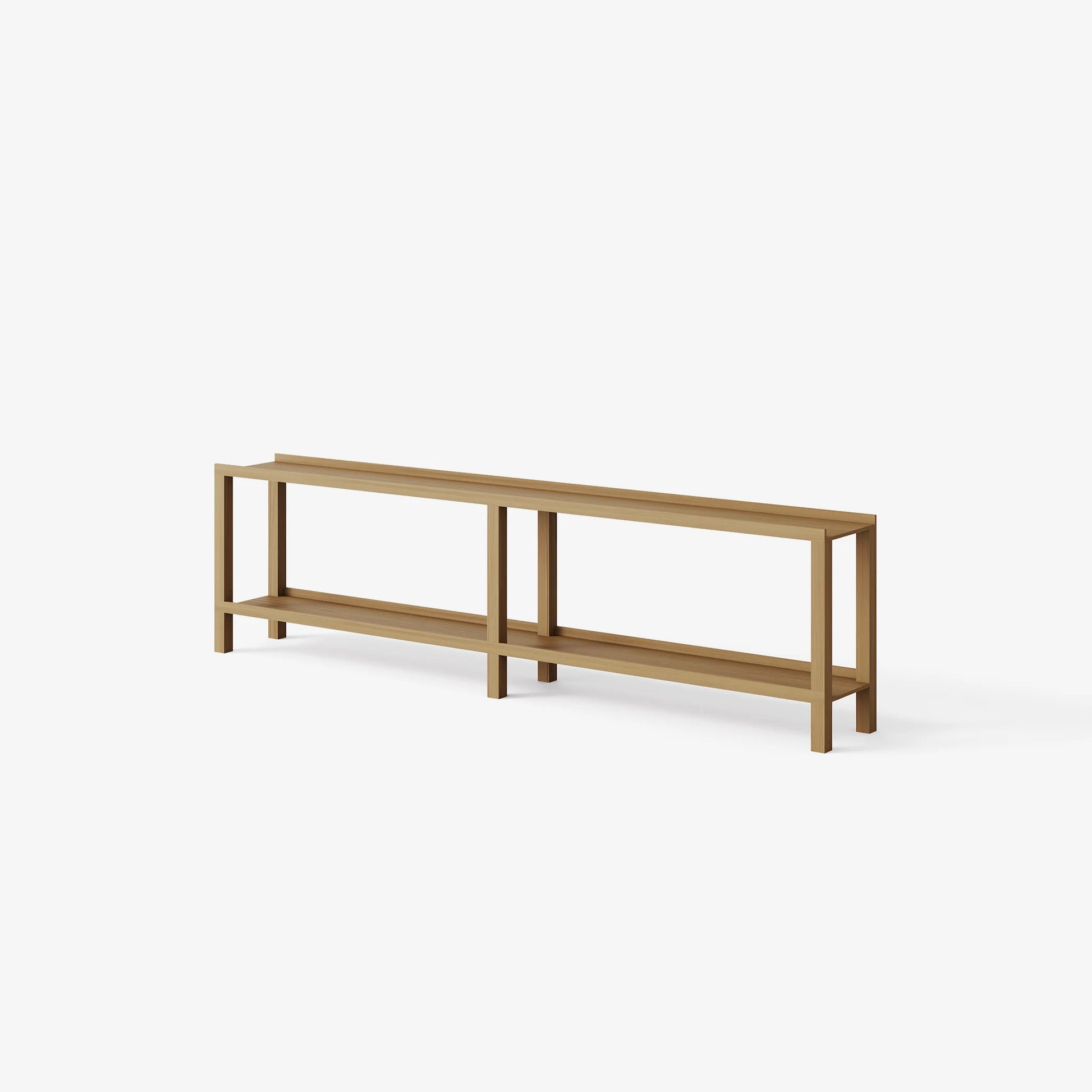 With clean lines and a light footprint, the Ren shelving collection by Simon James reduces oak shelving to its purest form. In concealing all steel supports, the timber detailing is in focus.