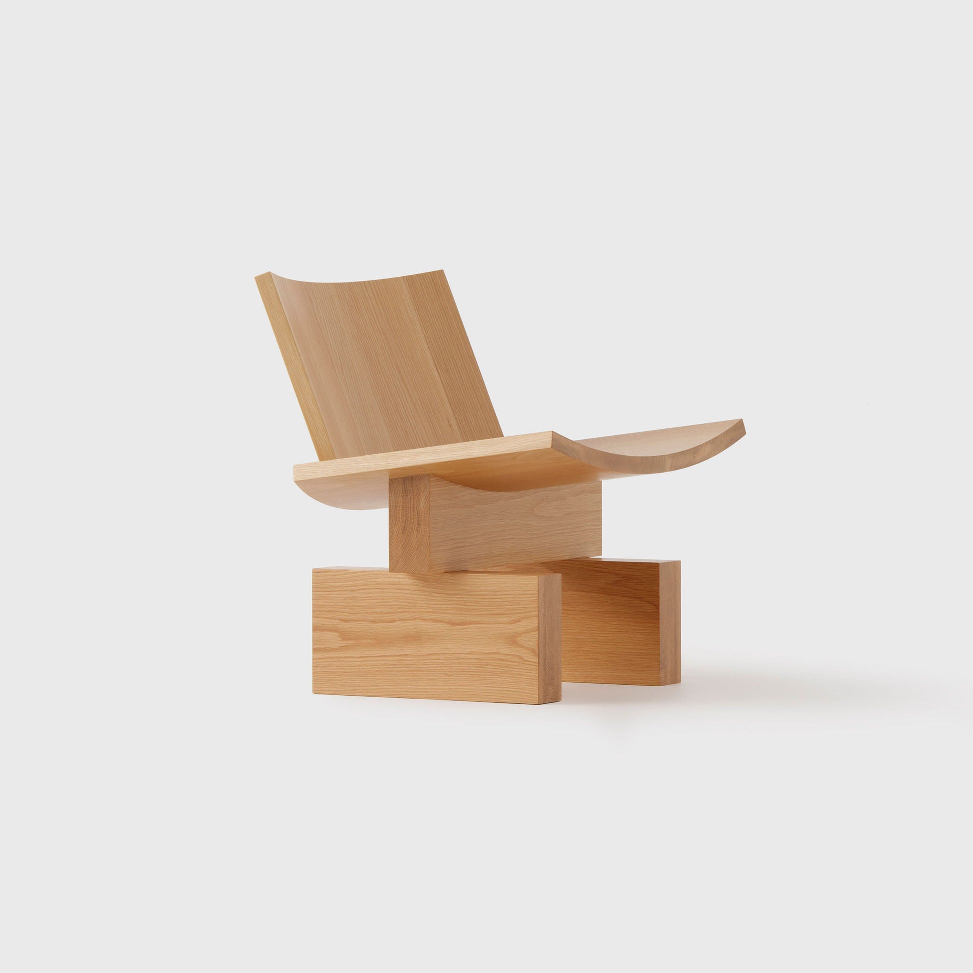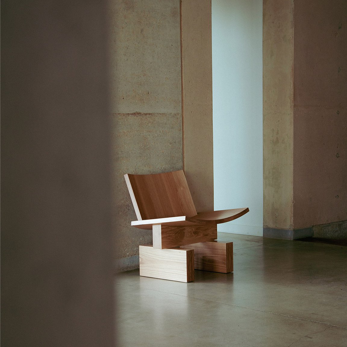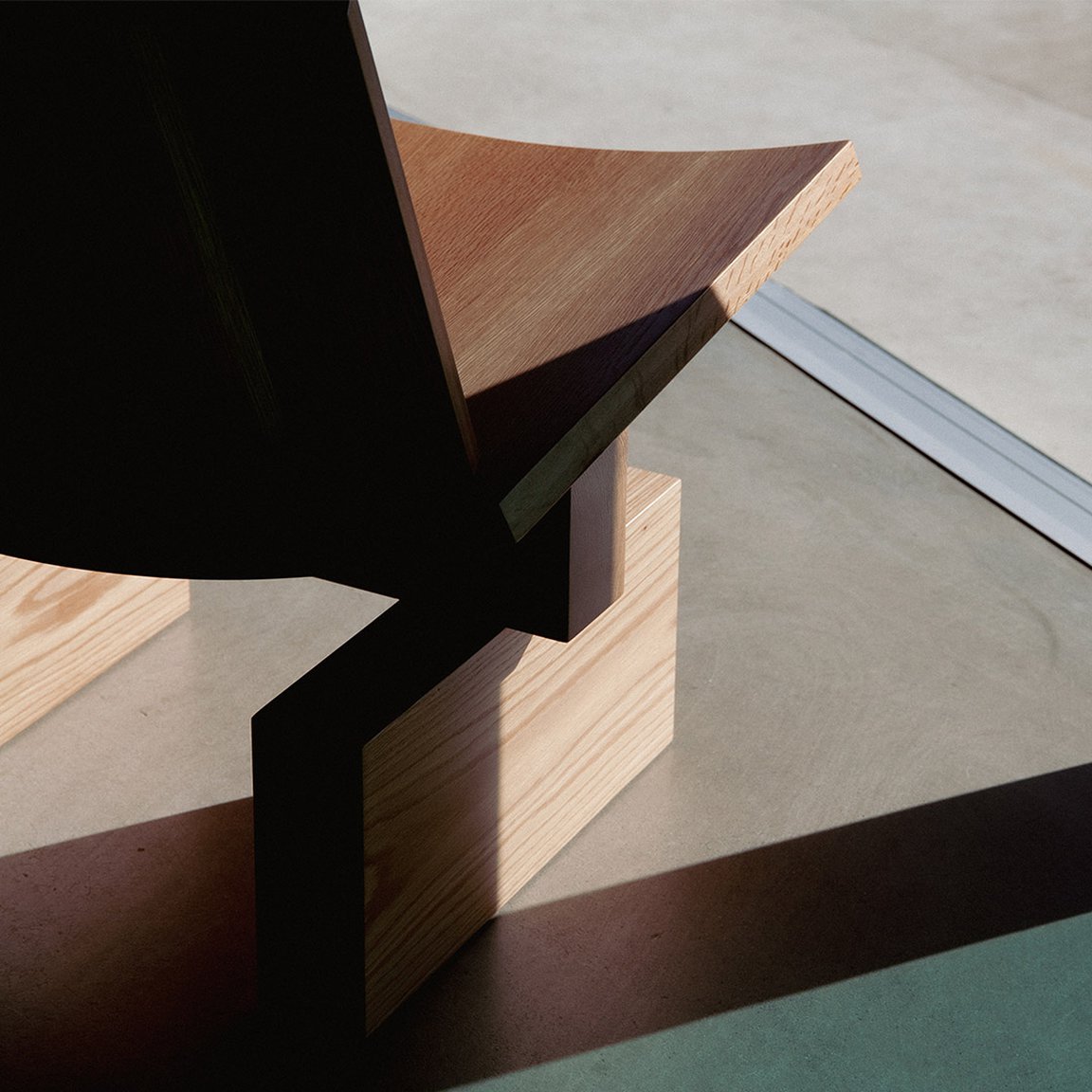 Crafted from solid timber, its bold design features a cantilevered seat supported by internal joinery, its structure a seemingly impossible balancing act.