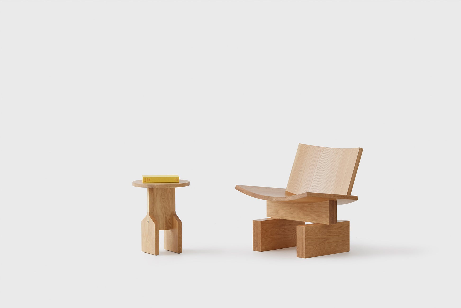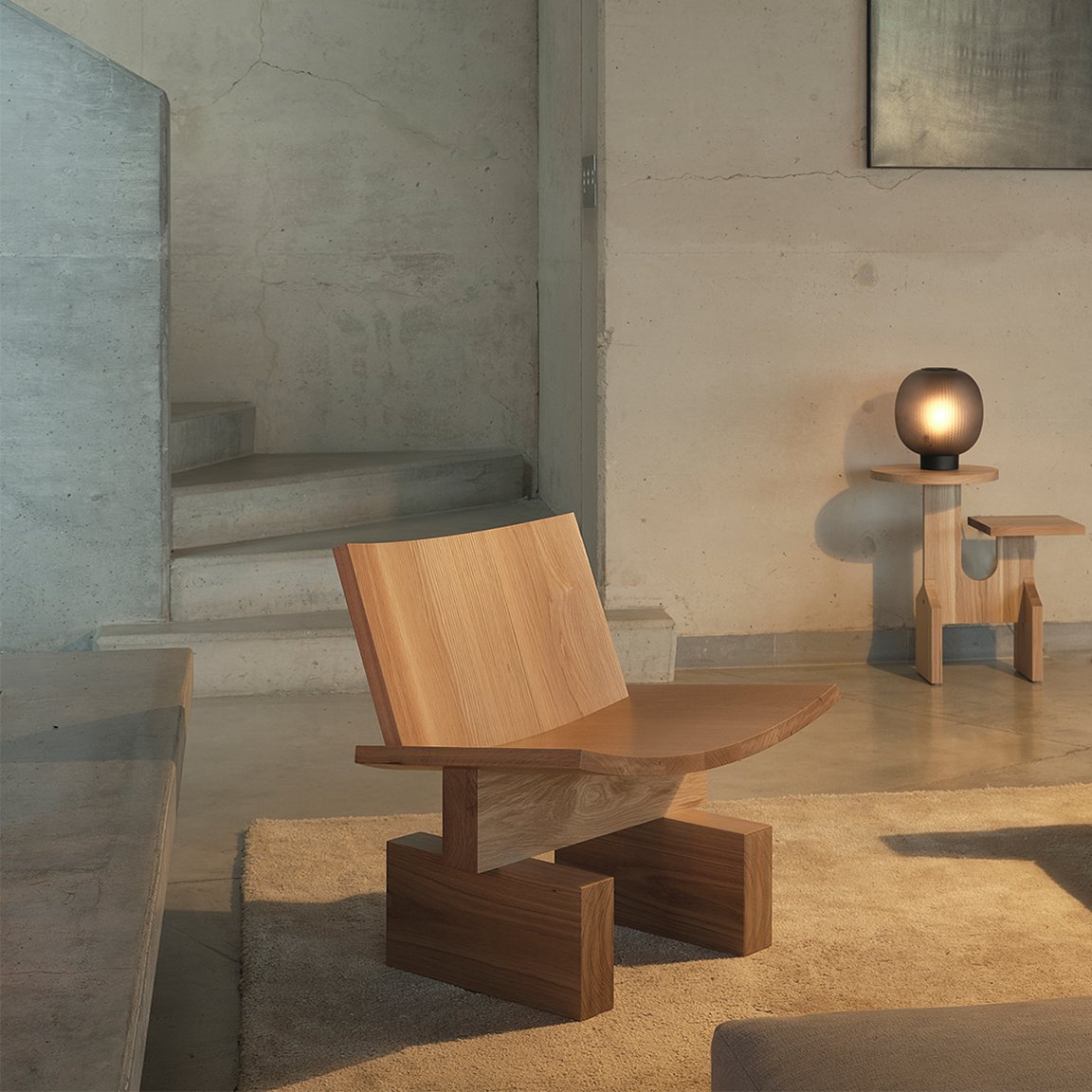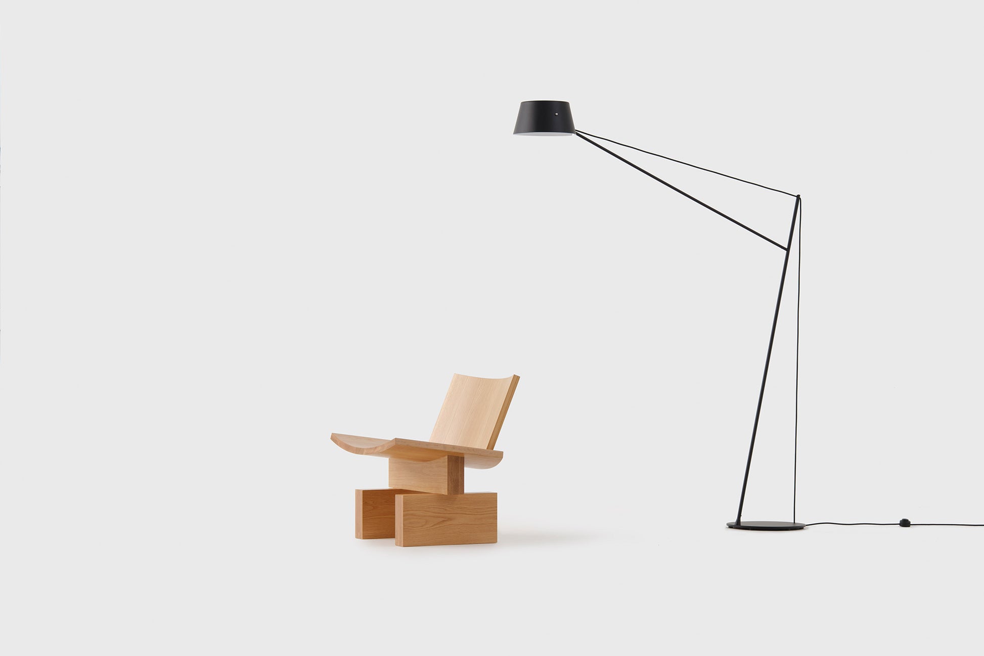 Crafted from solid timber, its bold design features a cantilevered seat supported by internal joinery, its structure a seemingly impossible balancing act.