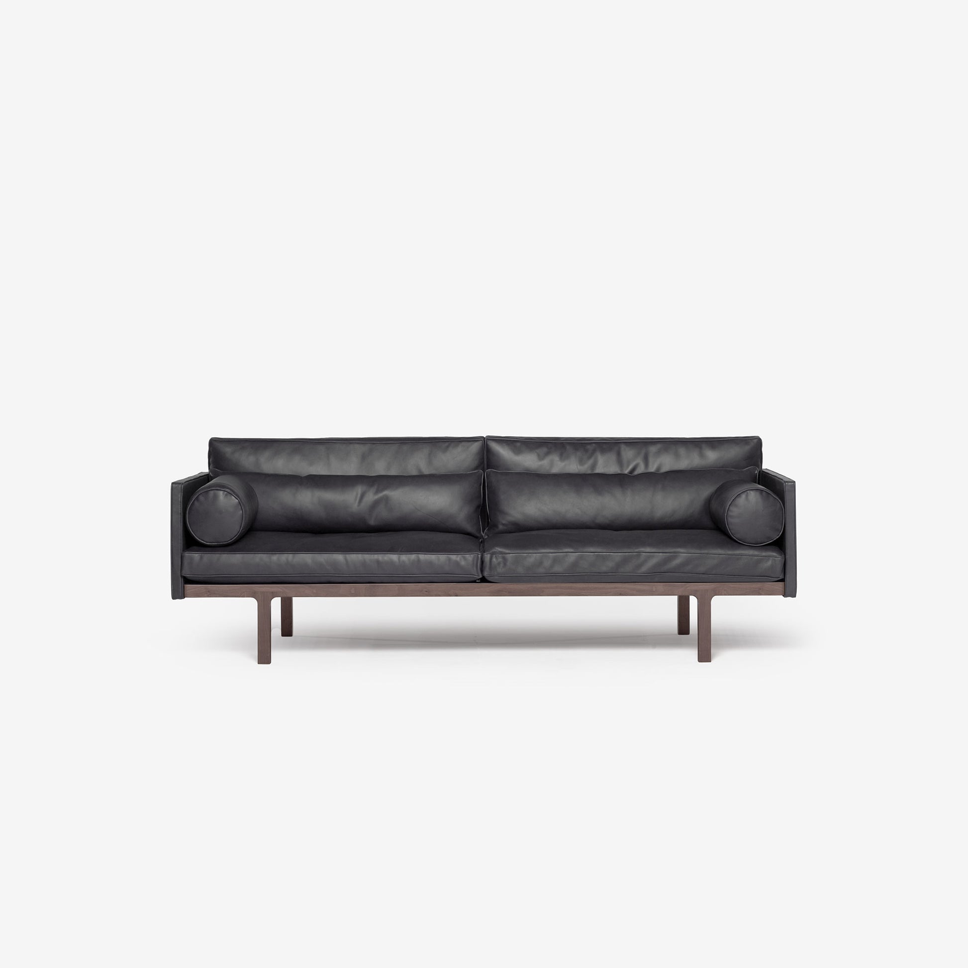 The Archive Sofa draws inspiration from mid-century design, featuring sumptuous leather upholstery paired with an elegant wooden frame.