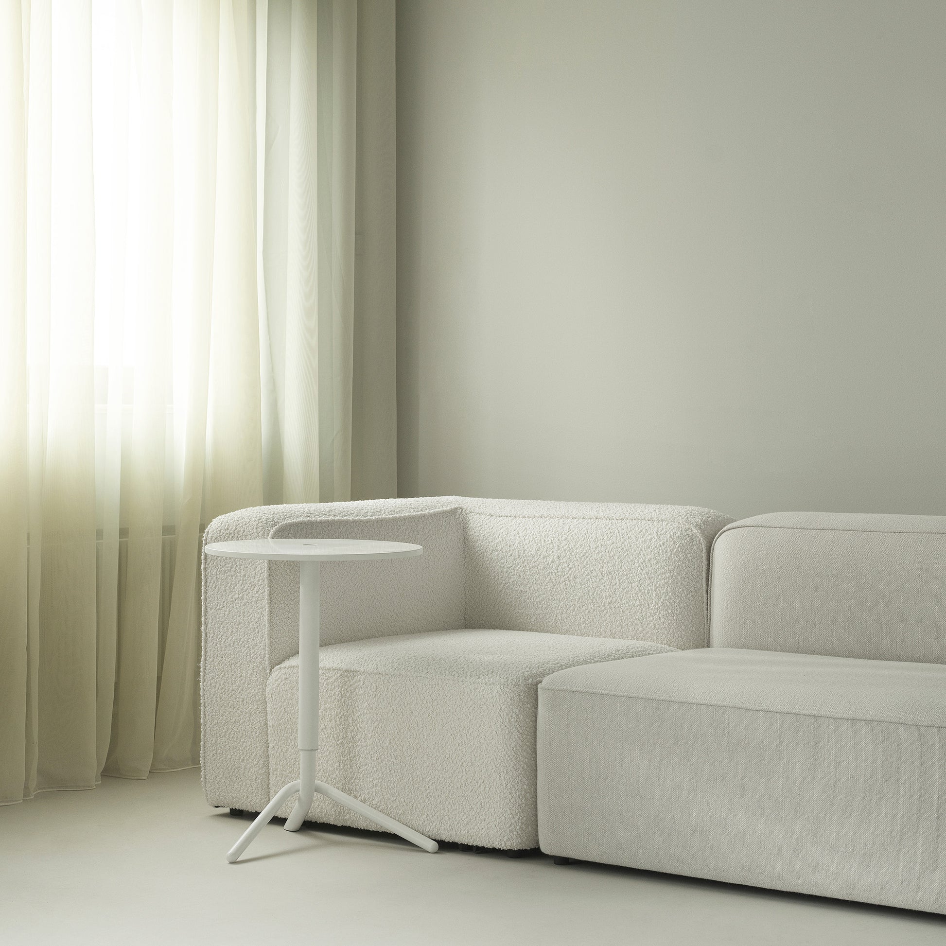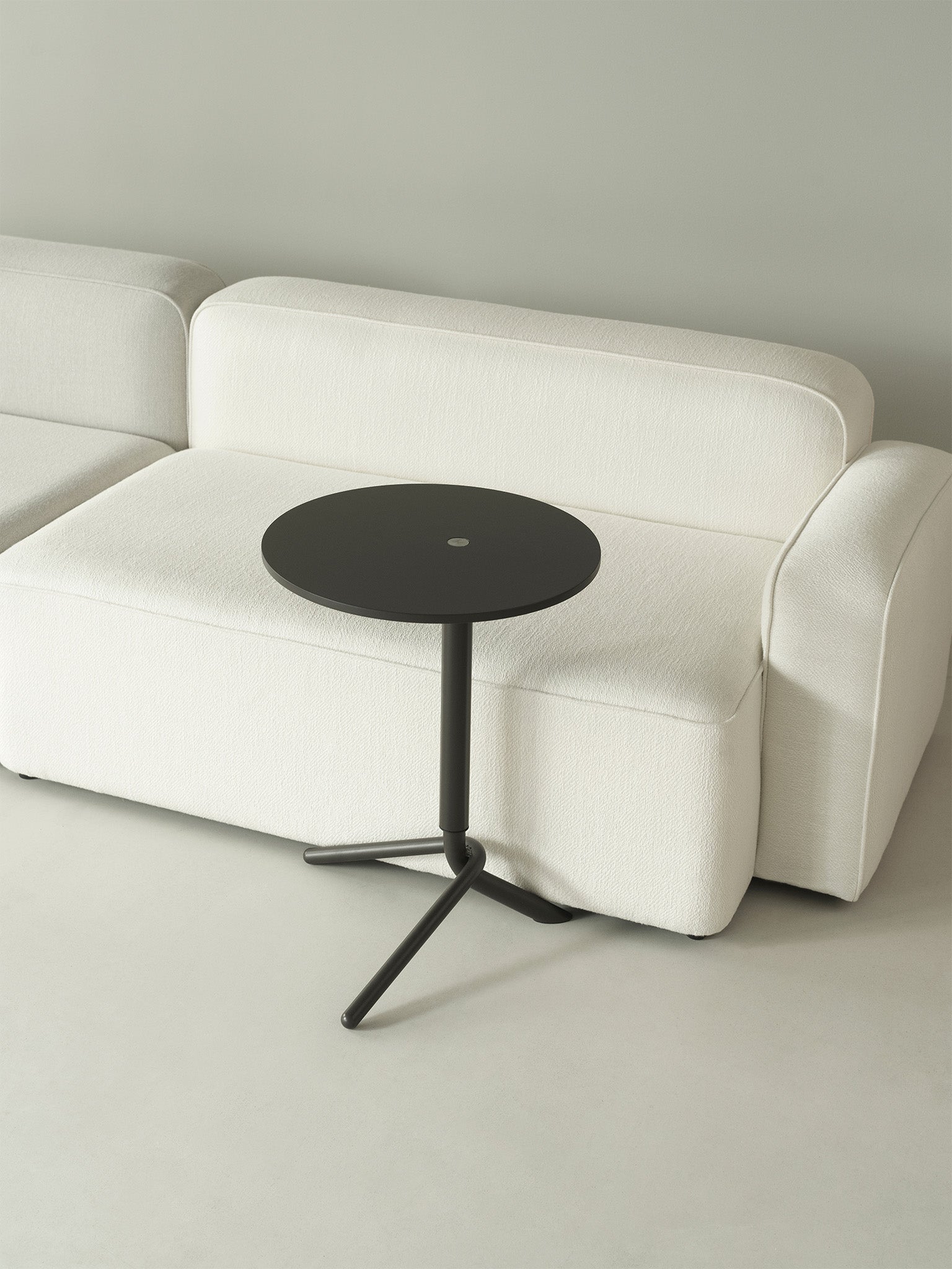 Lift Side Table is a versatile and lightweight side table designed to adapt according to your needs. Whether placed beside a sofa, next to your bed, or used as a temporary work station, its height-adjustable function and light weight makes it effortlessly adaptable. A simple press of the button on the tabletop allows it to elevate smoothly, while a gentle push with applied pressure lowers it back down—intuitive and seamless.