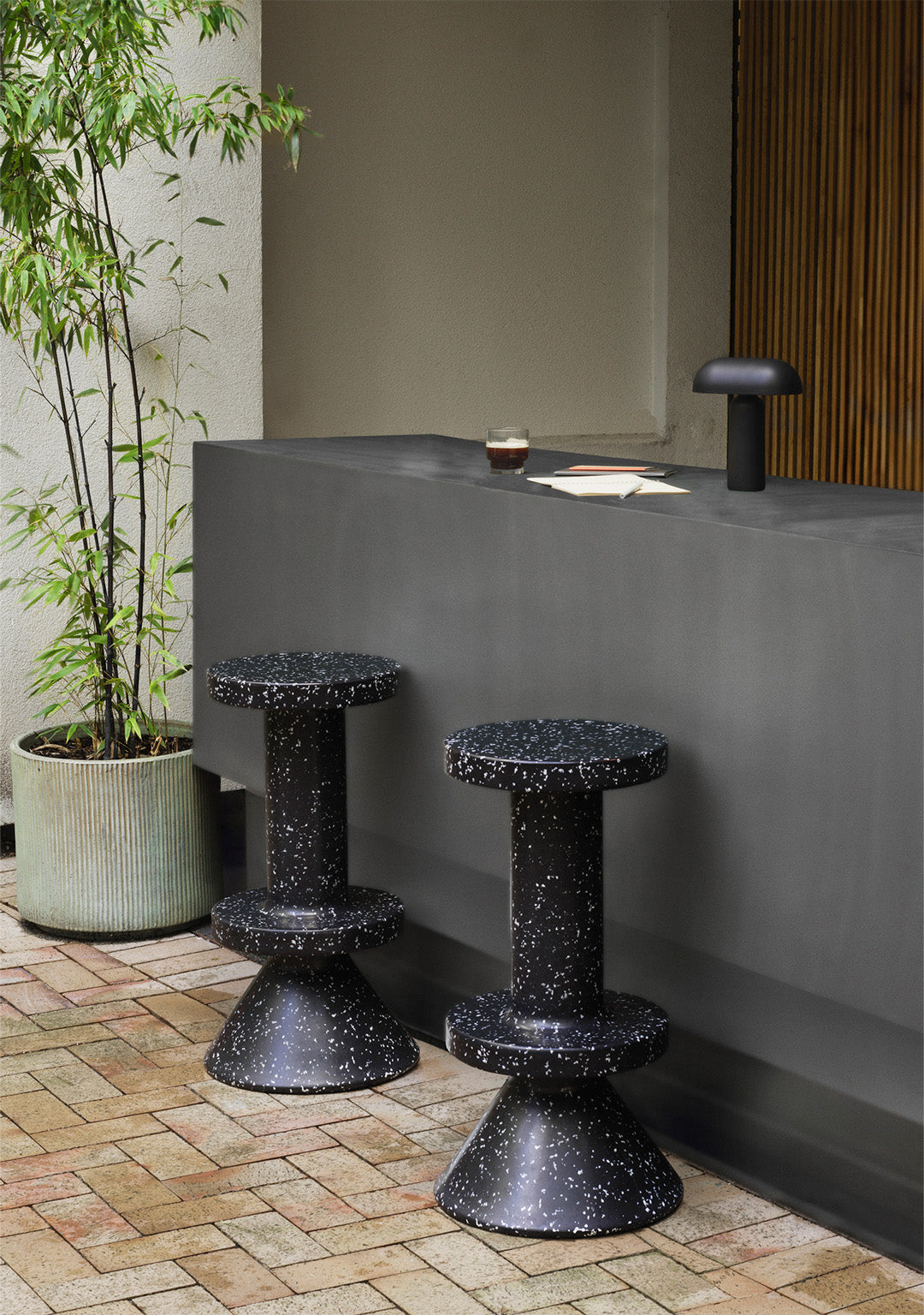 Bit Bar Stool is made up of small bits of recycled household and industrial plastic waste.
