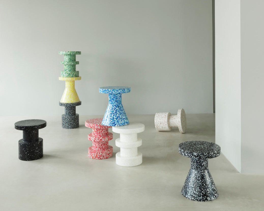 Use Bit as a pedestal for a floral arrangement, as a side table for a lamp, or as impromptu seating for that unexpected dinner guest. Inspired by clear-cut shapes such as monoliths and columns, designer Simon Legald's take on the stool is both bold and multifunctional. The straightforward, utilitarian look contrasts with the pixelated surface made up of small bits of 85-95% low density polyethylene industrial waste and 5-15% Virgin PE.