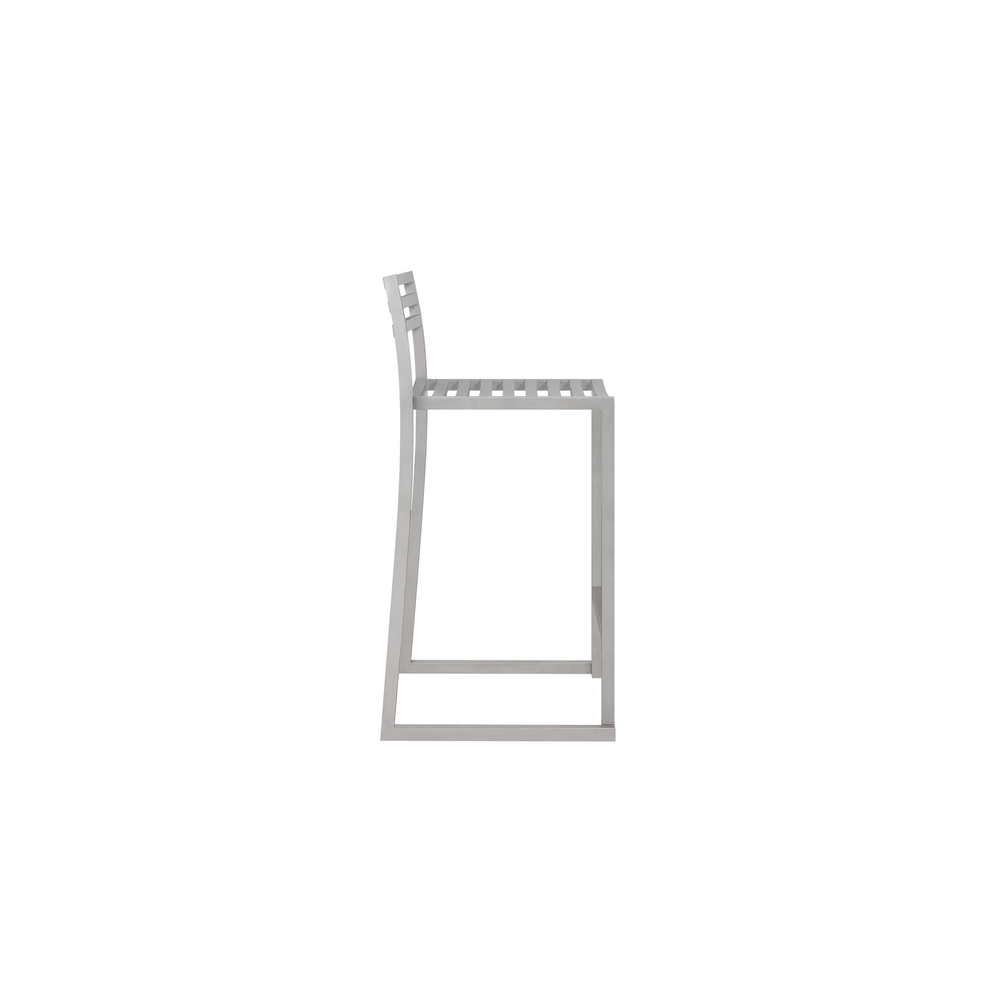 Beautifully proportioned, with subtle curvatures, it is intentionally simple, in both construction and style. Chop reimagines a classic slatted-chair archetype to create a silhouette that is immediately recognisable, yet pleasingly unknown. The idea for the design was influenced by Malouin's work in the art world, where he often utilises hand-led industrial techniques to develop striking forms that accentuate the object's materiality. The Chop collection is cut, bent and welded from durable stainless steel, and is available in a raw, sandblasted or powdercoated colored finish. A design for all seasons, Chop is correctly weighted to resist wind, while still being light enough to move around and stack with ease.