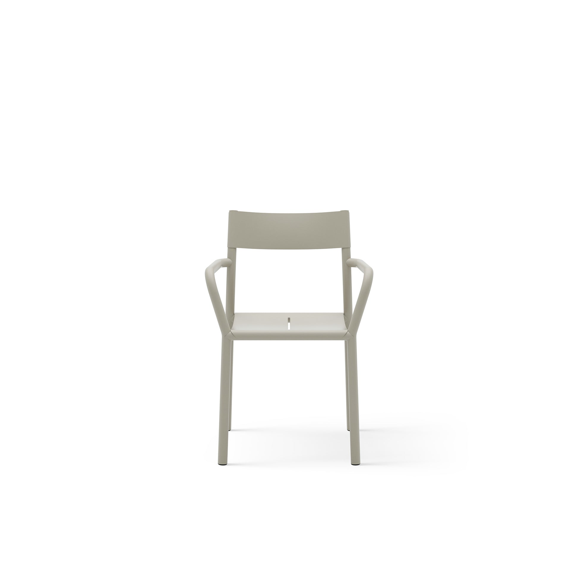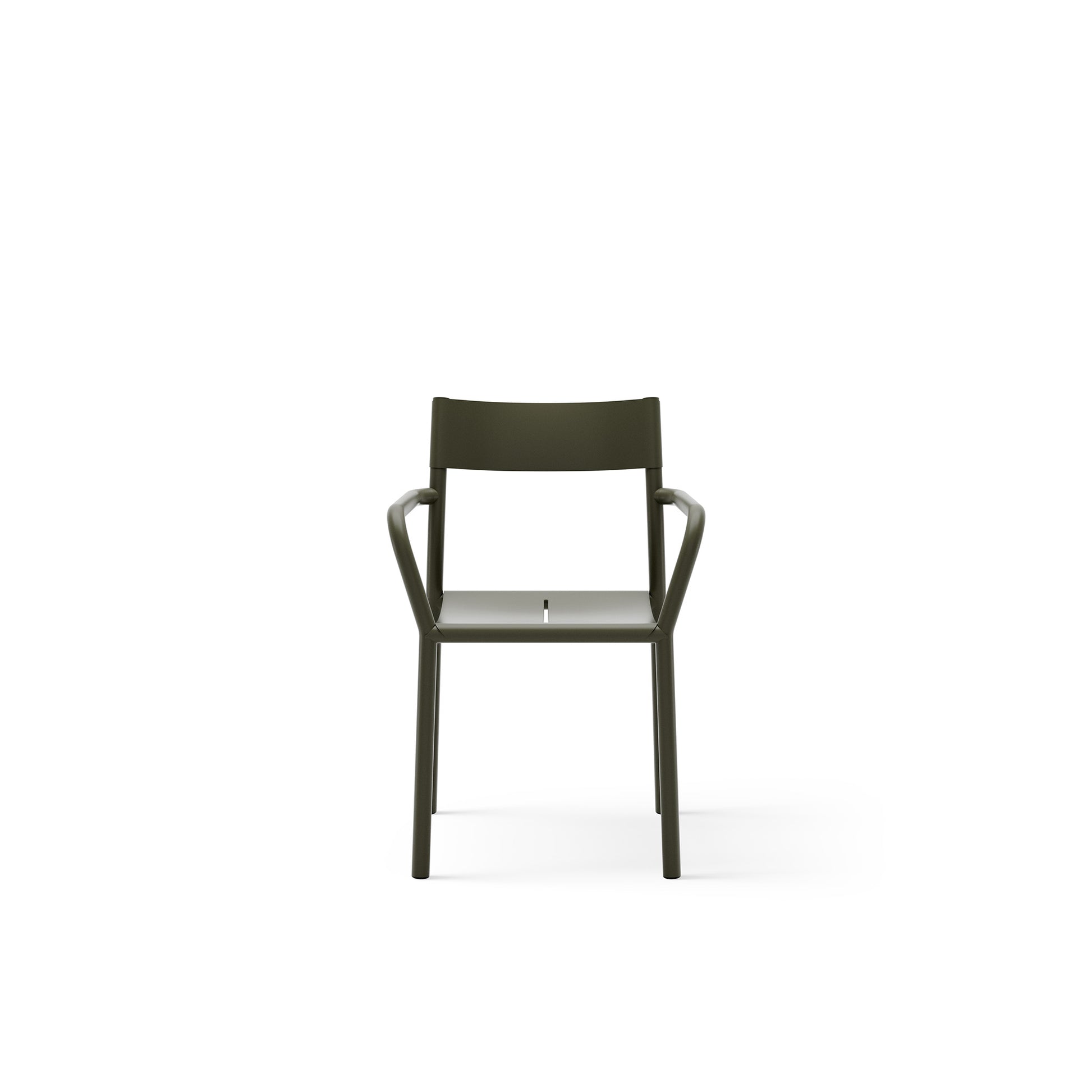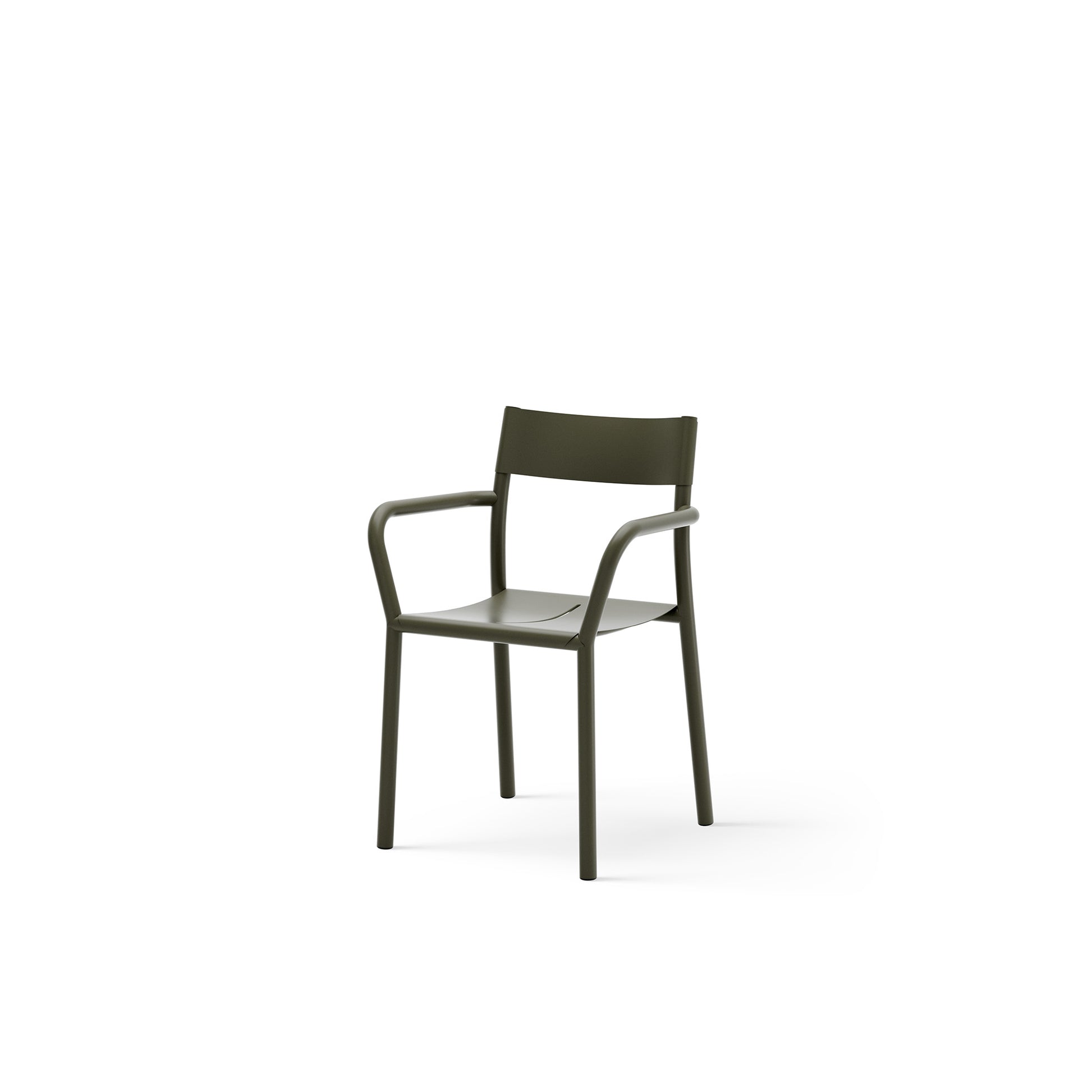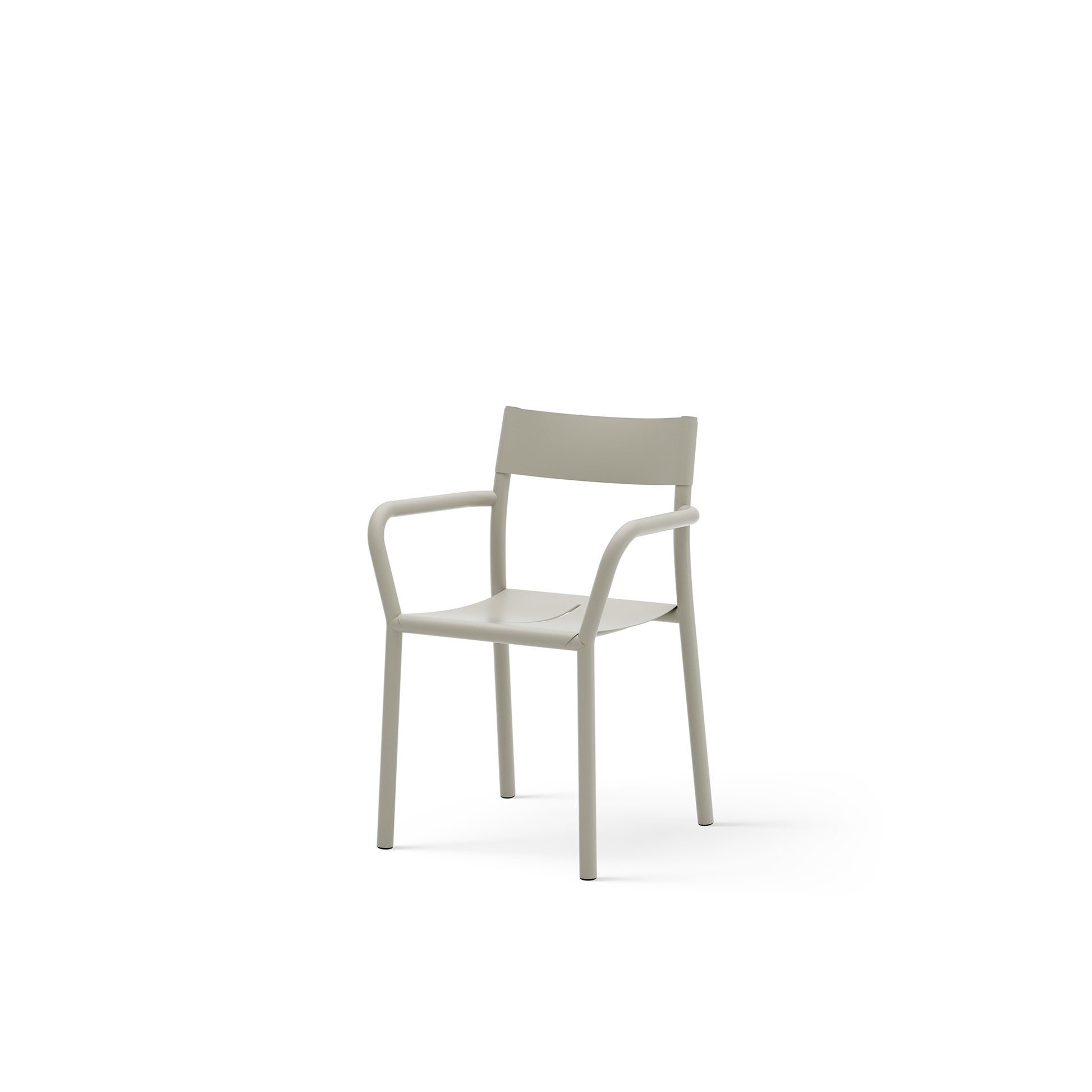 Made from powder coated steel, this hard-wearing furniture family consists of stackable chairs with and without armrests and tables in two lengths, harmoniously coordinated to complement each other.