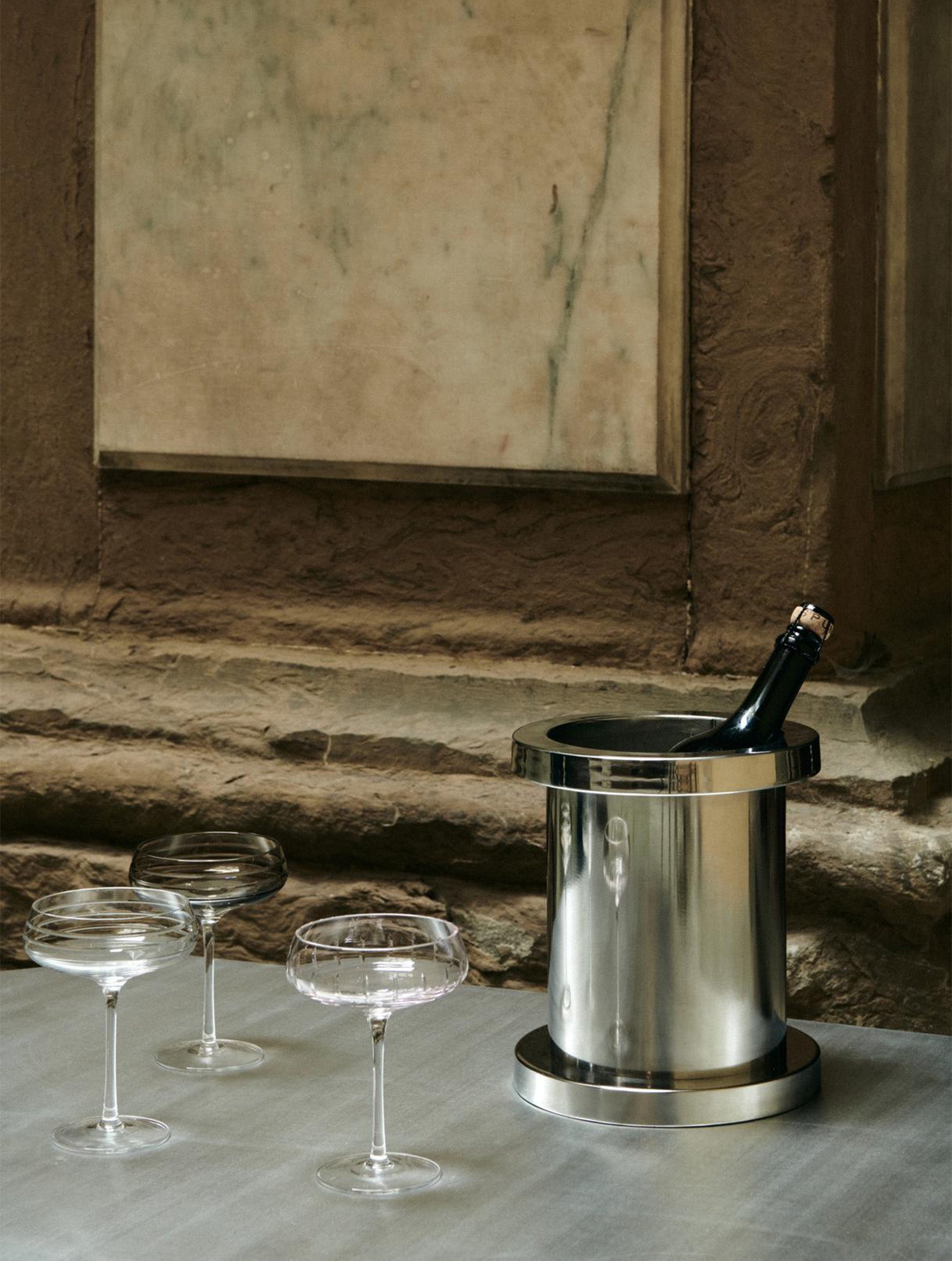 Visually artistic and surely functional, the Metal Wine Cooler keeps cold refreshments chilled.
