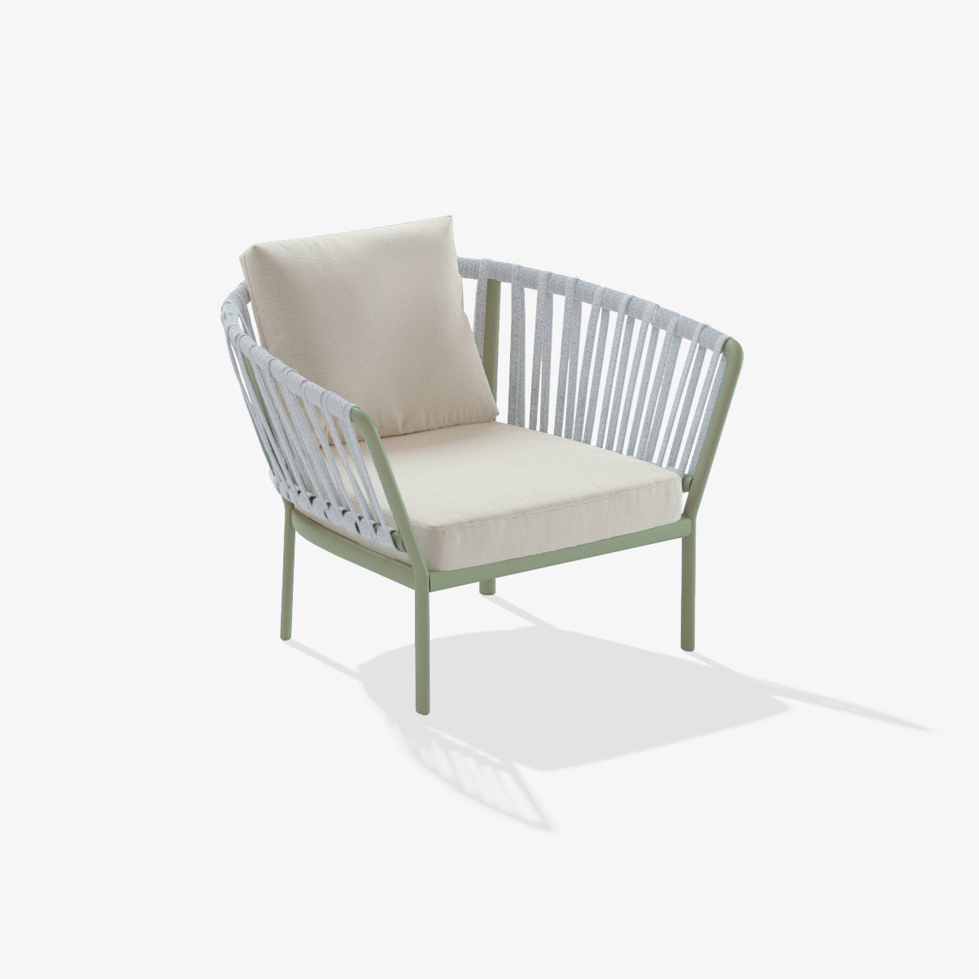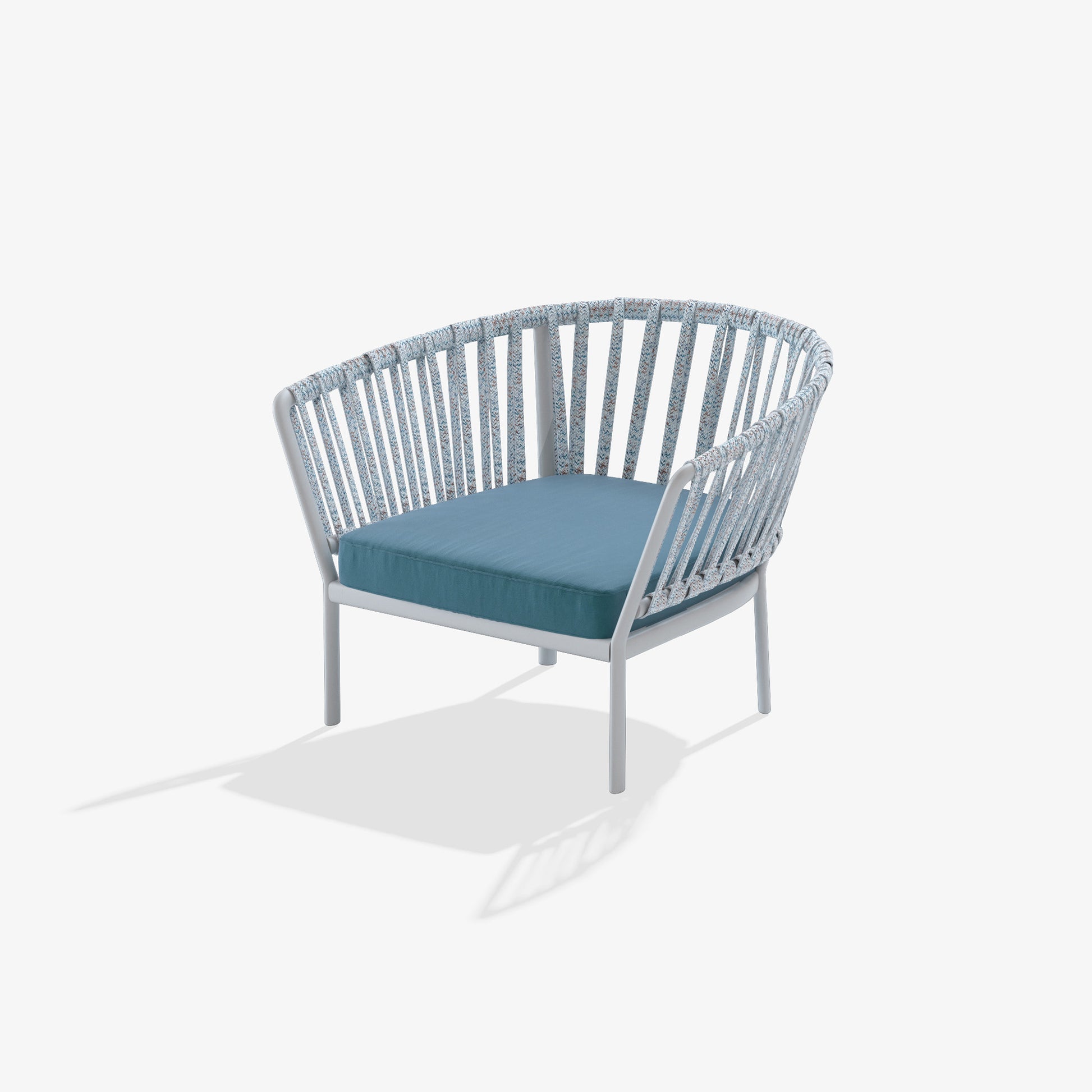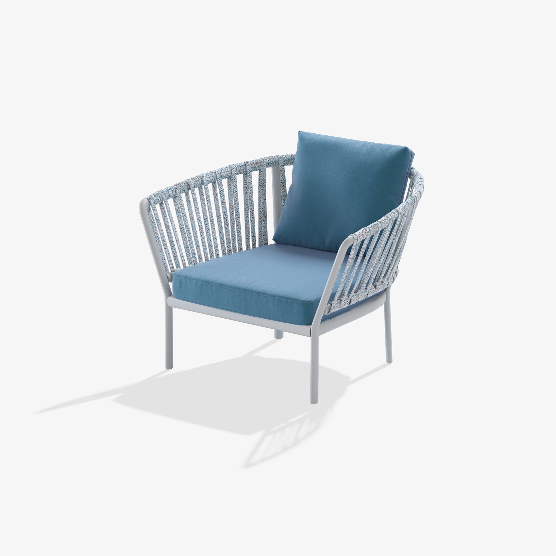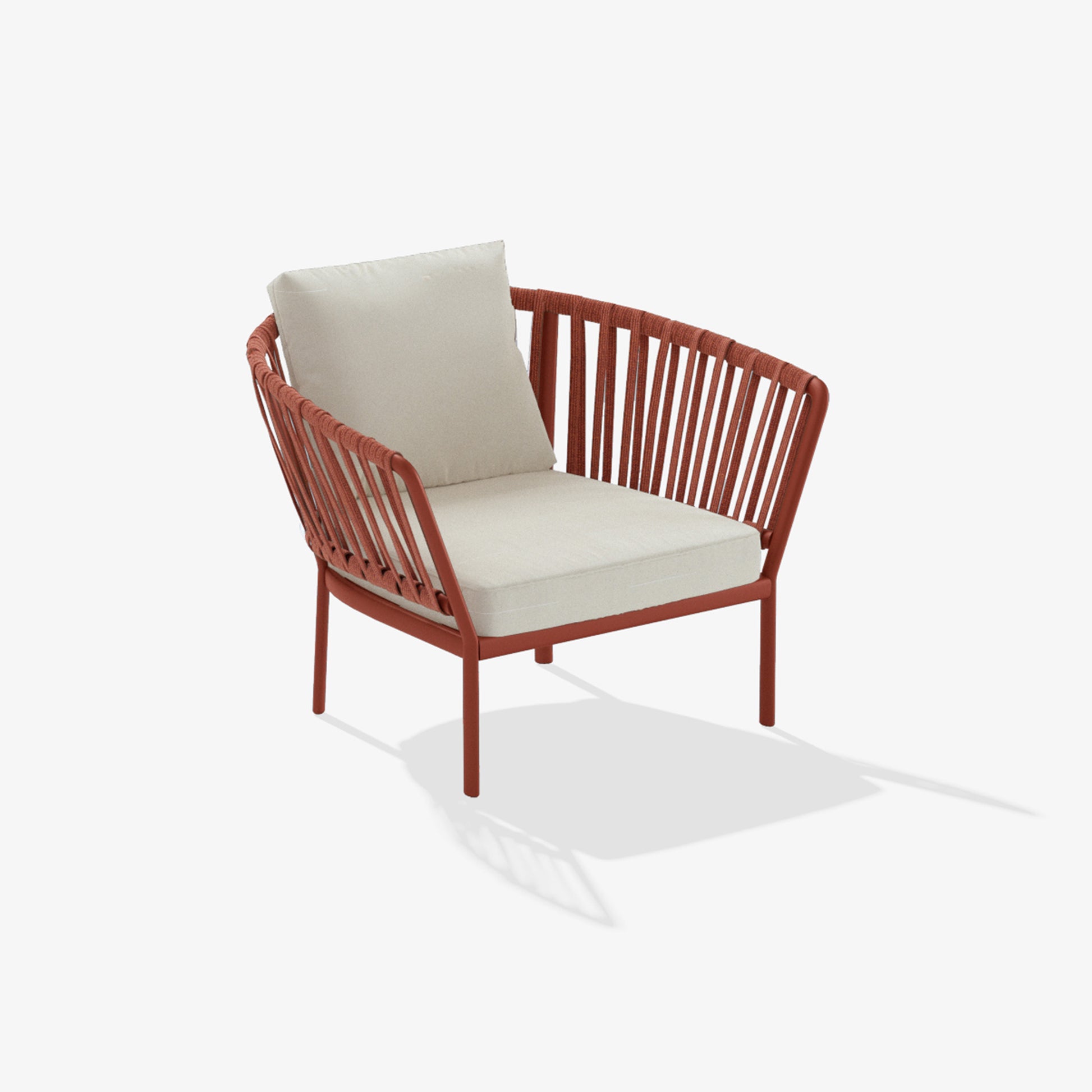 The Ria collection includes: dining armchair in the aluminium, partially woven rope, fully woven rope and with quilted backrest versions, 2/3-seater sofas, armchair, lounge chair and daybed in the woven rope versions.