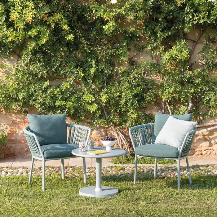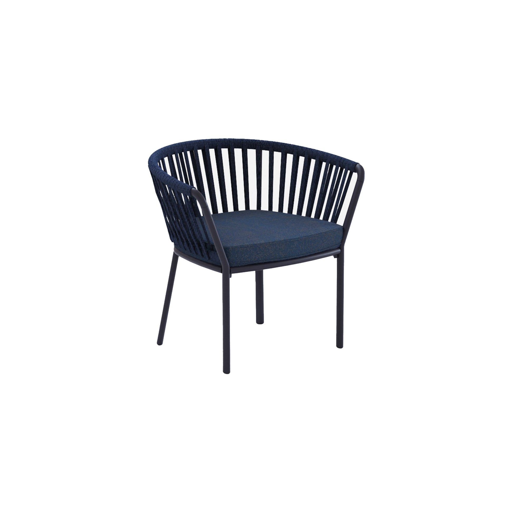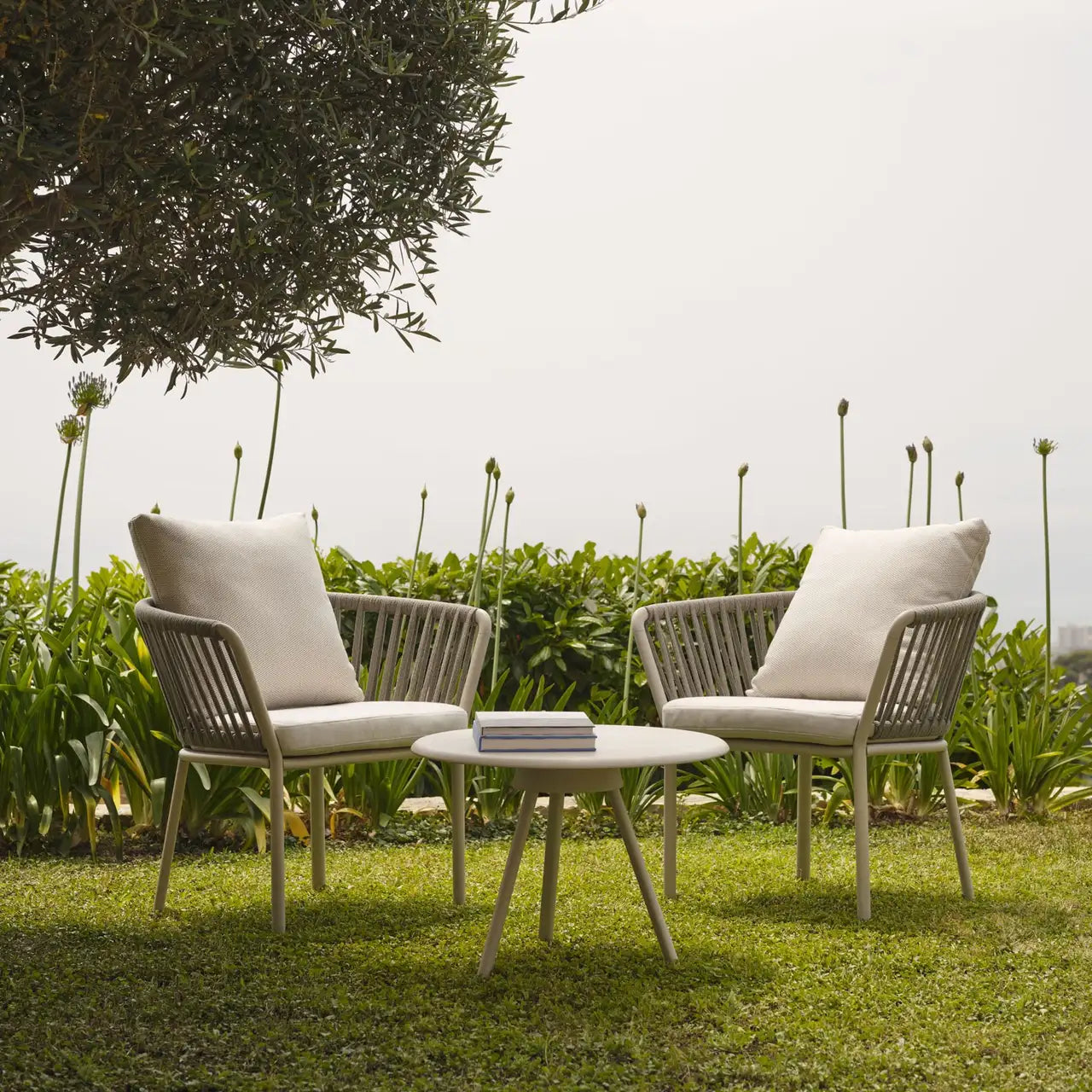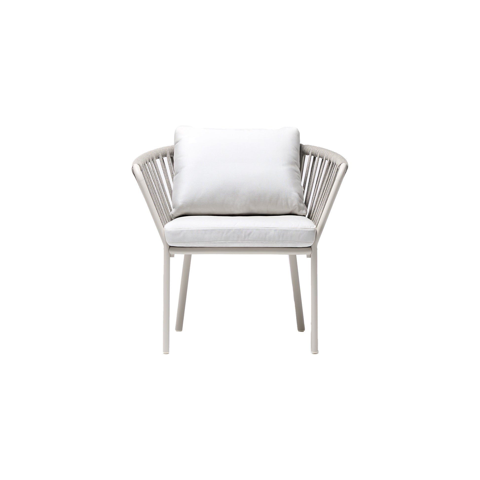 The Ria collection includes: dining armchair in the aluminium, partially woven rope, fully woven rope and with quilted backrest versions, 2/3-seater sofas, armchair, lounge chair and daybed in the woven rope versions.