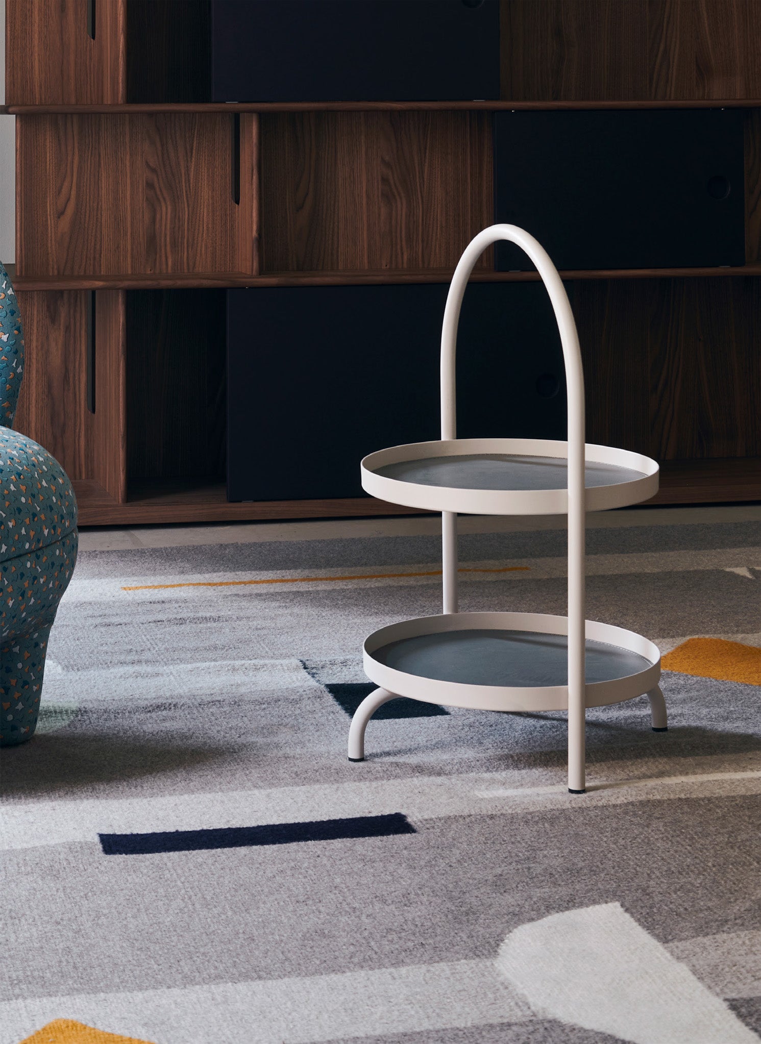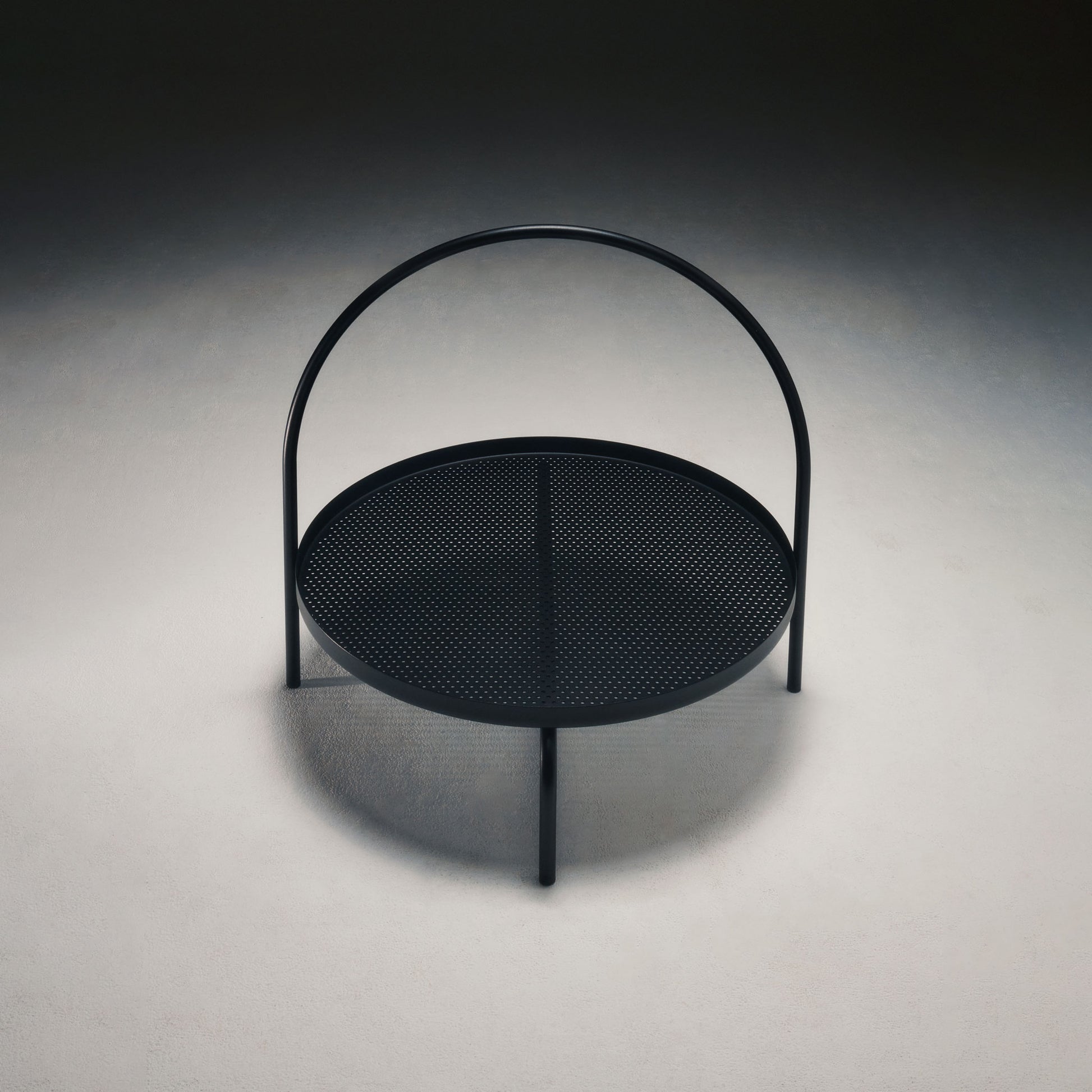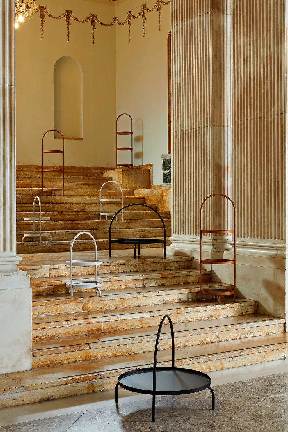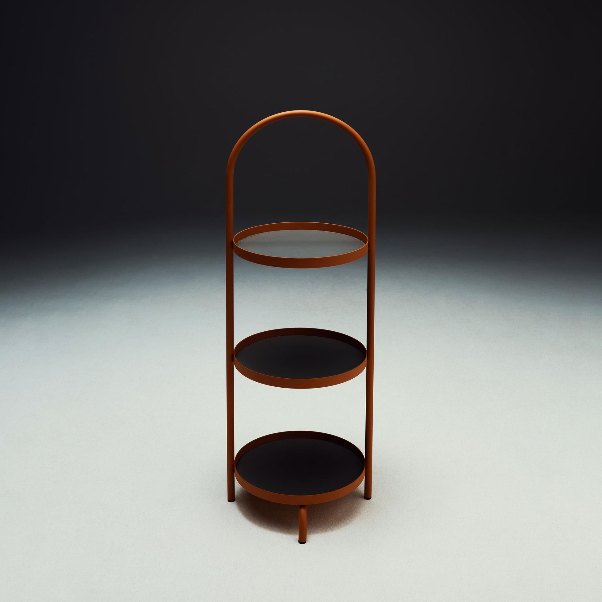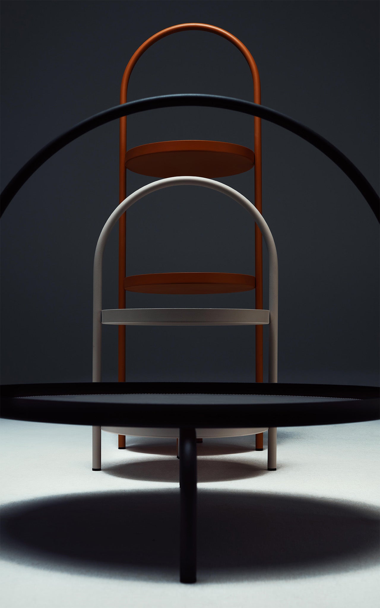 Crafted entirely from metal, Set comes in several sizes with a varying number of trays, catering to a diverse range of purposes. The design provides an easy solution to carry, store or display a variety of objects. The arched structure ties the whole design together, forming a handle at the top for convenience.