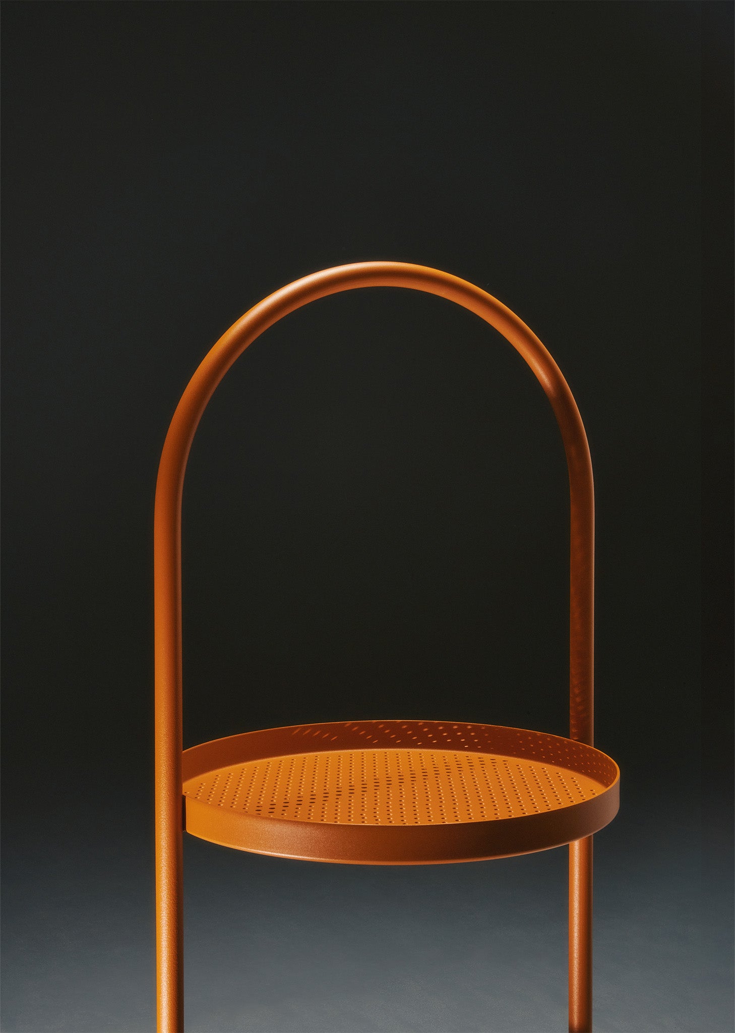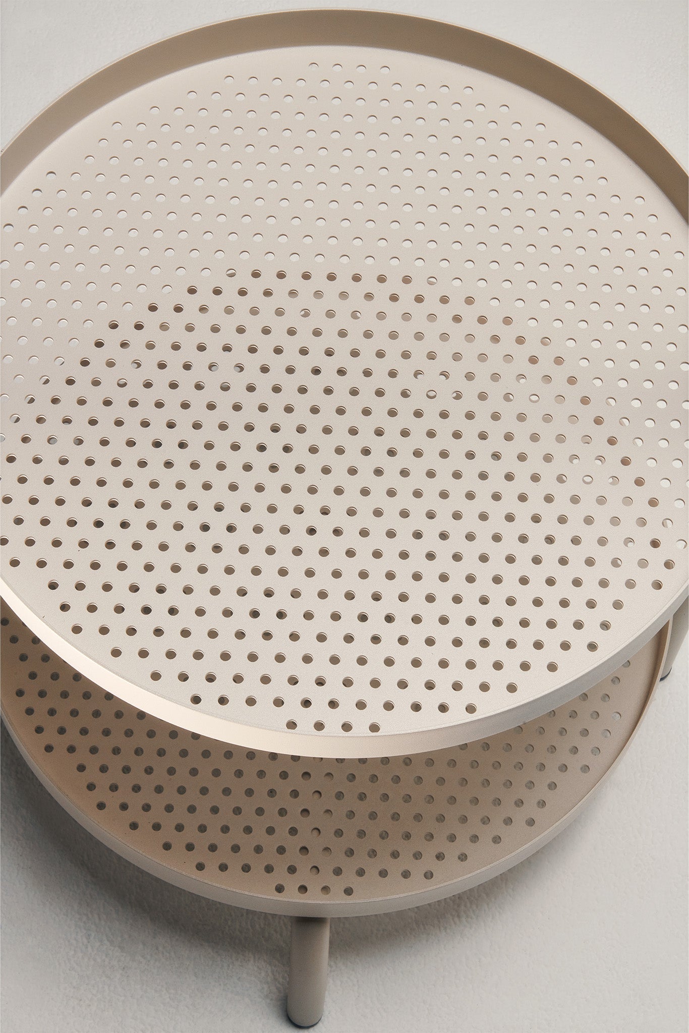 Hundreds of tiny circular holes to create a structured effect. Easy to clean, resistant to all weather conditions, Set has been designed as a convenient serving table easy to move around the home and now terraces, gardens, balconies and all sorts of outdoor spaces.