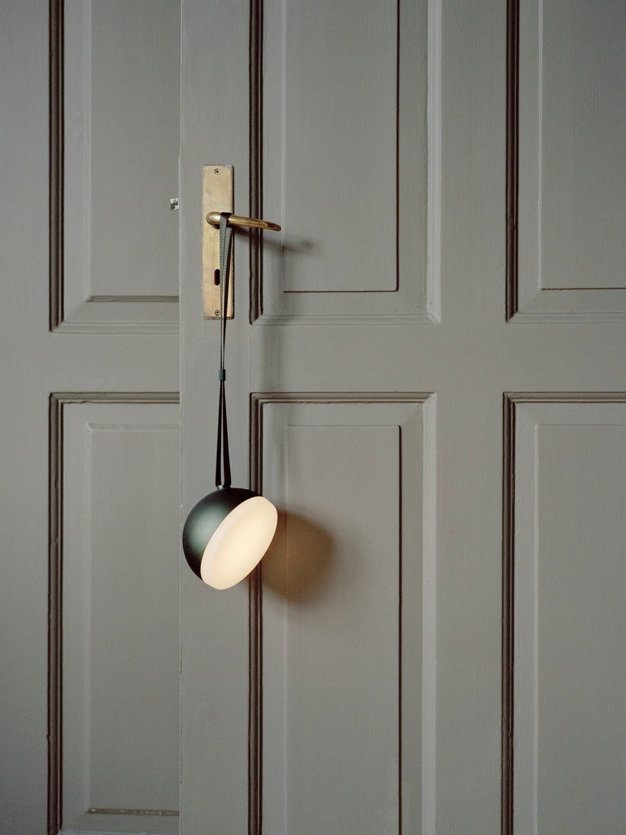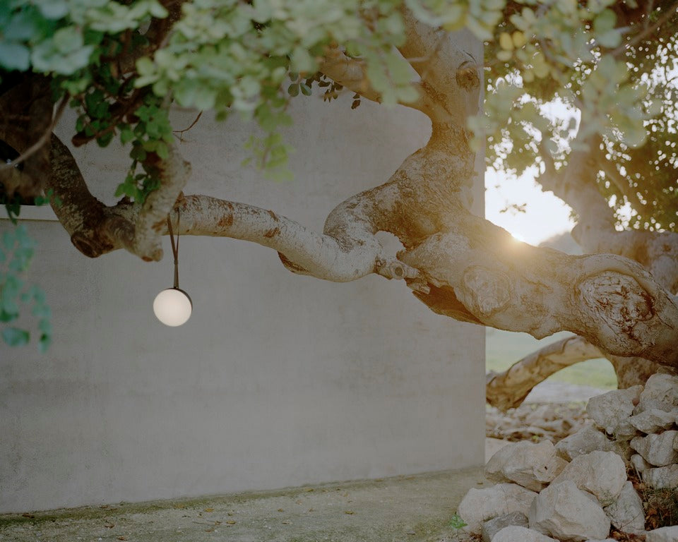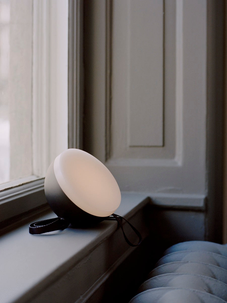 With its geometric crescent shape this portable light lends an air of mystery to its surroundings, while offering long-lasting utility through clever features. The lamp is water, dust, and impact-resistant and features a strap for holding or hanging the light. The curved shape rests comfortably in the hand and an integrated dimmer with memory function allows you to adjust the light. Move the sphere around the home as needed and take it out onto the balcony, patio, or on excursions to the forest, beach, or park. This alluring lamp is ideal for outdoor gatherings that last beyond dusk.