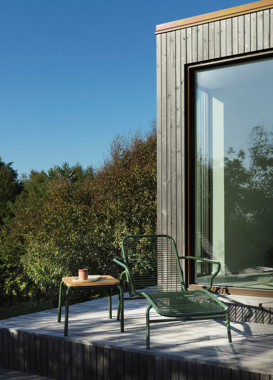 Made from double powder coated steel for enhanced durability, Vig is built to withstand the rigors of outdoor use while maintaining its pristine appearance. Each piece in the collection has been thoughtfully designed to ensure resilience and longevity, encouraging years of good use in all weather conditions. In addition, a distinctive feature of the Vig collection is the integration of Robinia (Black Locust) wood, featured on the collection's tables and available as an optional choice for the seating range. Robinia, or Black Locust, is renowned for its exceptional strength, durability, weather resistance and remarkable resistance to decay, requiring minimal maintenance while maintaining its natural beauty. The combination of steel and Robinia offers an elegant blend of materials, further enhancing the collection's aesthetic appeal.