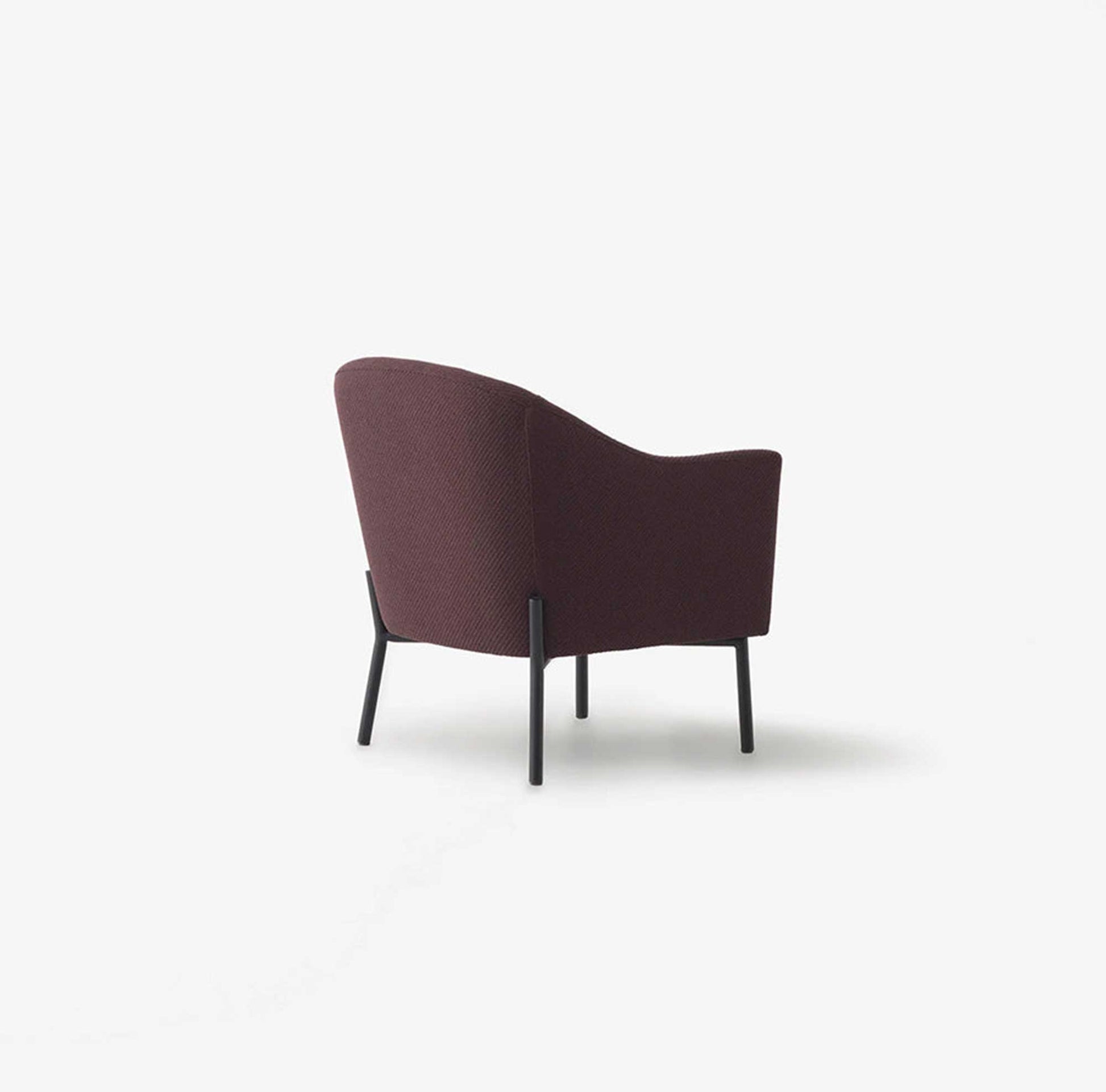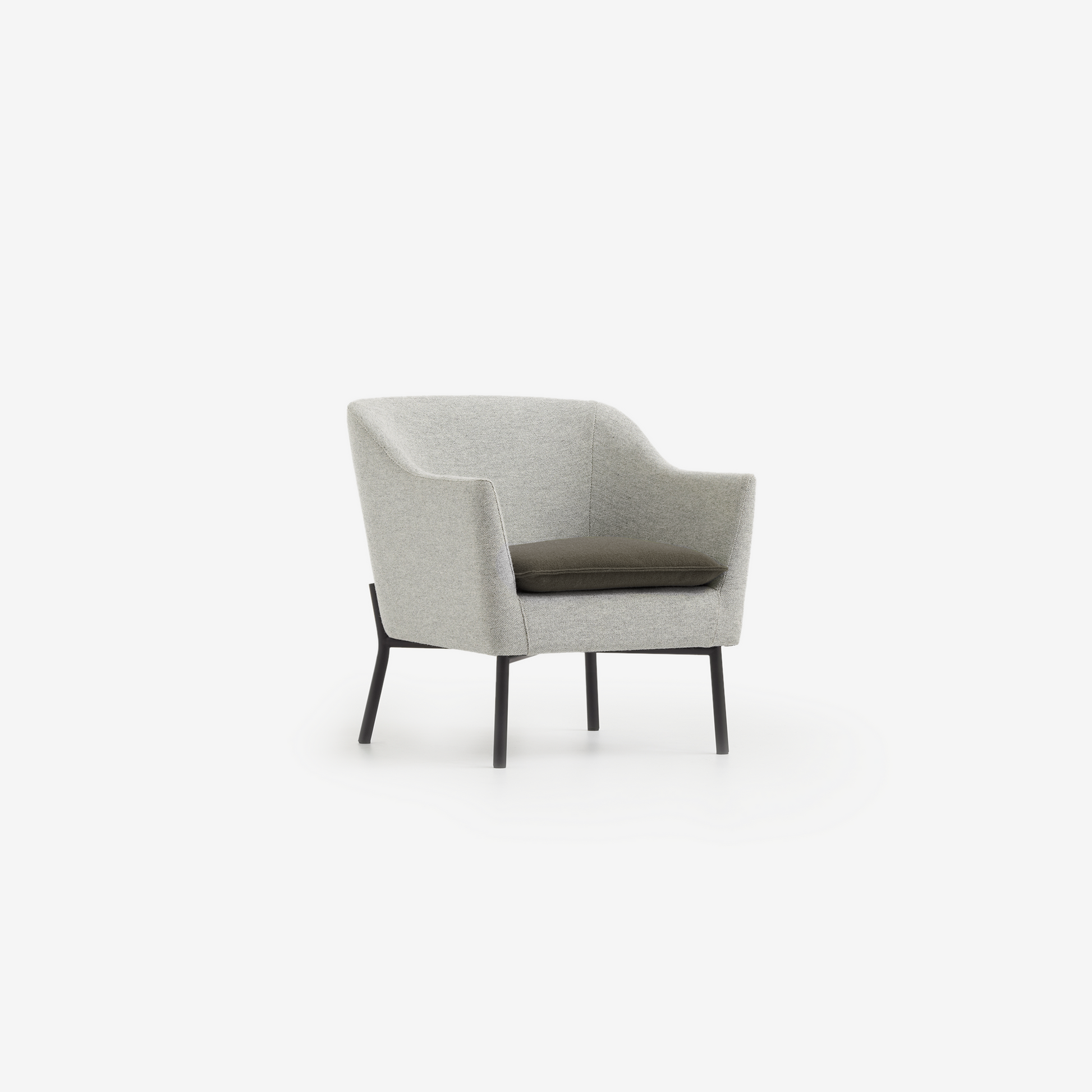 The Felix Lounge Chair was designed by Simon James for both commercial and residential environments. A fully upholstered, high backed seat sits on a black powder coated steel frame, the extended back legs carrying a subtle yet refined design detail of the Felix range.