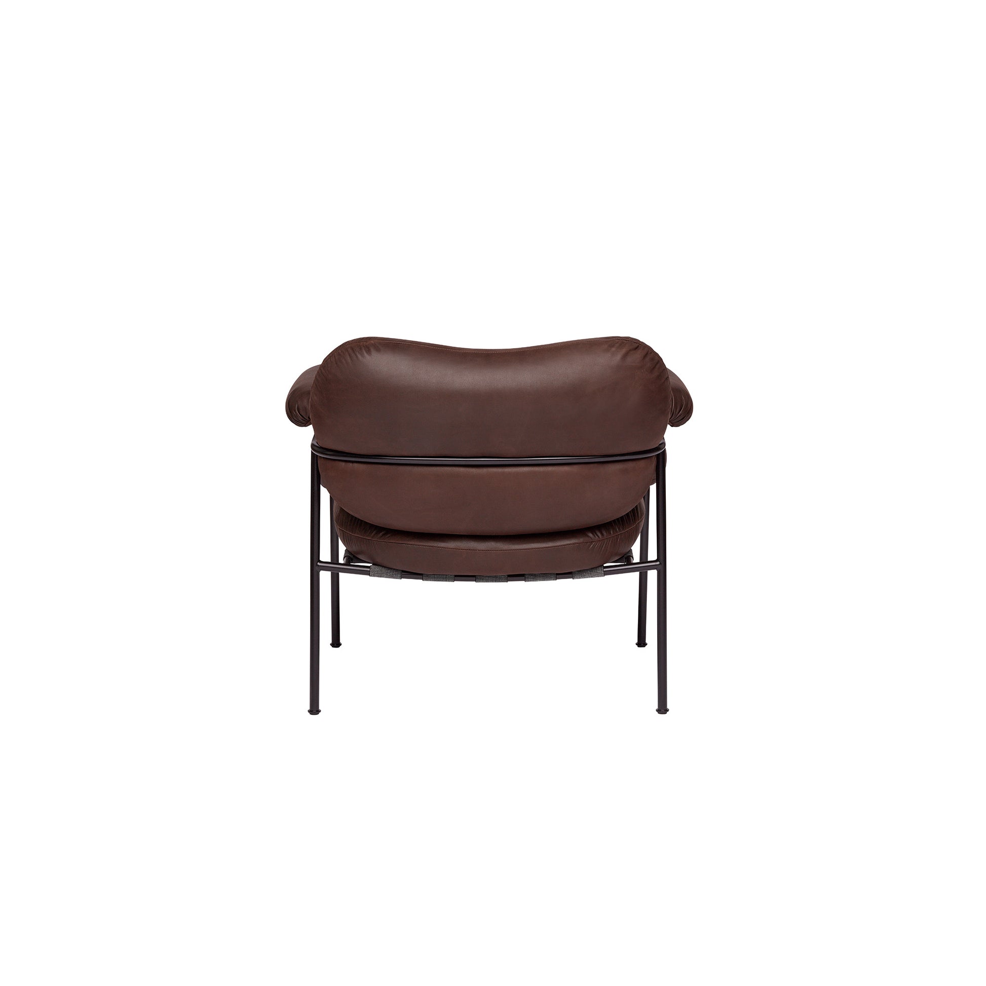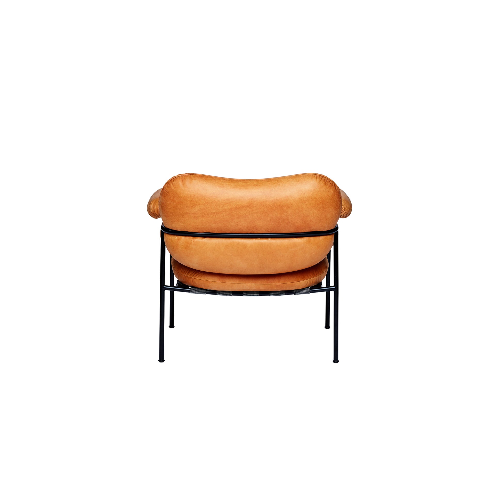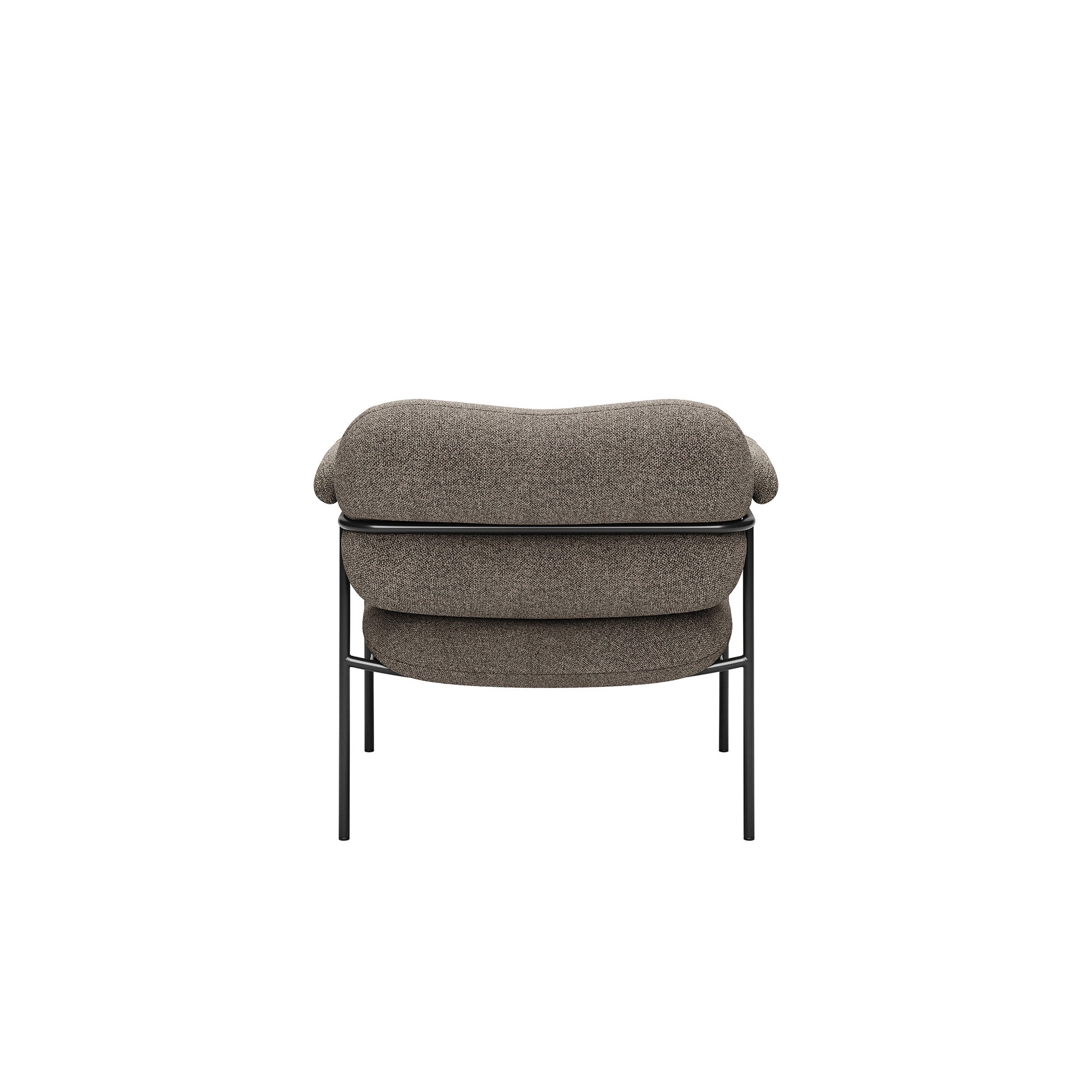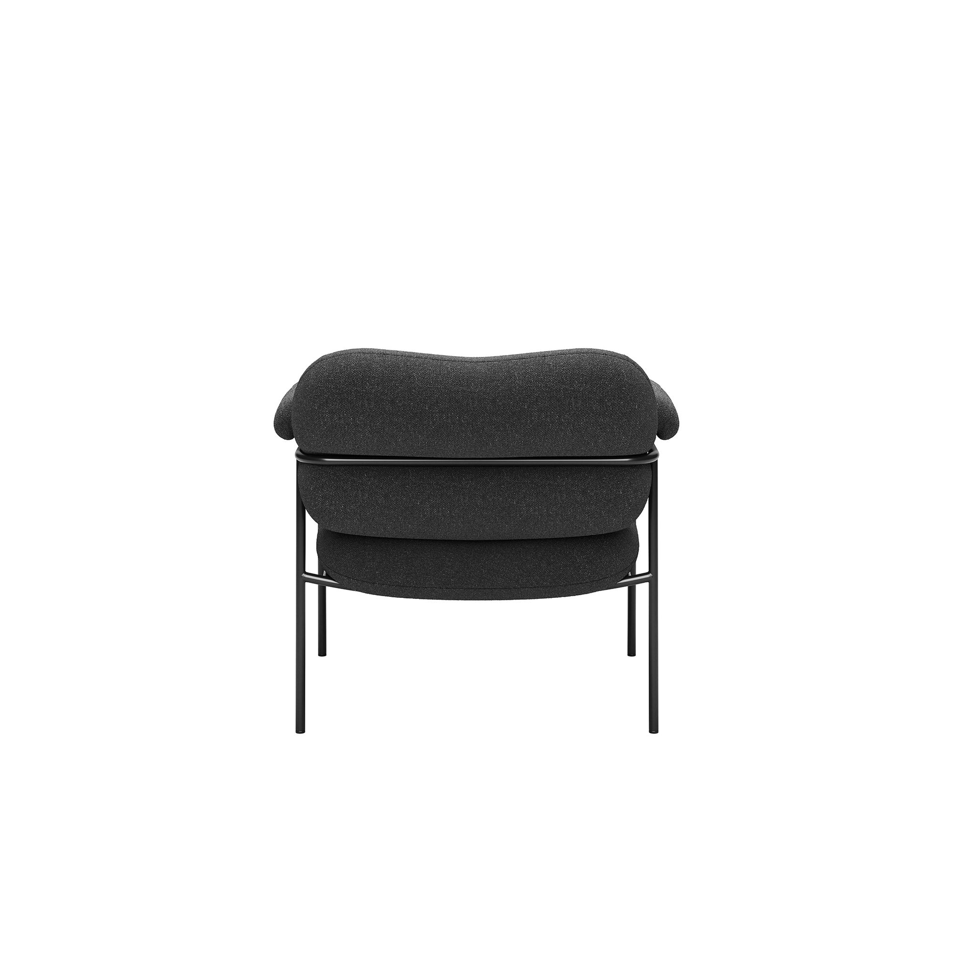 Inspired by the distinct tubular frames of mid-century lounge chairs, its generous cushioning wraps and softens the metal frame.