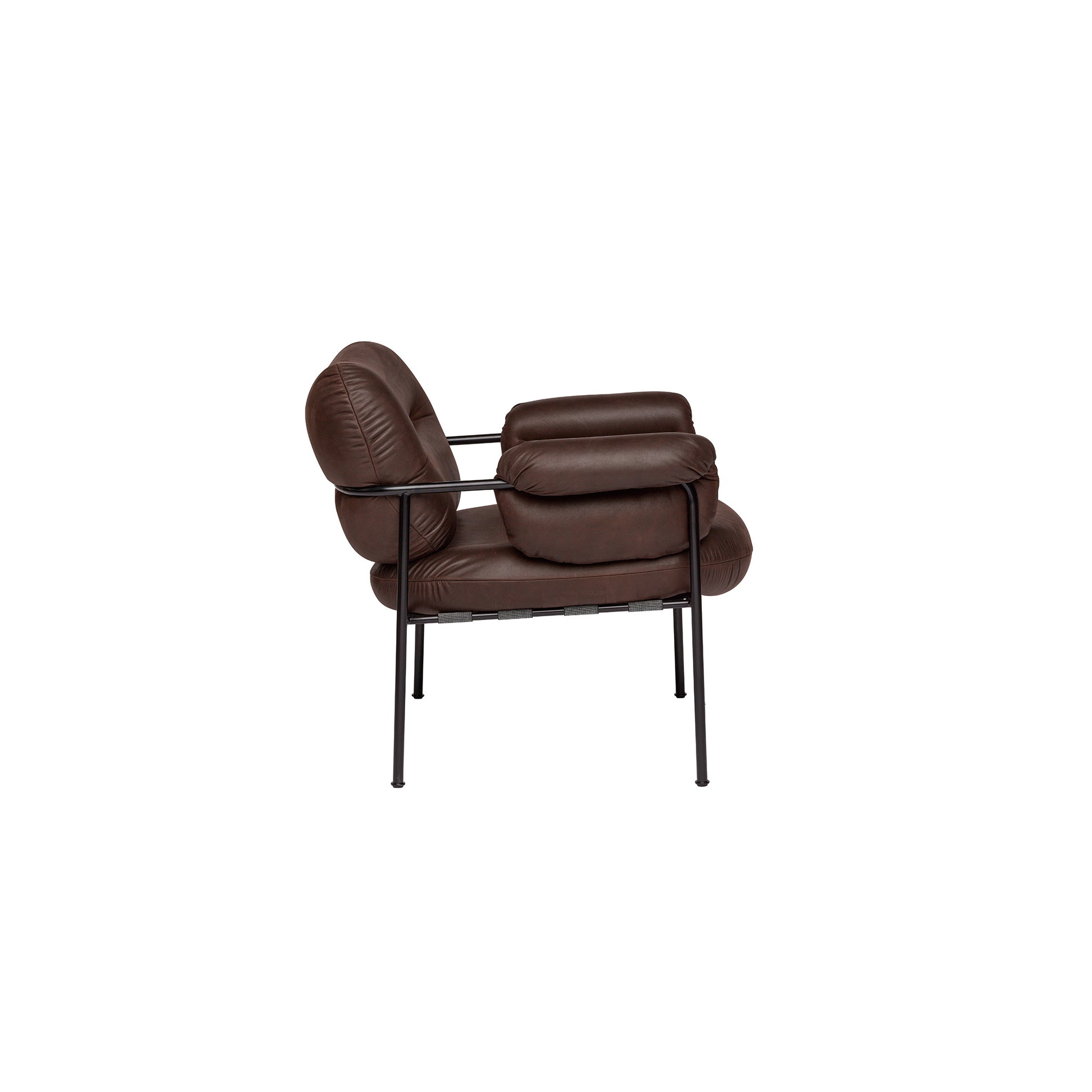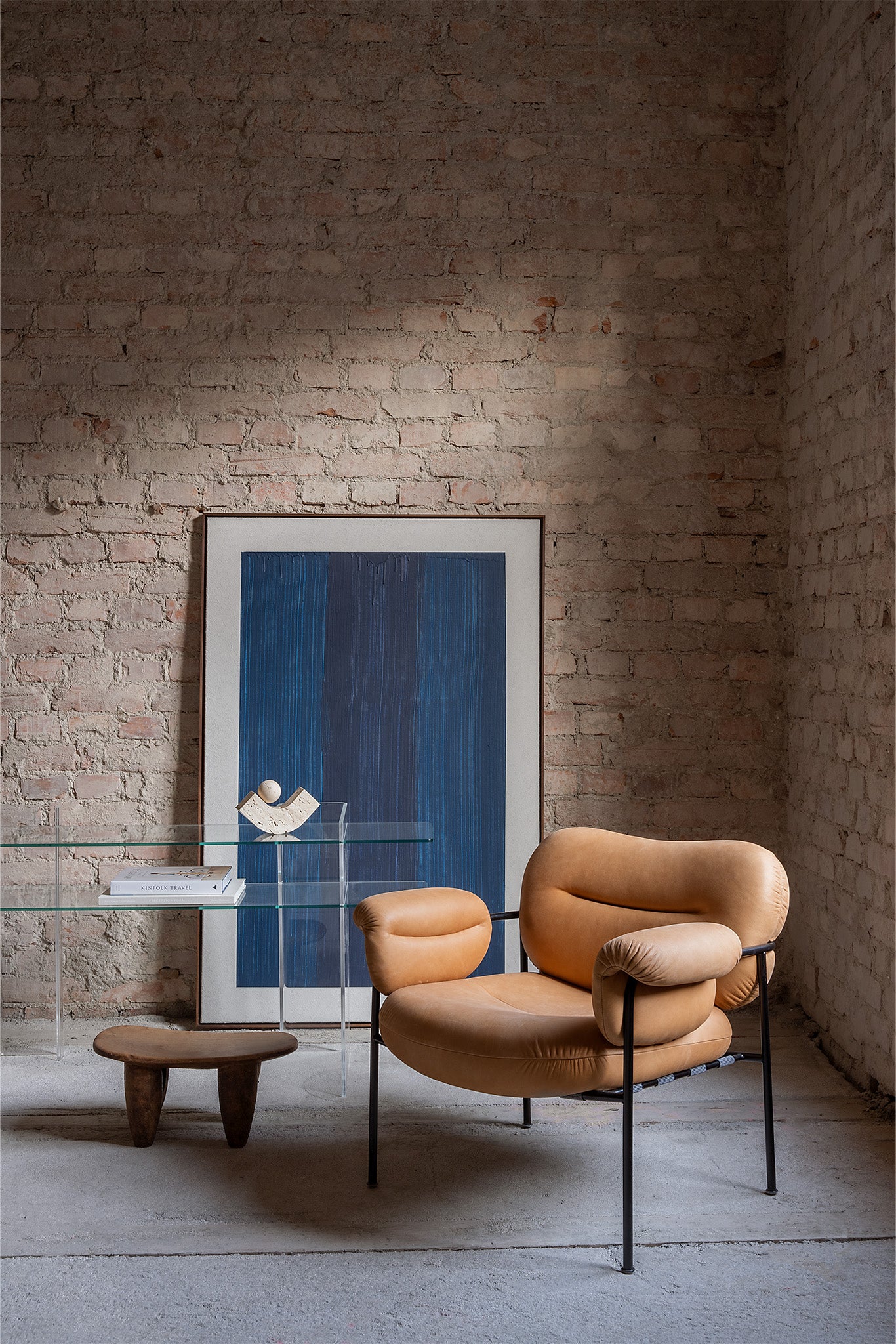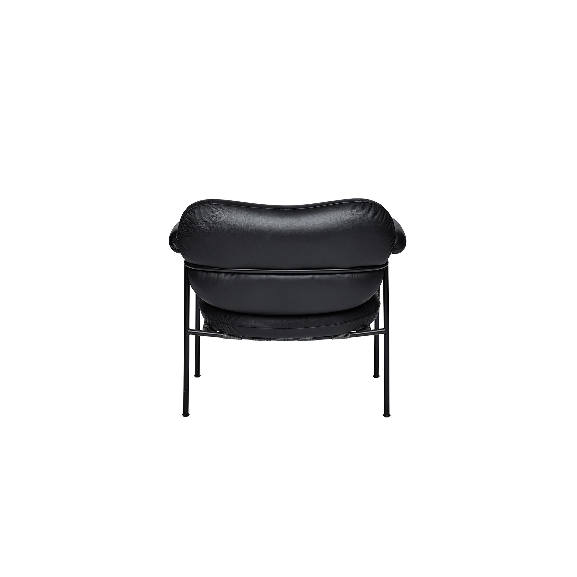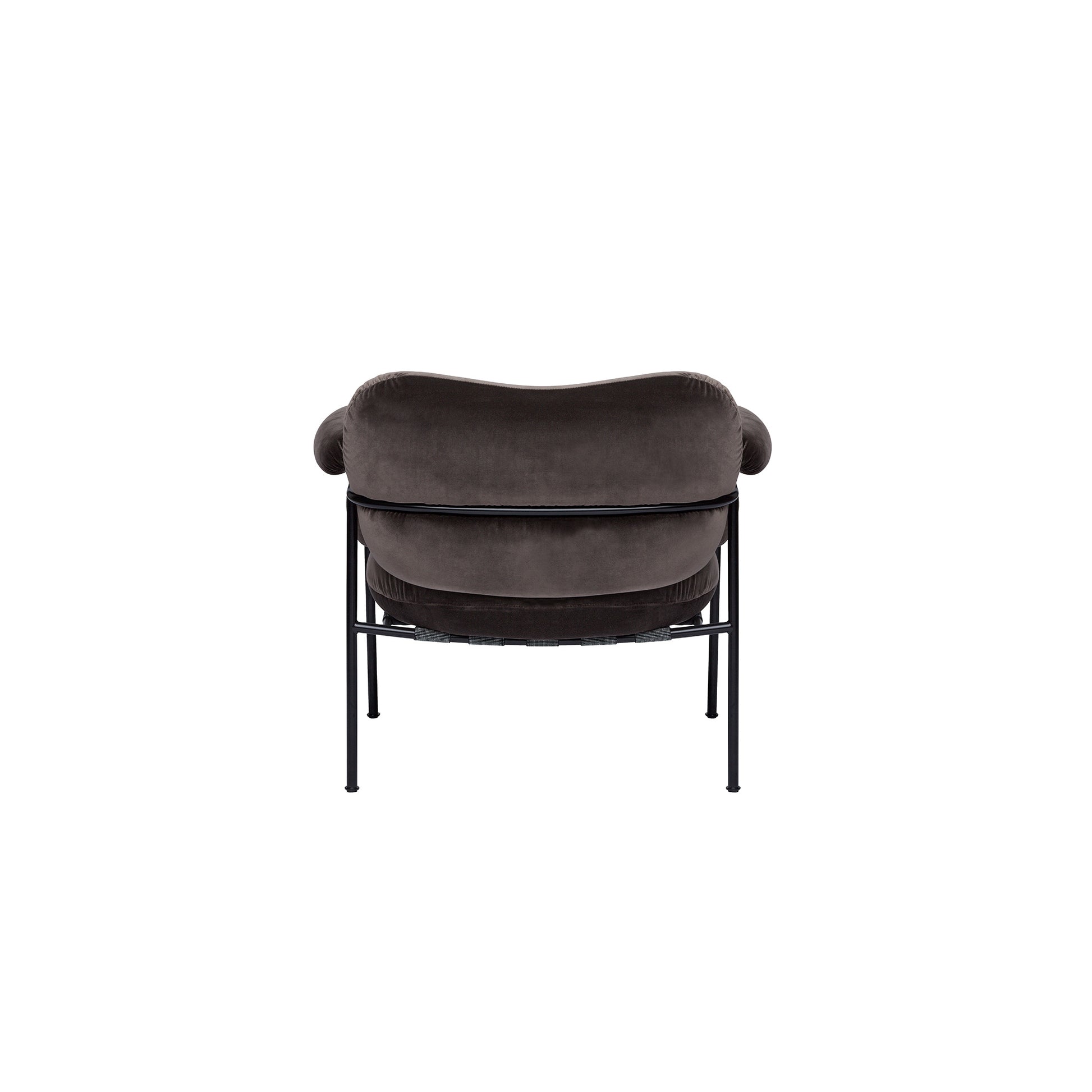Inspired by the distinct tubular frames of mid-century lounge chairs, its generous cushioning wraps and softens the metal frame.
