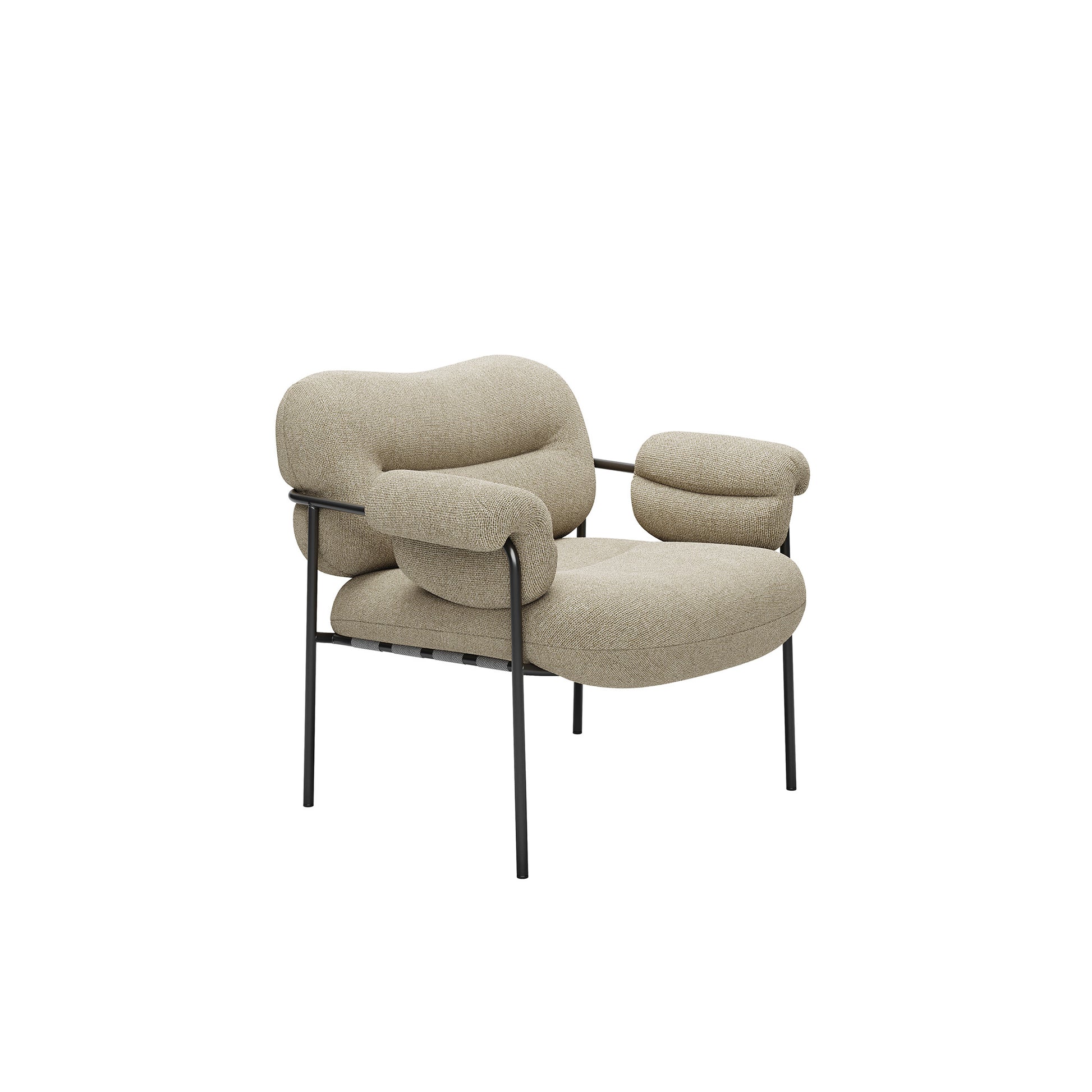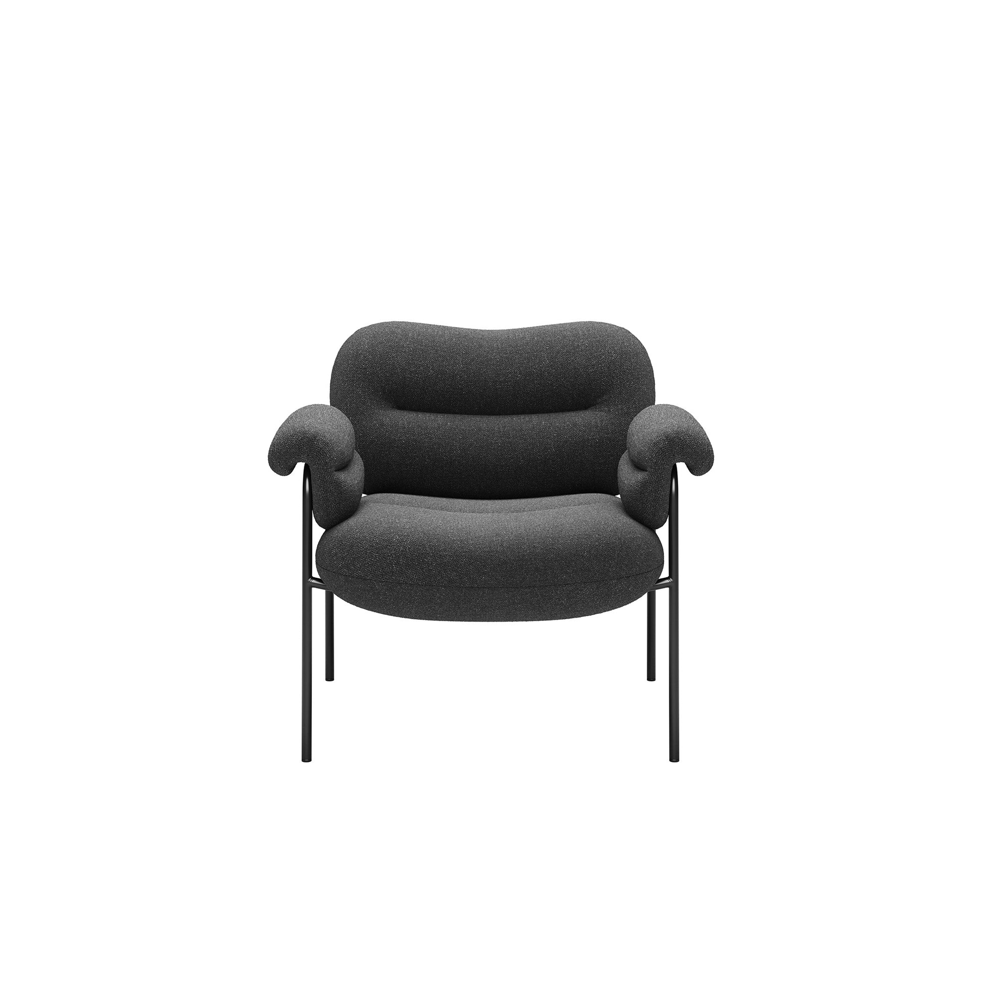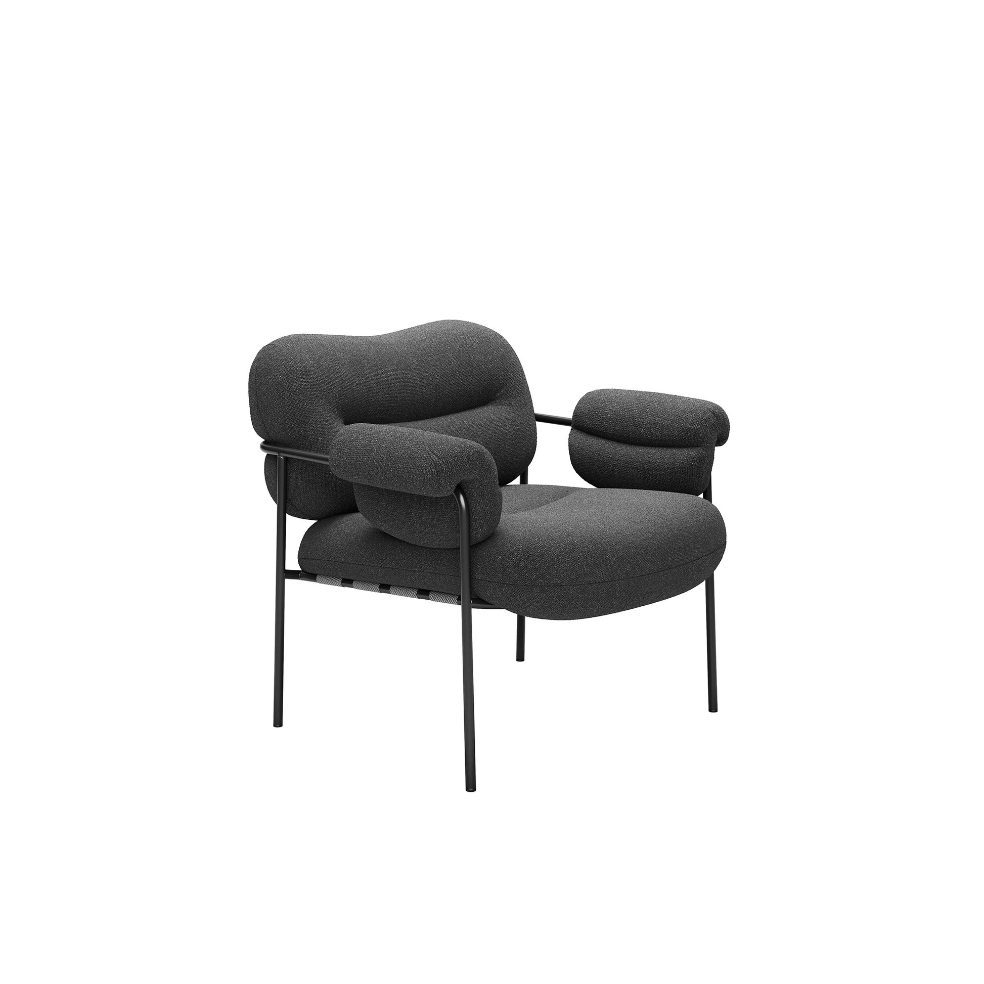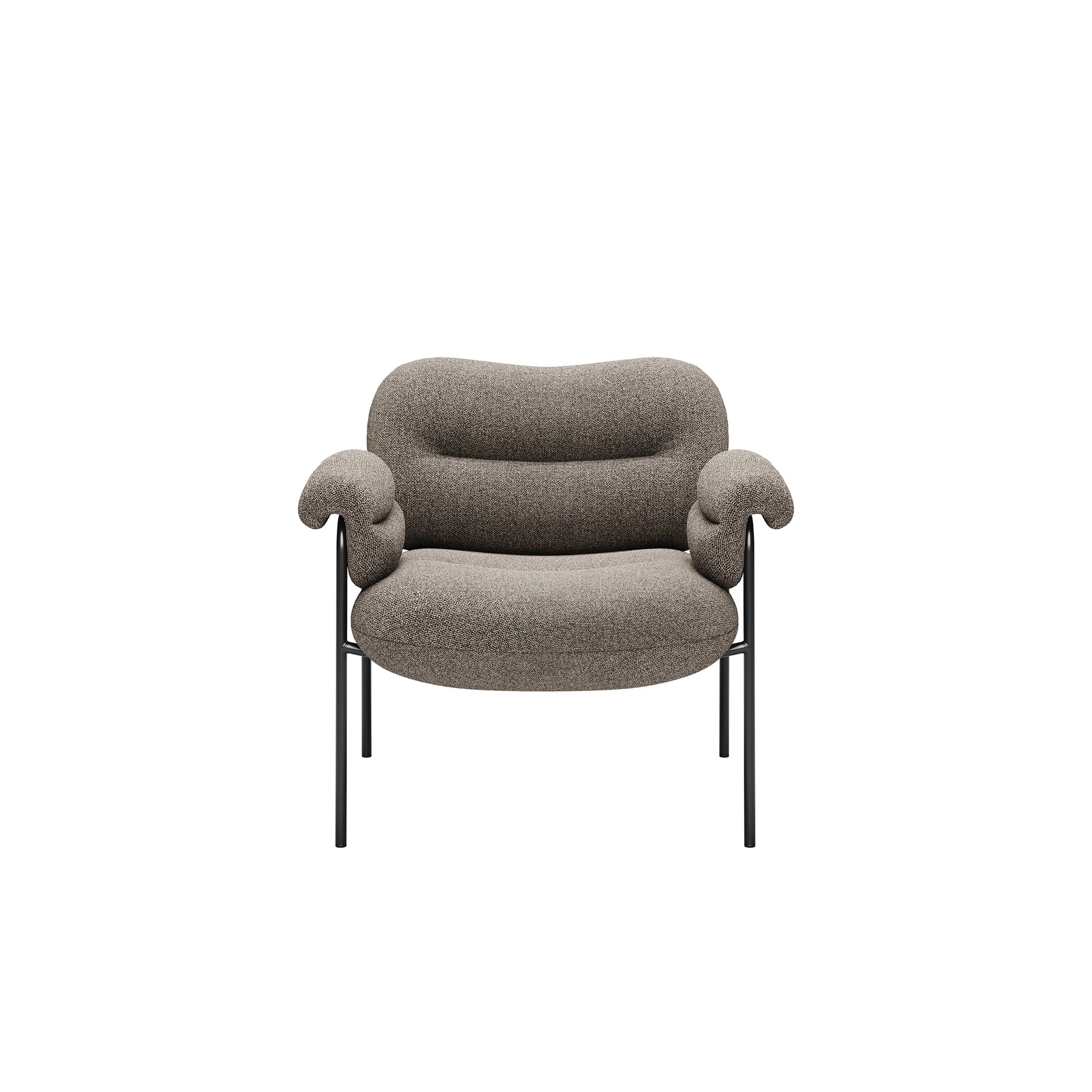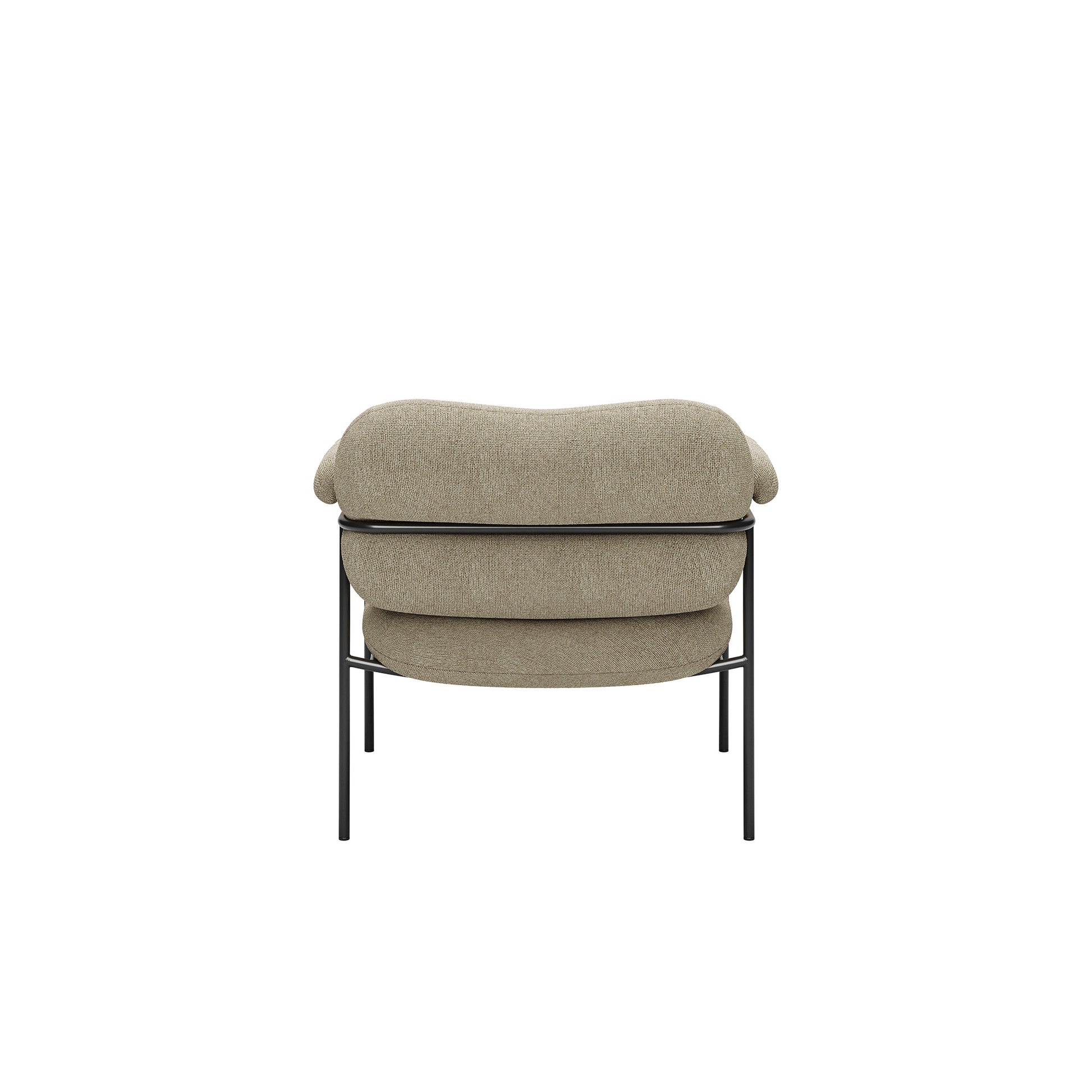 Inspired by the distinct tubular frames of mid-century lounge chairs, its generous cushioning wraps and softens the metal frame.