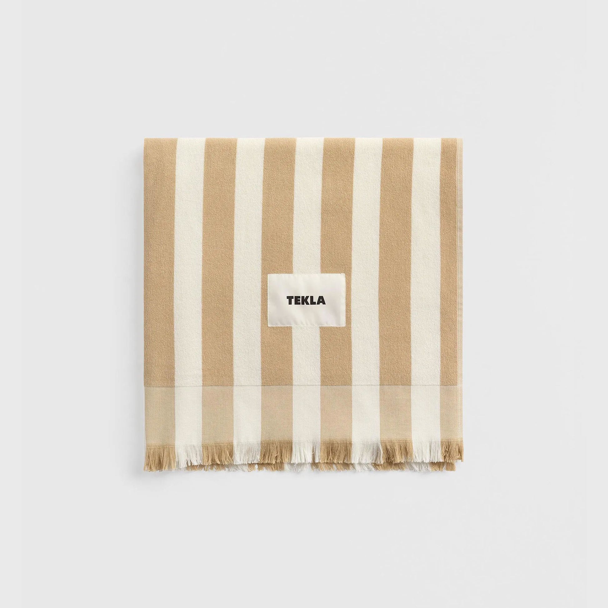 Tekla beach towels are crafted from 100% organic cotton and woven in Portugal. At 330 GSM, they offer a lightweight feel with enough density for absorbency and comfort. Each towel is certified to Oeko-Tex® Standard 100, ensuring responsible production and materials free from harmful substances.