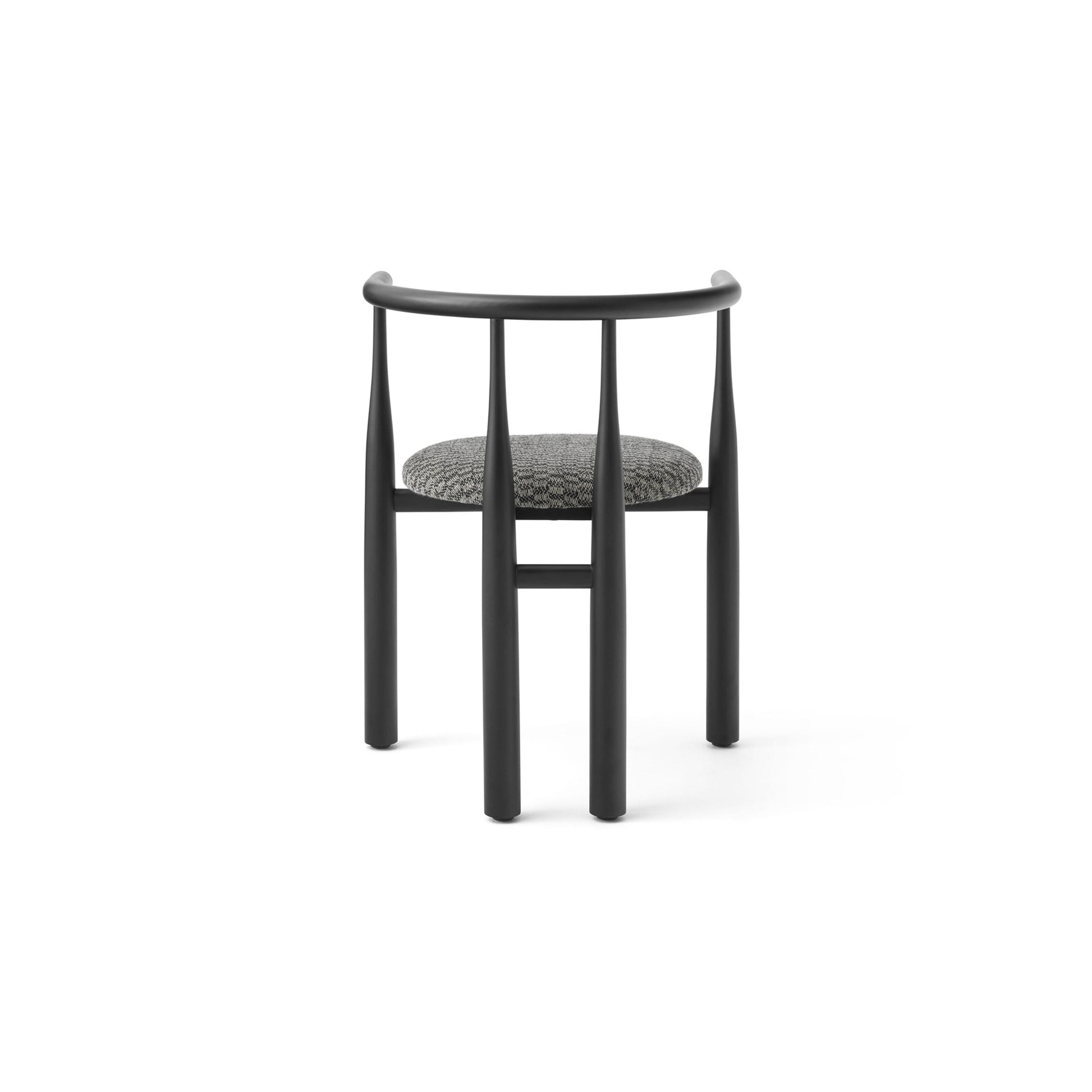 Extreme proportions lend themselves to an elegant and surprising form in this update to an old classic. The smooth, yet decisive, shift between slim and solid, which creates the chair's curvaceous legs, is played out like a lively dance with the material. Meanwhile the balance of the weight towards the ground gives the chair a strong and monumental feel. Centred in the sculptural structure is an upholstered seat, opening for different expressions through the combinations of wood and textile. With its bold geometry, the Bukowski chair shows off a striking silhouette, instantly recognisable, indefinably familiar, and completely its own.