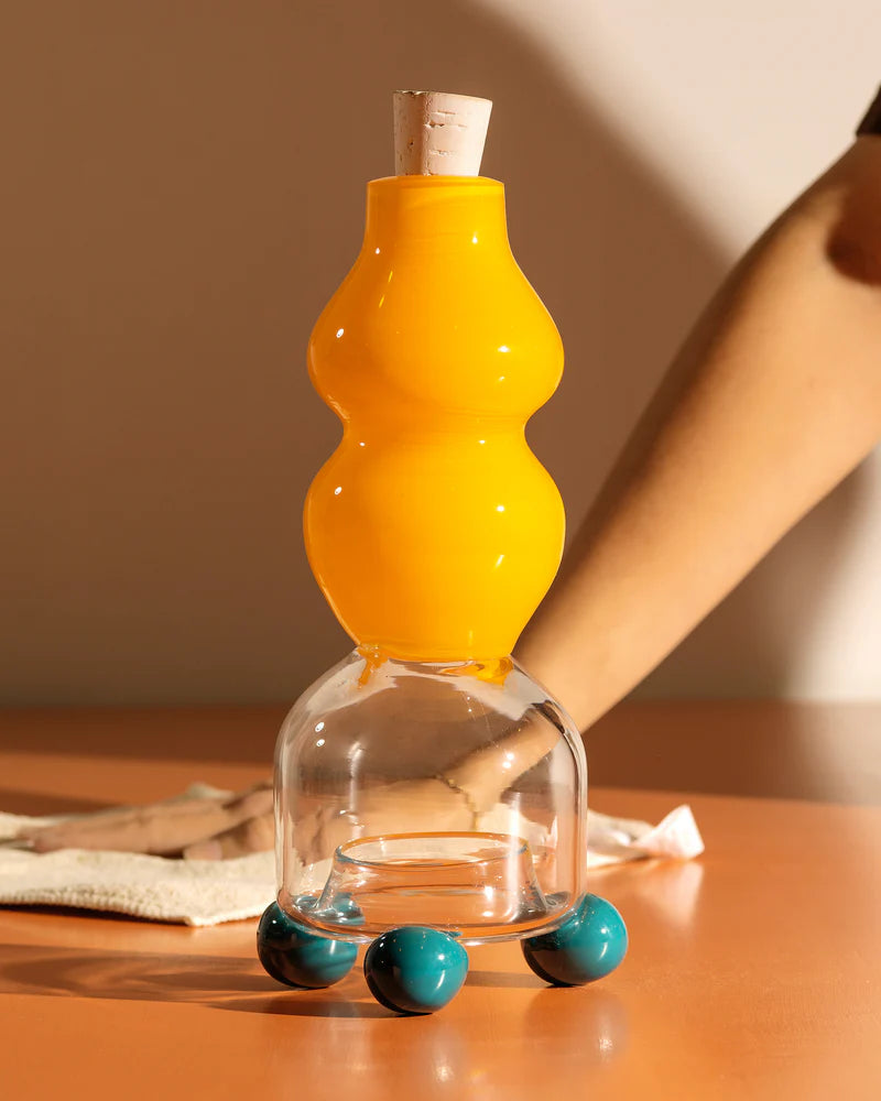 Place a sweet liquid like vinegar in the mote at the bottom of this two-part vessel and then seal it with the lid or cork. Watch as pesky flies are drawn to the sweet sticky liquid and overwhelm themselves with indulgence. Maybe train them? Put on a fly circus show? The options are endless.