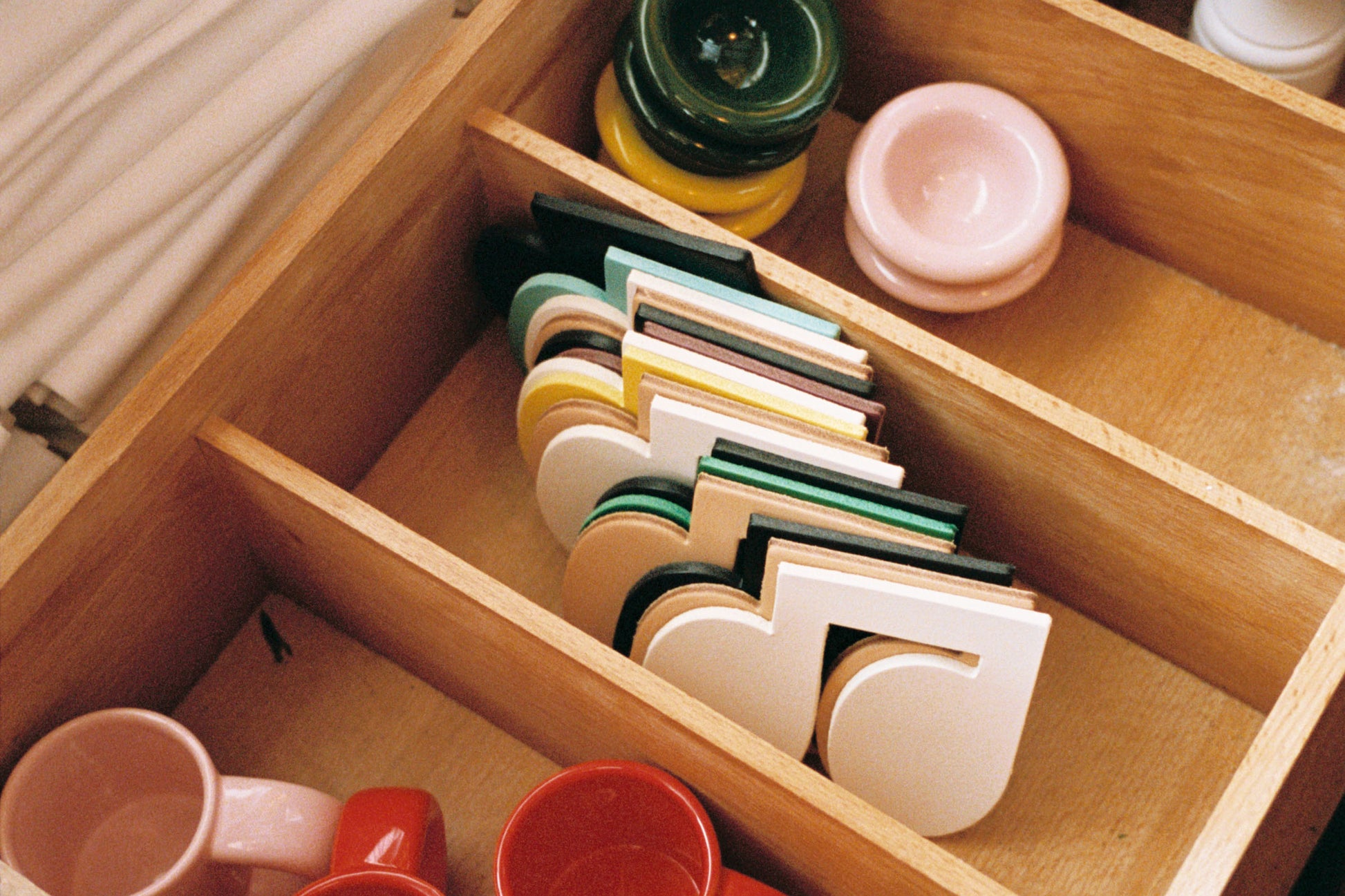 Scattered across a room, peeking out from beneath your favourite mug or nonchalantly drifting across a tabletop, the Disco Coasters punctuate a living space with pure graphic joy.