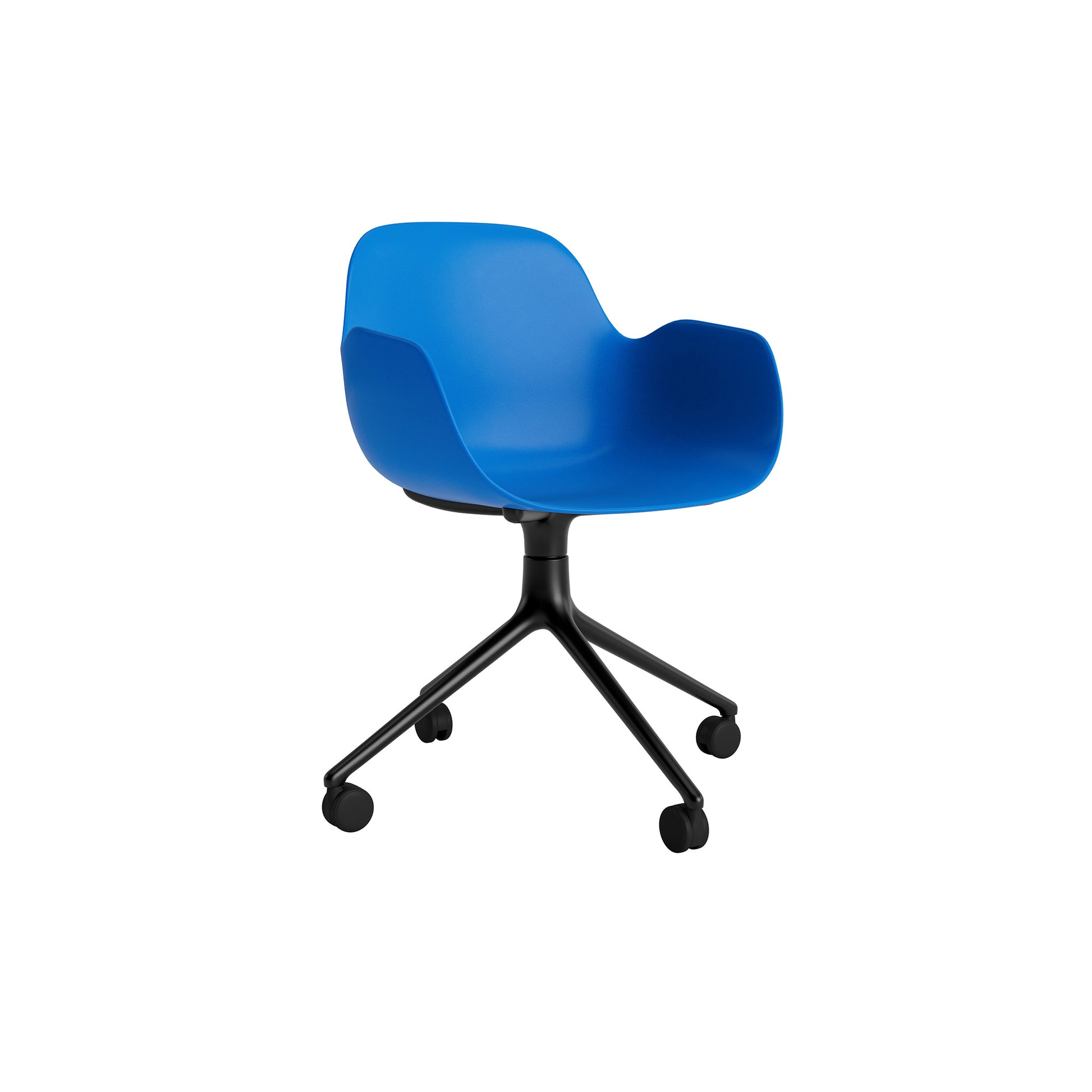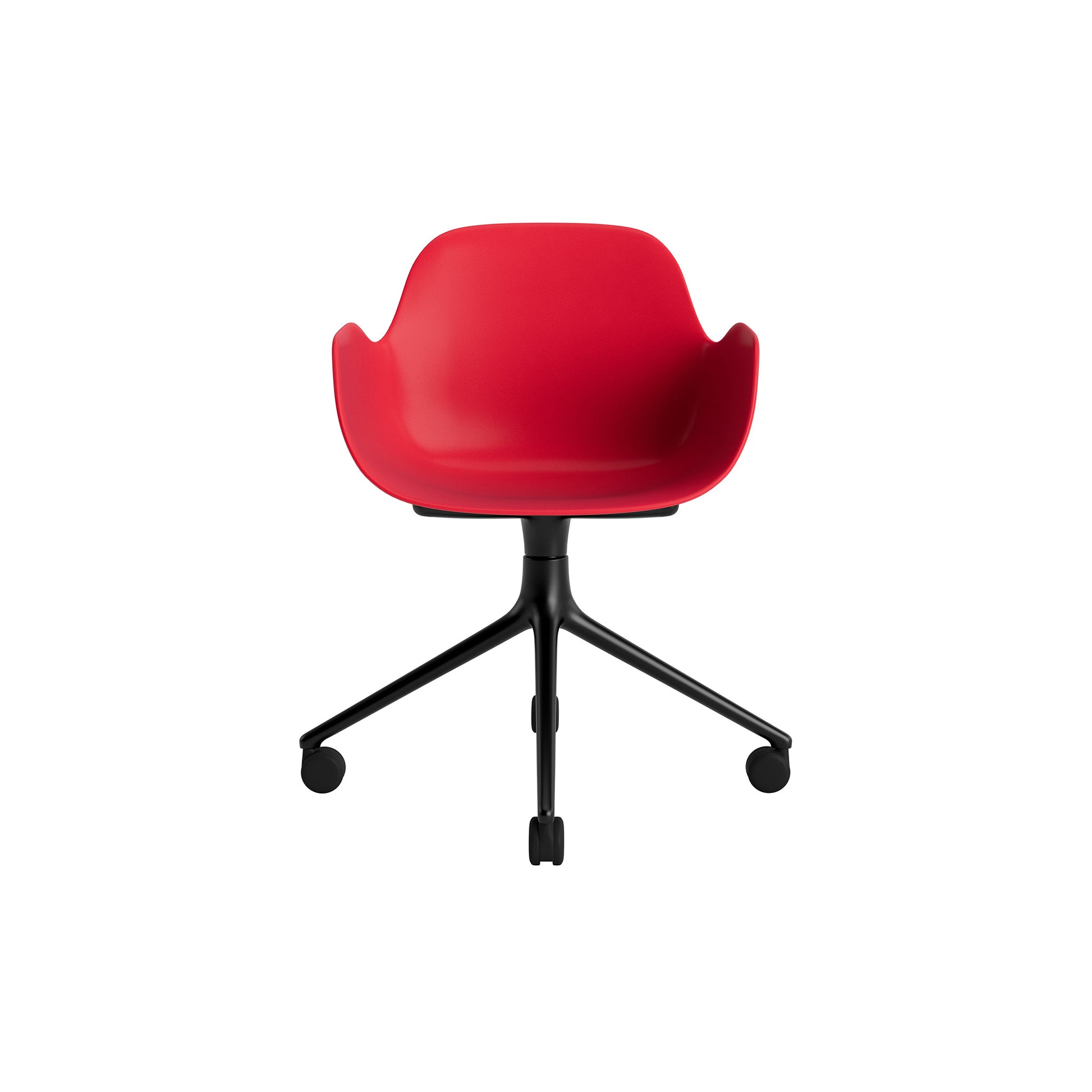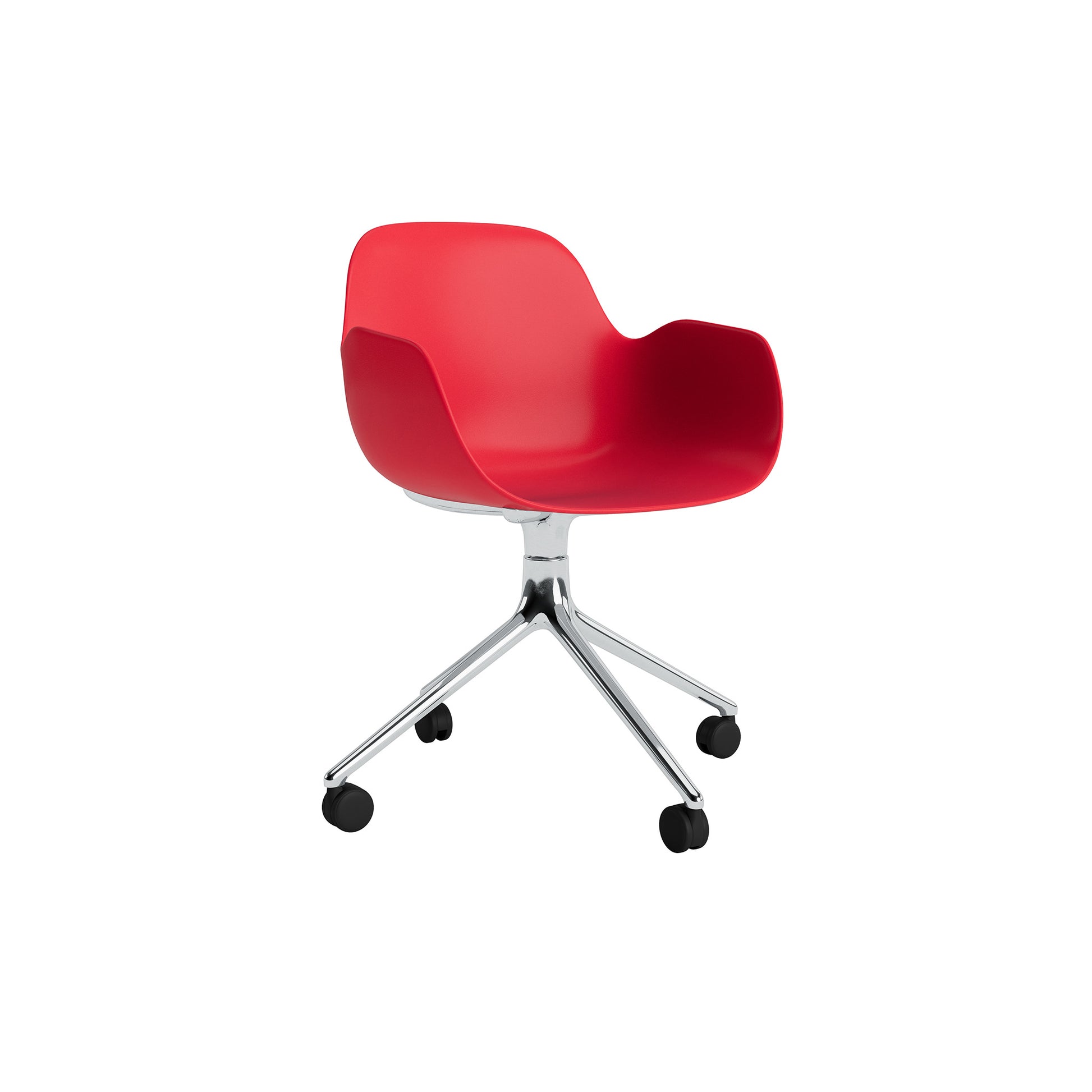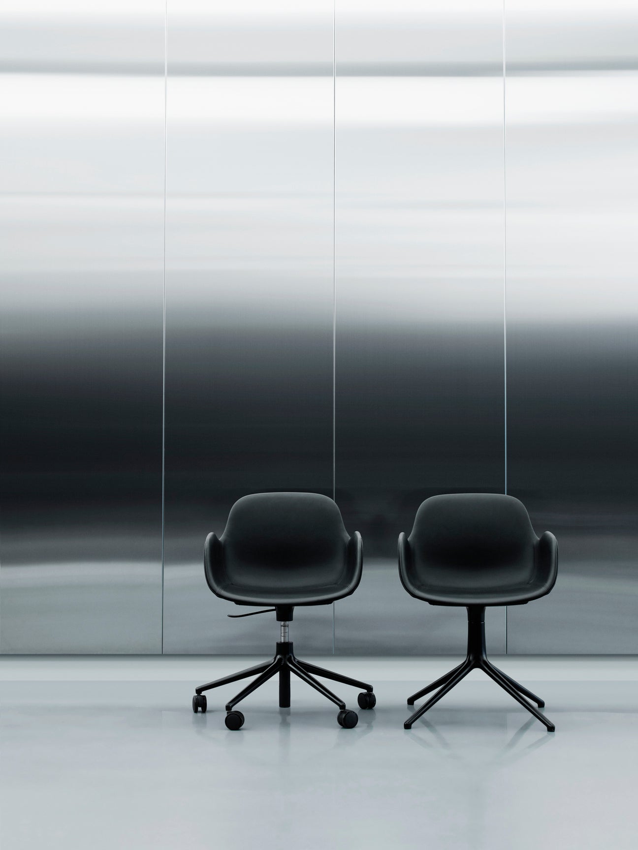 The swivel base grips the chair shell with four slim arms that meet in a rotating centerpiece, which then branch out into either five or four legs, depending on whether the chair comes with castors. The specially-developed assembly principle permits a wide range of combination options, in which the various Form models, chair, armchair and barstool, can be given different expressions, all according to the choice of base, color and upholstery. With a dazzling number of over 40,000 possible combinations, Form can be customized to fit exactly the style and mood that you want to create.
