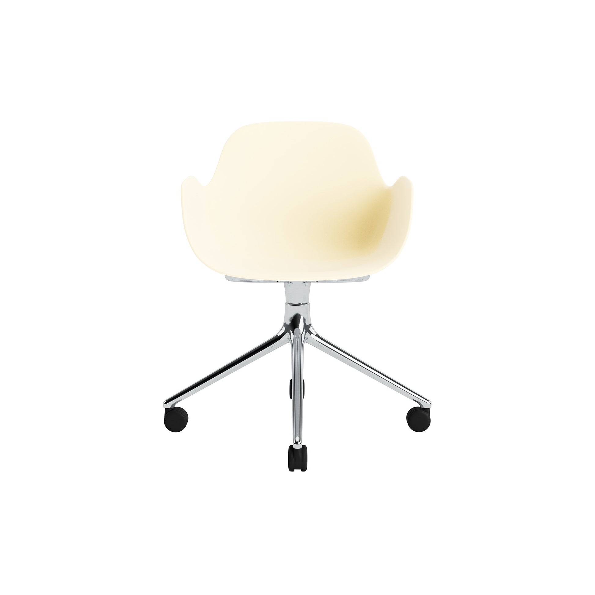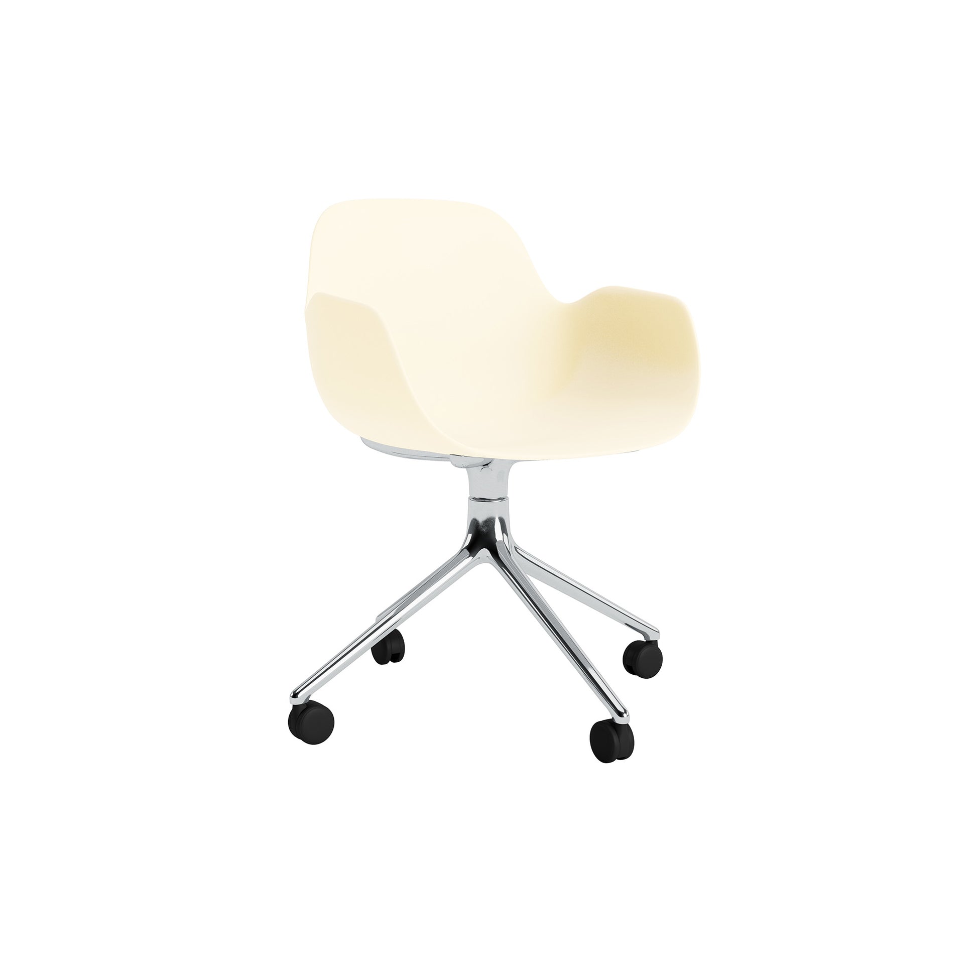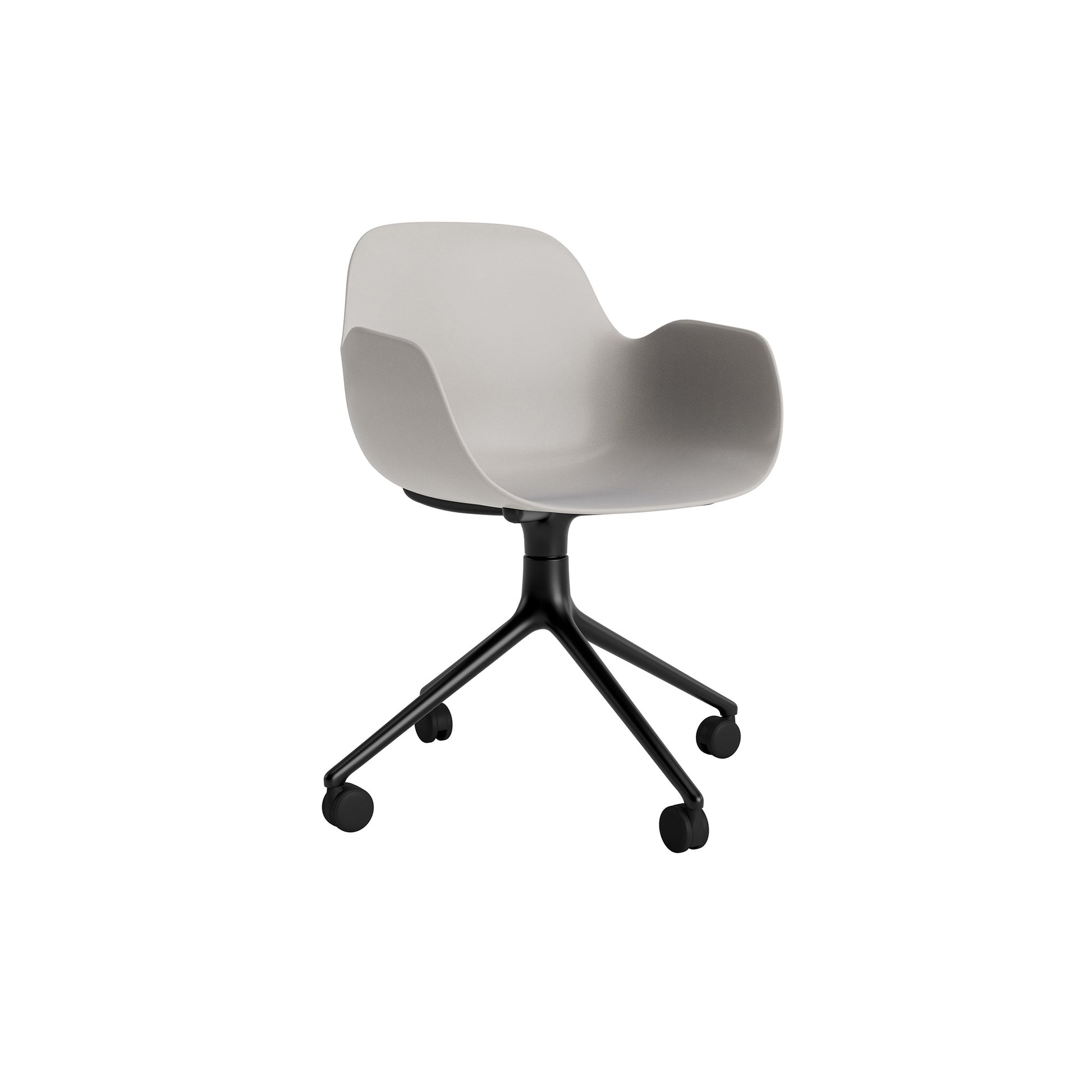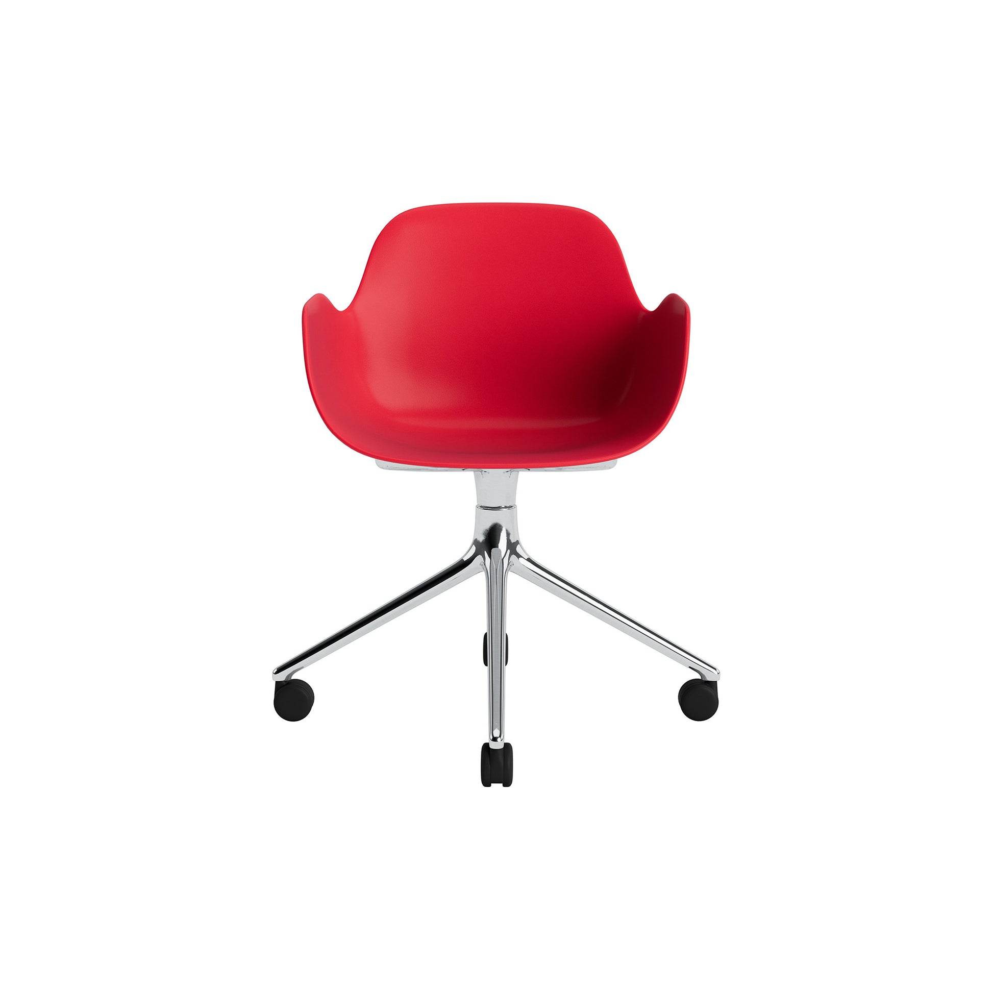 The swivel base grips the chair shell with four slim arms that meet in a rotating centerpiece, which then branch out into either five or four legs, depending on whether the chair comes with castors. The specially-developed assembly principle permits a wide range of combination options, in which the various Form models, chair, armchair and barstool, can be given different expressions, all according to the choice of base, color and upholstery. With a dazzling number of over 40,000 possible combinations, Form can be customized to fit exactly the style and mood that you want to create.