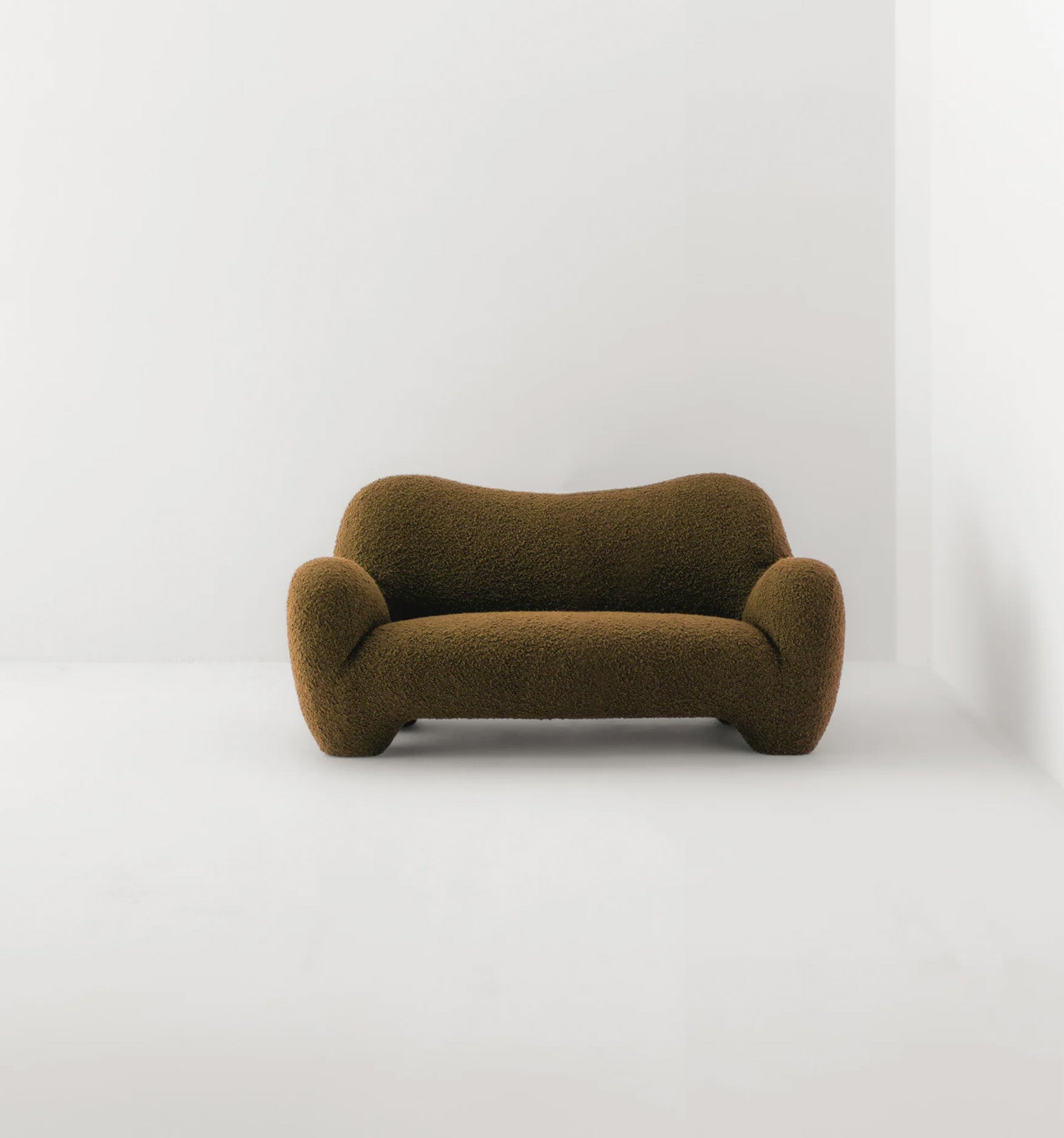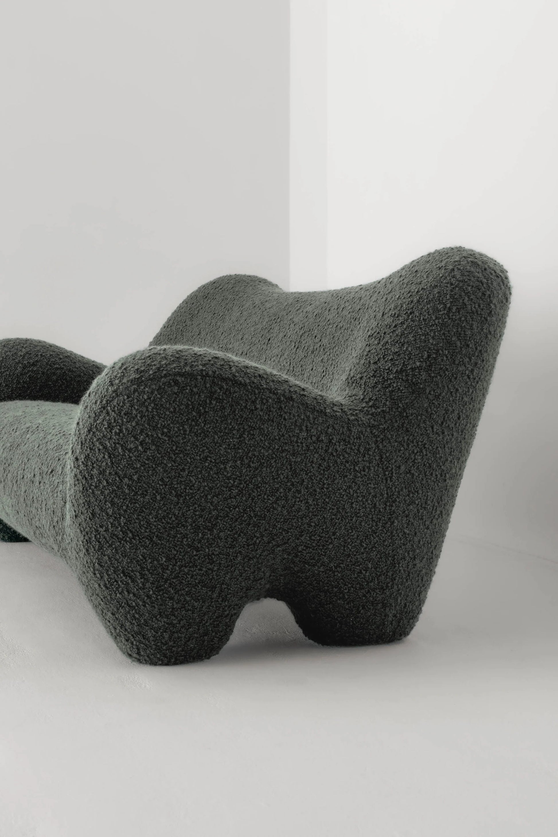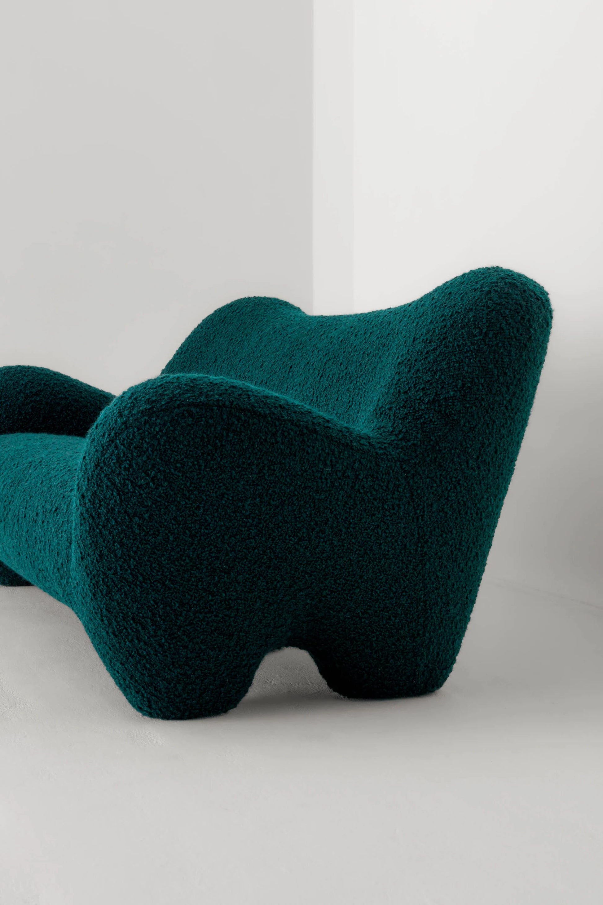 Gummy is offered in a range of fabrics including Pierre Frey’s chunky wool bouclé “Opio” in nine colours including Natural, a light cream, and Prussiana, a deep blue green. It is also available in Yeti, Ismay Boucle, Logan and Savanne Leather in a range of colours.