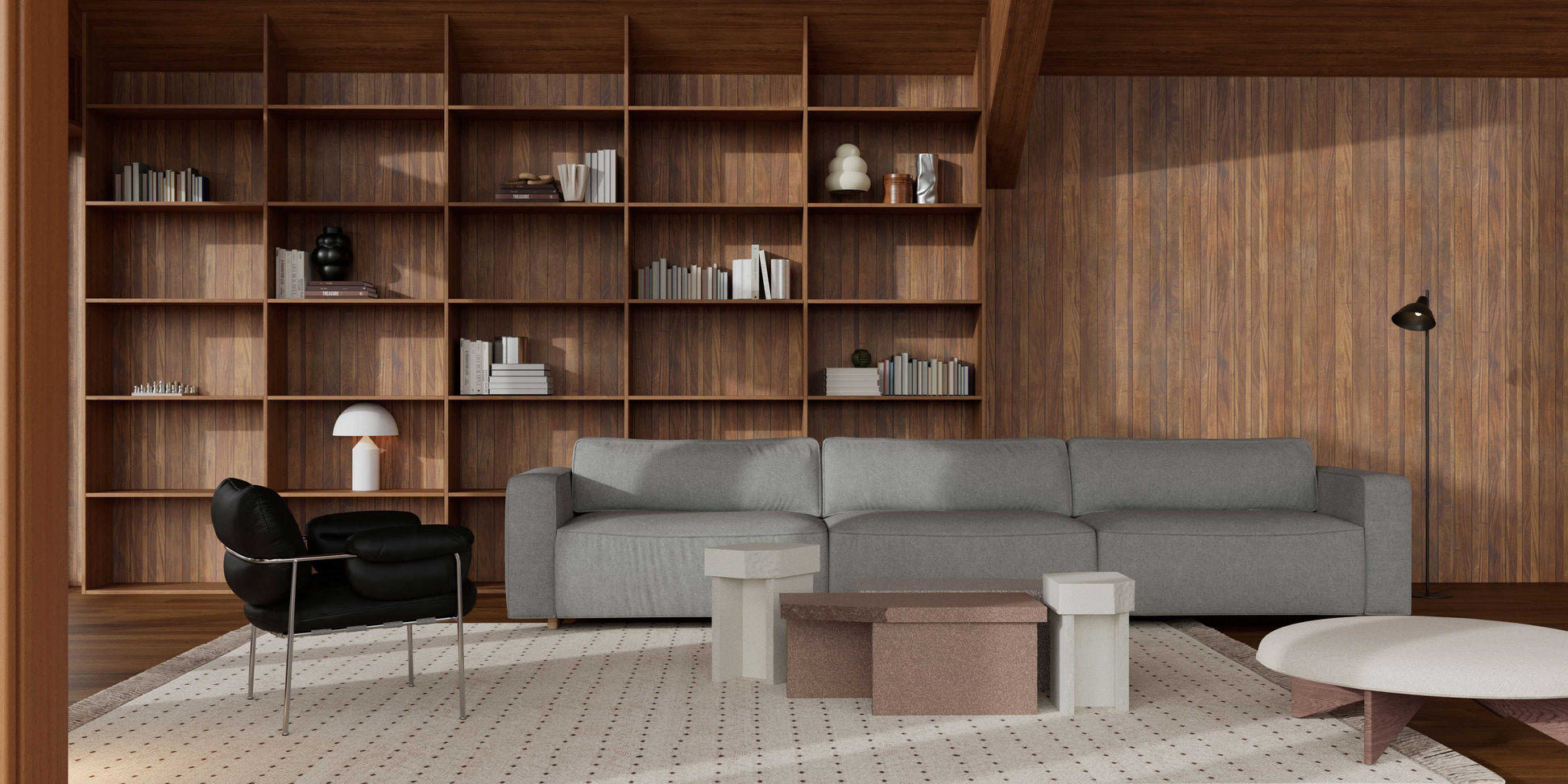 Kern is the first piece made from Outt, a marble-based material developed to repurpose quarry waste from Northern Italy. Unlike terrazzo, which relies mainly on marble chips, Outt incorporates chips, dust, and cement as a binder—resulting in an upcycled material with an unusually high marble content of around 85%. This gives Kern both substance and depth, balancing sustainability with expressive character.