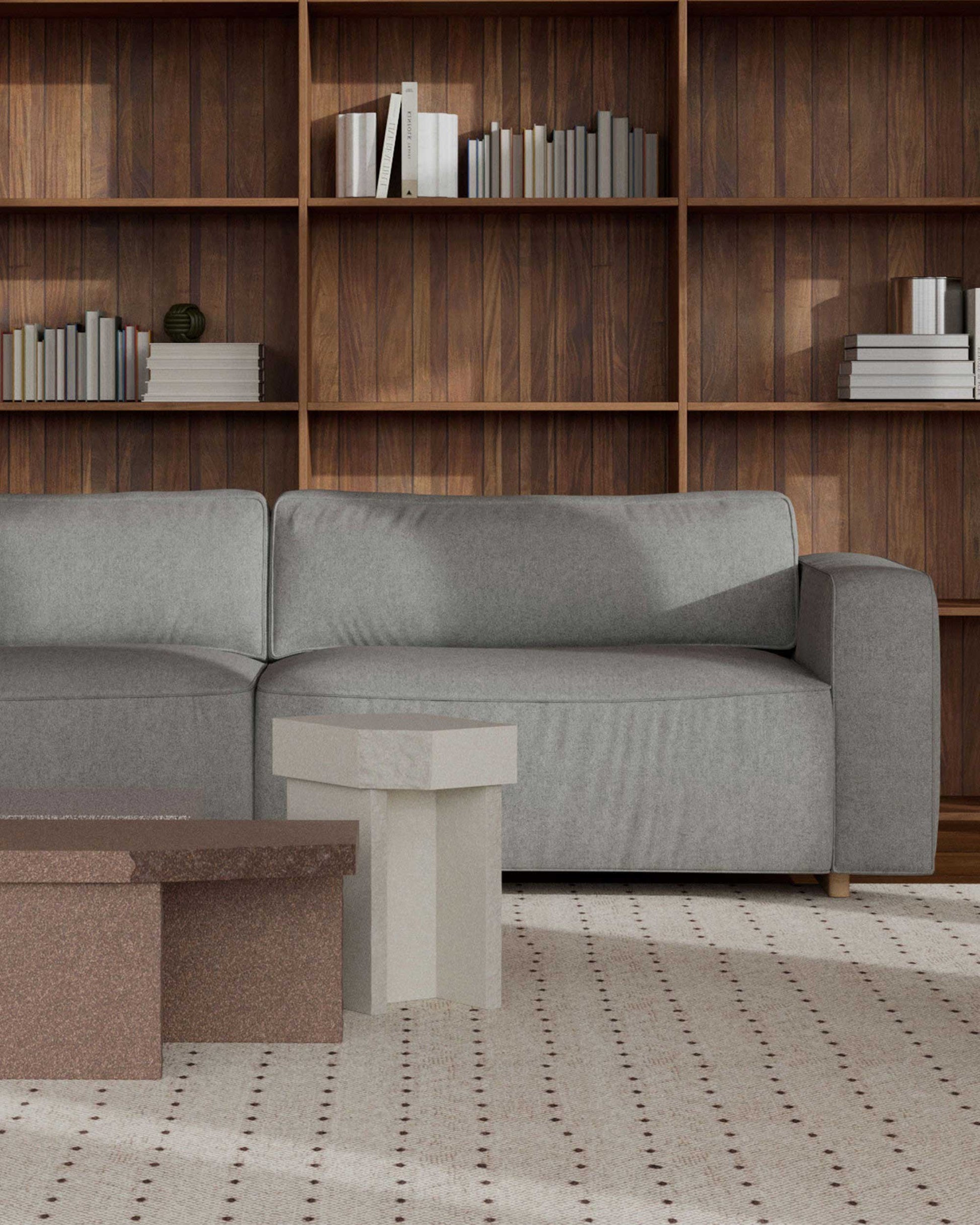Kern is the first piece made from Outt, a marble-based material developed to repurpose quarry waste from Northern Italy. Unlike terrazzo, which relies mainly on marble chips, Outt incorporates chips, dust, and cement as a binder—resulting in an upcycled material with an unusually high marble content of around 85%. This gives Kern both substance and depth, balancing sustainability with expressive character.