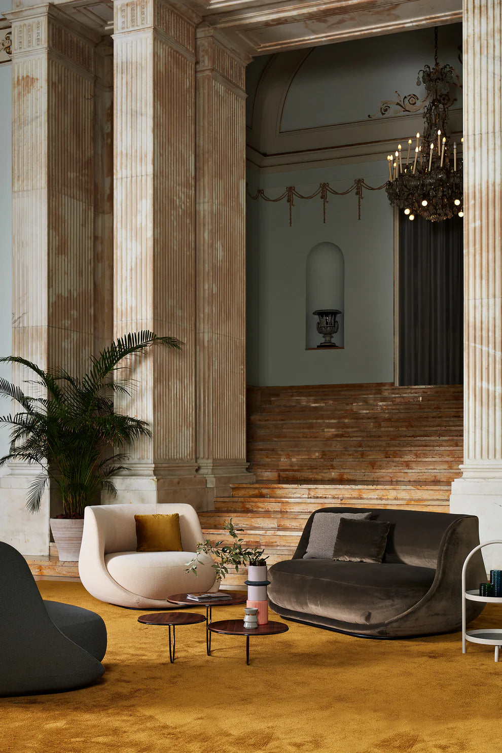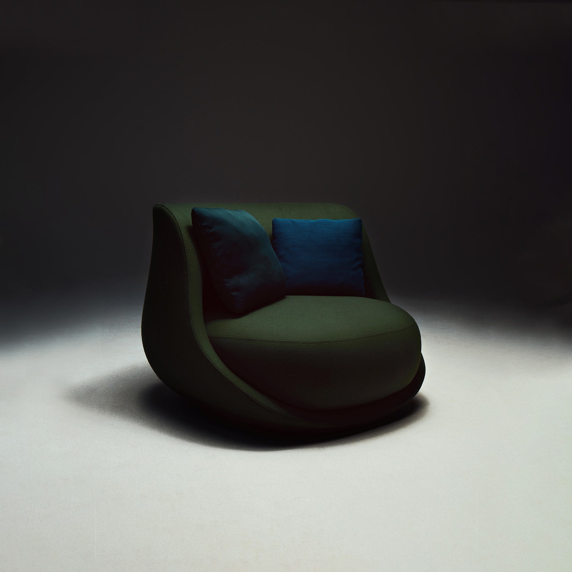 Liaison is the story of a bold shape, a shell designed to shelter a soft seating cocoon.