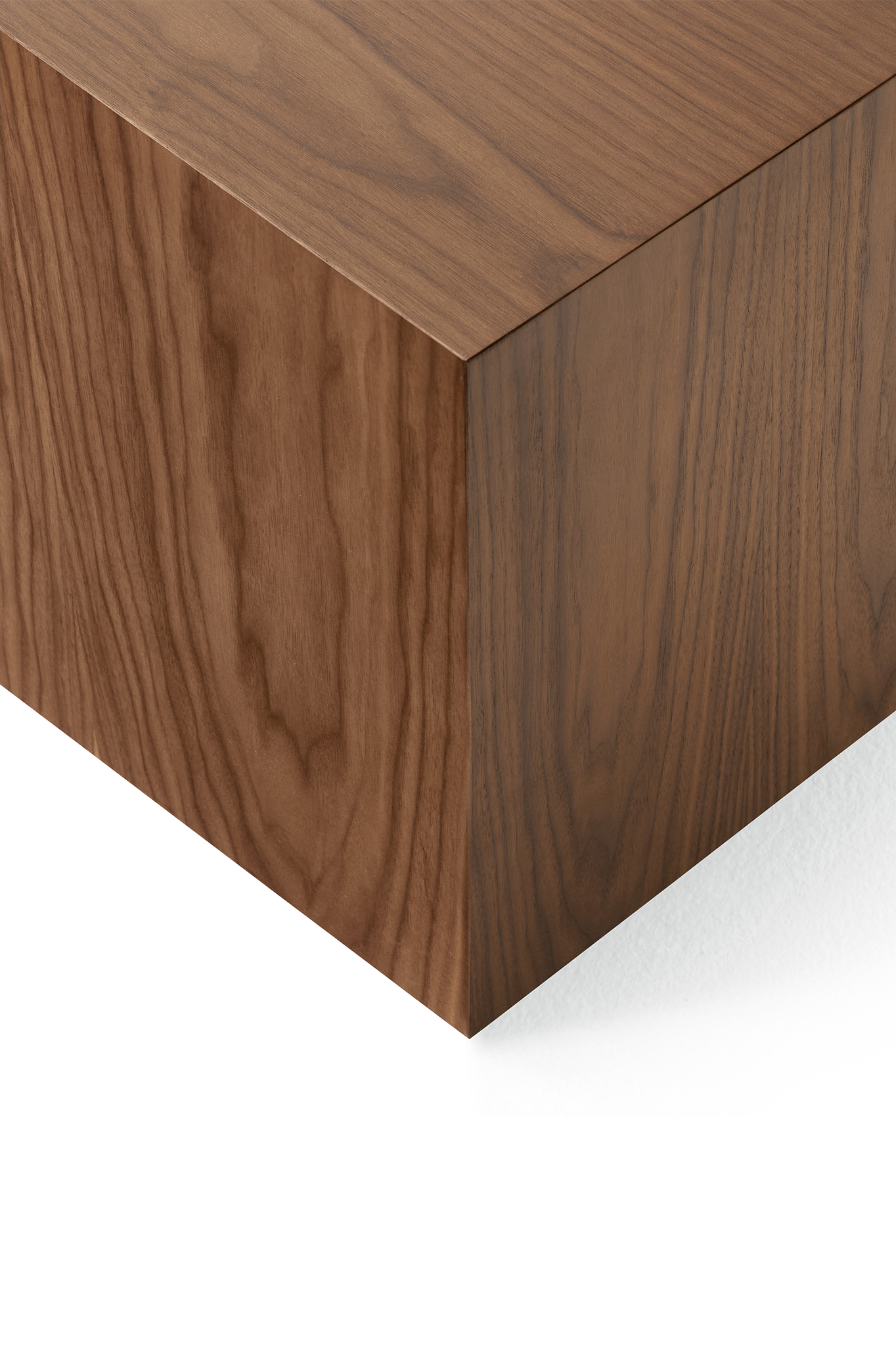 This versatile side table from the Mass series presents an elegant and stately platform for sculptural objects, still it is roomy enough to hold a table lamp while leaving space for putting down your book or coffee cup. Like the rest of this series a beautiful walnut veneer takes centre stage, providing a warm and steady base for the items you choose to place on it. Let the table serve as a practical side table next to your sofa, armchair or bed, or let it stand alone for the display of special items.