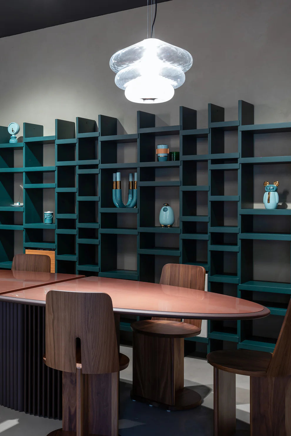 Inspired by optical illusion artworks, the design of Pyrite bookshelf amazes through an unexpected distribution between empty and full spaces and a structure where horizontal and vertical seems to be reversed.
