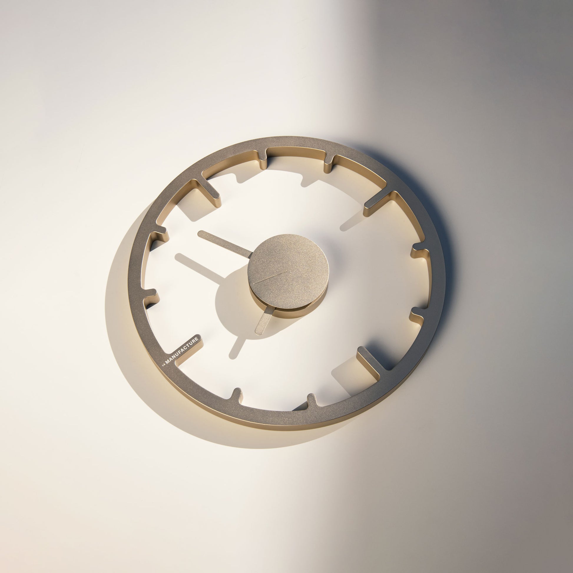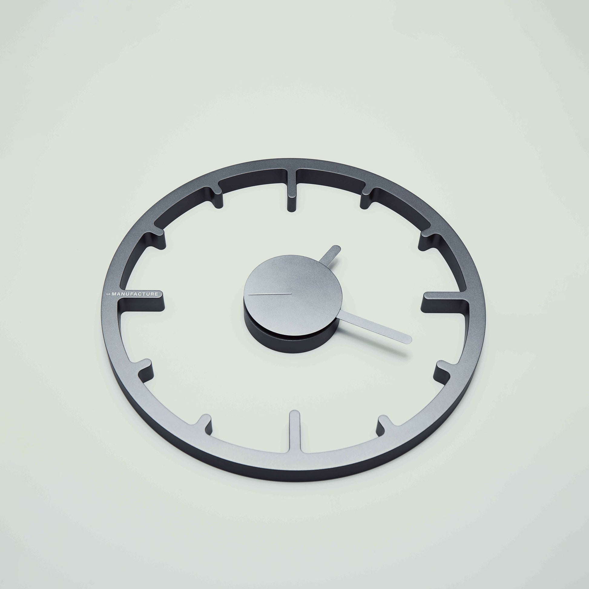 A tribute to modern aesthetics and the industrial process used for its production, the design's unnumbered metal dial requires no additional elements to accent a wall without ostentation. Leaving nothing more than an outline, beyond time.